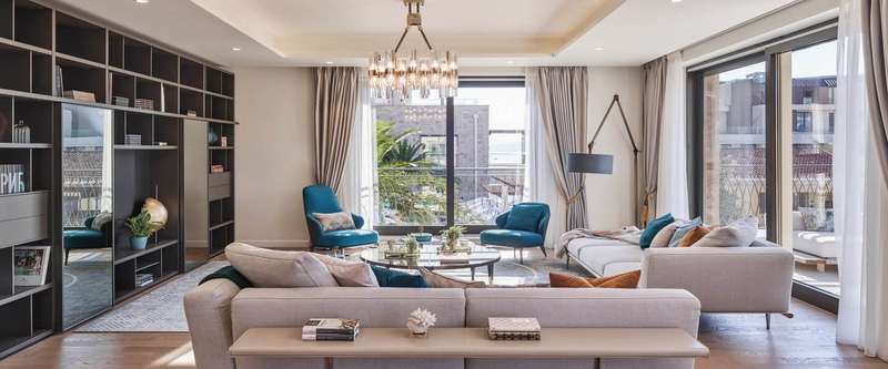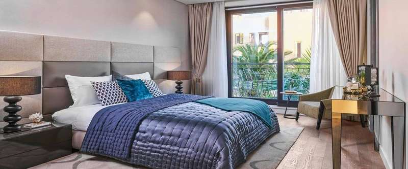 The apartments consist of a large open-plan living room with a dining area and a kitchen, two bedrooms with a bathroom, and a guest toilet. Two-bedroom apartments in Village Residences range from 162m2 up to 229m2 and are priced from €1,105,000 to €1,300,000.