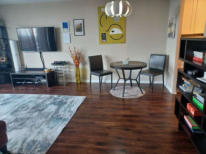 Sparkling city and sunset views from this large and spacious 1 bedroom. Renovated with beautiful white shaker kitchen, stainless steel appliances, wood laminate flooring throughout, and new bath. Updated window treatments and light fixtures. Meticulously maintained condo building with 24 hour doorman, tennis courts and ability to join pools and health club in adjacent buildings. Ultra convenient location - Mariano's at the corner, express buses at the door, Red Line and great restaurants on Bryn Mawr. Park and Foster/Hollywood beaches right out back door. Short distance to the wonderful restaurants and shops of Andersonville and the Bryn Mawr historic district