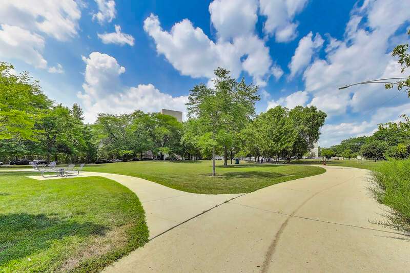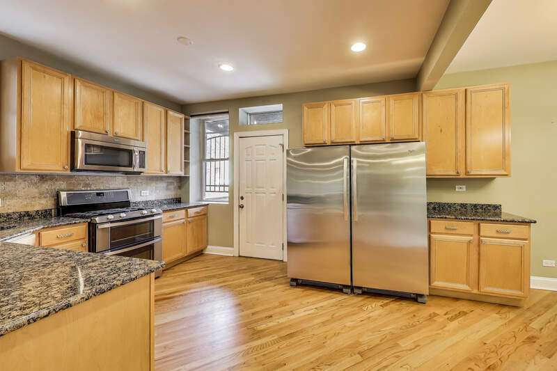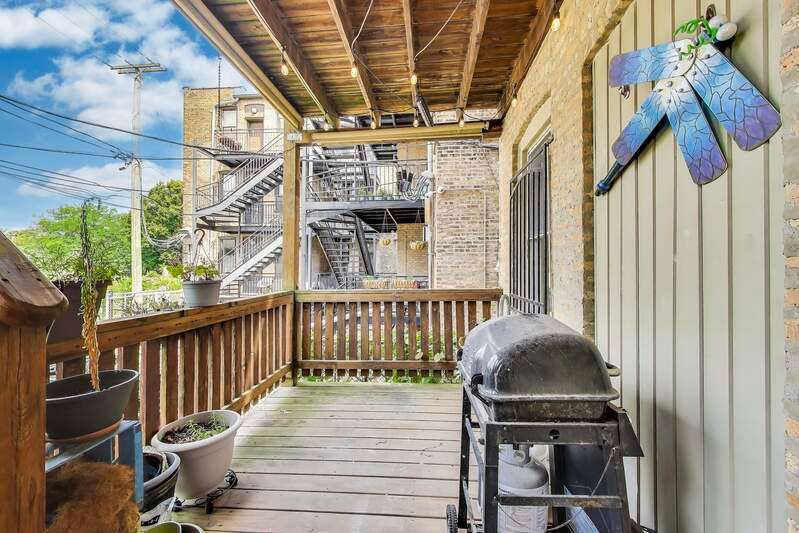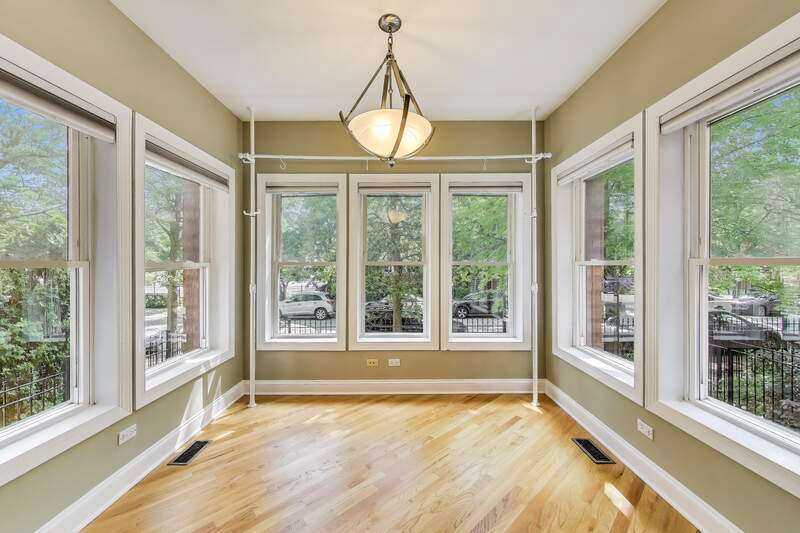 Stunning 4BD/3BA Duplex in prime Rogers Park location with approximately 2797 sq. ft. This spacious and sun-filled, this beautifully updated duplex condo lives like a single-family home. Features include angled hardwood floors, tall ceilings, exposed brick, and generous room sizes throughout. East-facing sunroom with 7 windows is perfect as a home office or reading nook. The living room offers a cozy gas fireplace with remote, flowing into a chef's kitchen with tall maple cabinetry, granite counters, limestone backsplash, stainless appliances, and a rare 30" fridge + separate 30" freezer. King-sized primary suite includes walk-in closet and newly renovated spa-like bath with whirlpool tub, frameless glass shower, custom tile, and euro-height vanity. Queen-sized 2nd bedroom with wall-to-wall closets. Additional full guest bath with whirlpool tub. Formal dining room fits a full-sized table and hutch. Breakfast bar ideal for entertaining. Lower level features massive flexible living space-ideal for family room, gym, 2nd office, or even a 2nd suite-plus a full bath with deep soaking tub. Enormous 23'x8' private deck overlooks Triangle Park-perfect for al fresco dining. Updates include Lennox furnace & A/C (2018). Includes 1 parking space. All just 1.5 blocks to the Howard Red Line, Purple Line, and bus hub. Enjoy city living with easy access to Evanston!