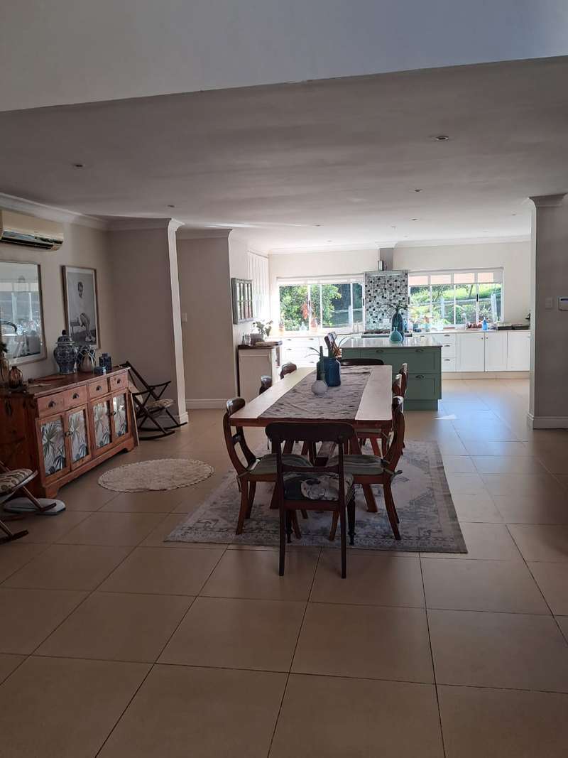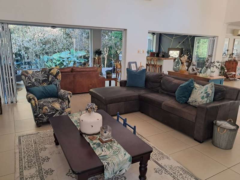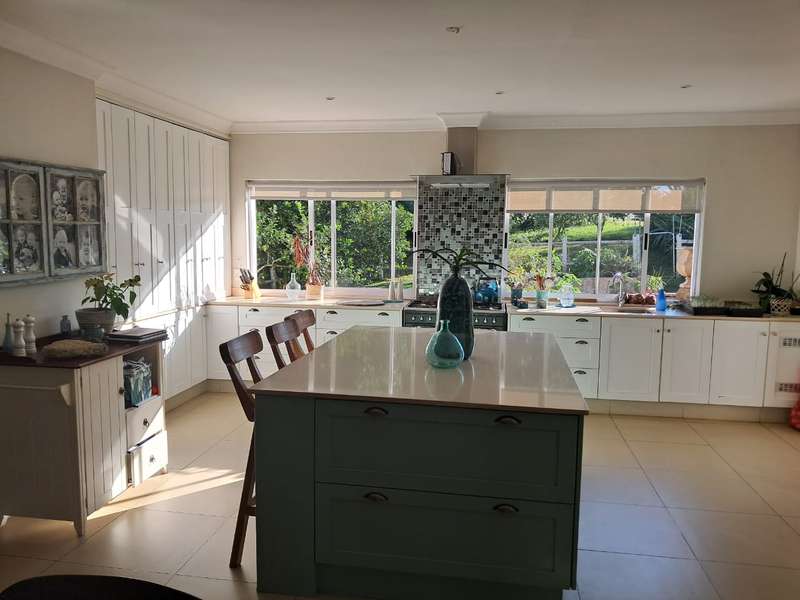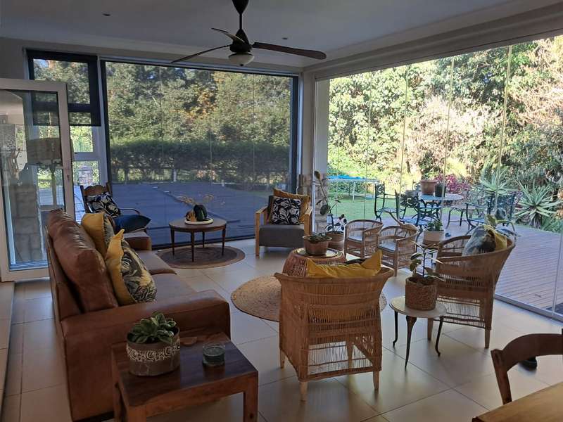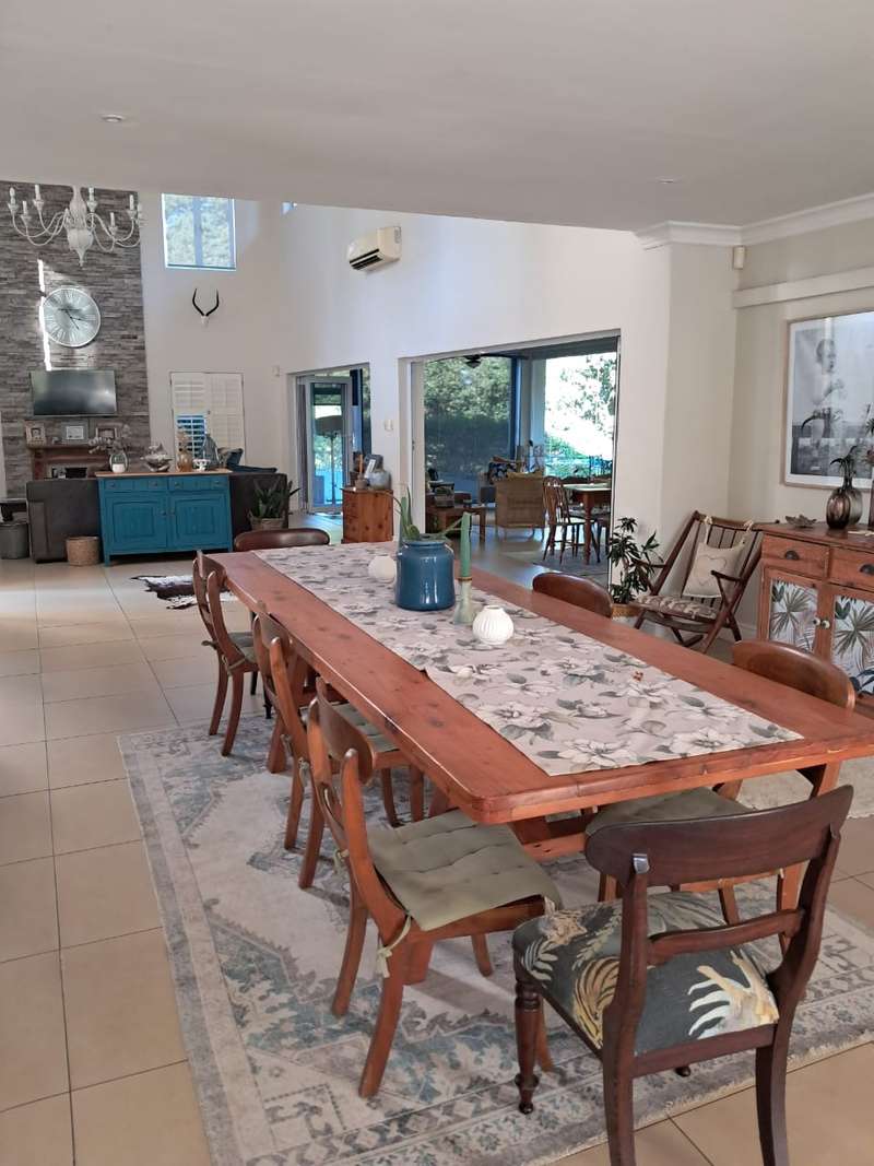 Discover contemporary elegance in this double-story masterpiece at Eshowe Hills Eco & Golf Estate. Featuring high ceilings and a striking stone-clad fireplace, this home offers unparalleled comfort and style. Enjoy breathtaking views from the patio overlooking scenic forestry, while the wooden deck and sparkling swimming pool create an oasis of relaxation. Inside, the home boasts 4 spacious bedrooms, 4 bathrooms, complemented by an upstairs lounge for privacy and relaxation. Downstairs, two lounges and a dining room provide ample space for entertaining, while the island fully fitted kitchen and adjacent laundry room cater to every practical need. Additional amenities include a double garage, single carport, and comfortable domestic accommodation. Experience luxury living in harmony with nature at its finest.
