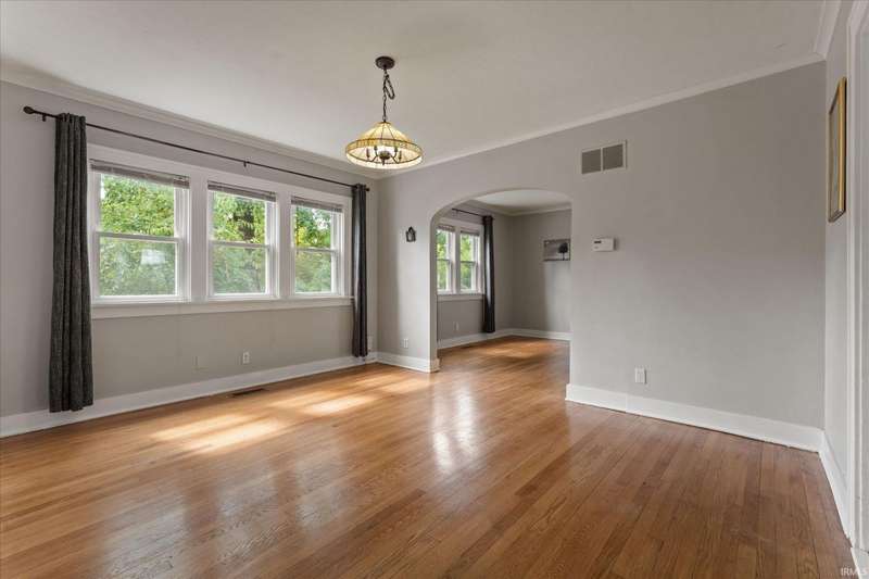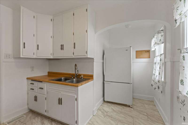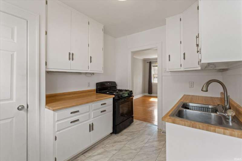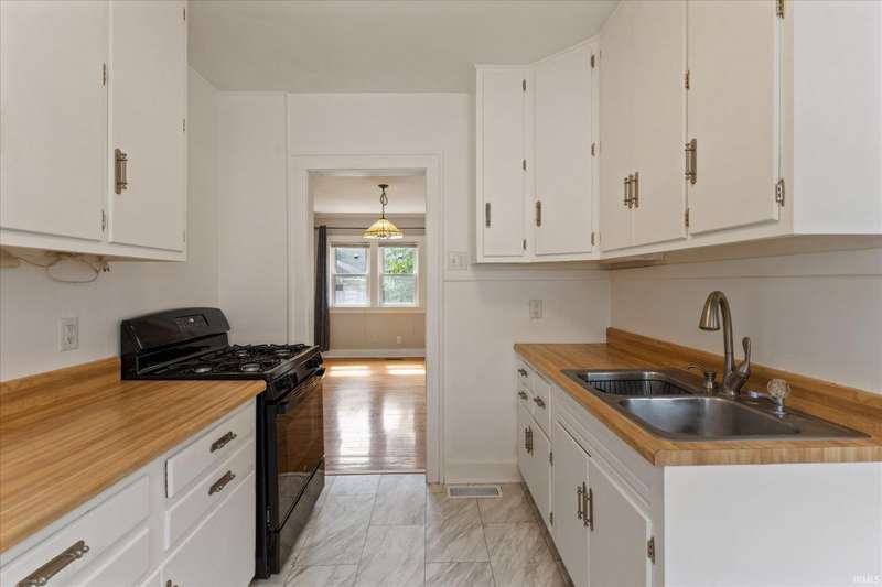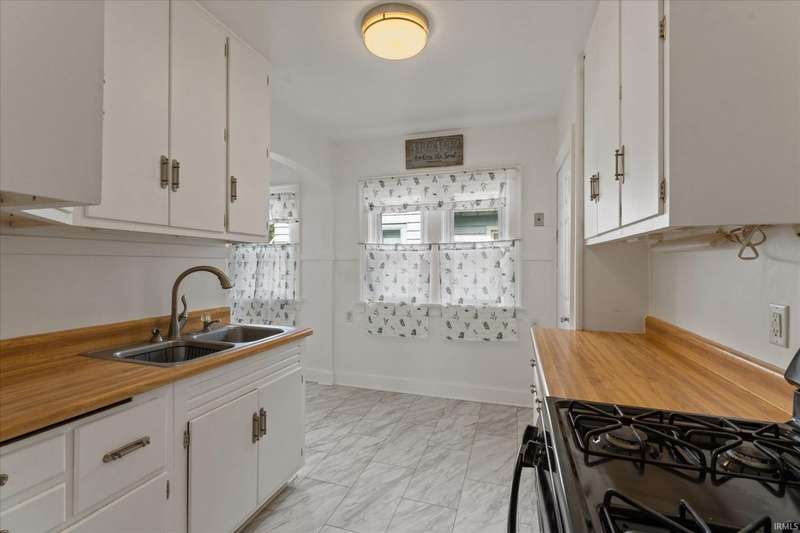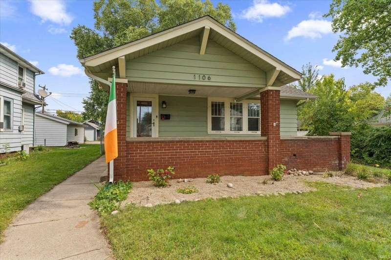 Get ready to make this adorable house your new home! Nestled conveniently next to IUSB, very close to the farmers market, Potawatomi zoo, and Notre Dame. Enjoy your morning coffee on the large, open front porch. Step inside to find an abundance of natural light in the living room, boasting a beautiful brick fireplace and gorgeous hardwood flooring that flows seamlessly into the spacious dining room. The kitchen features charming all-white cabinets and woodblock countertops, perfect for whipping up delicious meals. The main level offers two cozy bedrooms and a full bathroom for your convenience. Upstairs, a sprawling bedroom beckons for relaxation. Outside, the fenced backyard invites you to unwind, and a large shed provides ample storage. The full basement with a workshop space offers endless possibilities. Home has newer water softener, stove, furnace, roof, & water heater. For convenience, there's also parking in the rear of the home. This home is the perfect harmony of comfort and style. Welcome home!