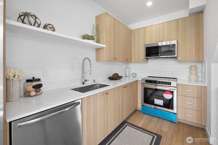 3.99% rate available with builder credit, this home only! Location, lifestyle and limited availability Welcome to Cloud 9, a boutique community of 9 thoughtfully designed homes in North Green Lake. This 2-bed/1.75-bath home marries smart design with refined finishes, offering rooftop decks, private outdoor retreats, and top-floor primary suites. Every home includes high-efficiency heat & A/C, contemporary finishes, EV-ready off-street parking, and compact garages ideal for bikes, gear, or extra storage. All just ½ mile from Green Lake with easy access to I-5, Hwy 99, North Seattle College, and LINK light rail.