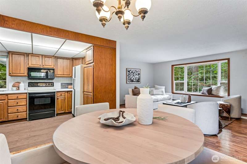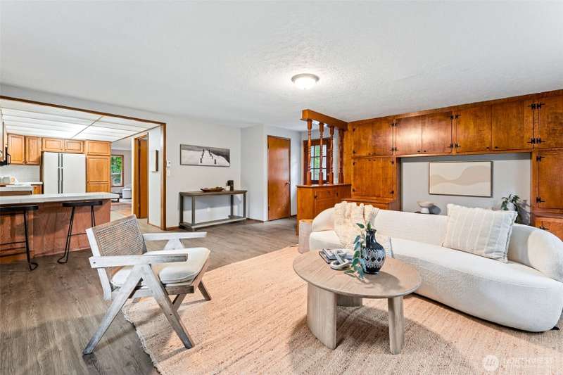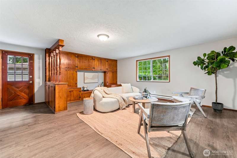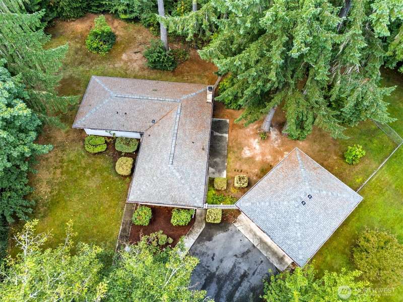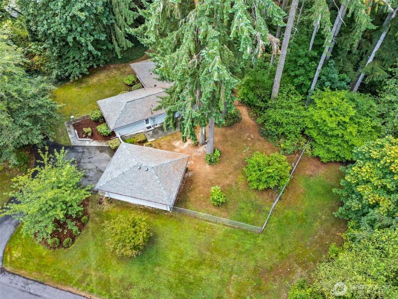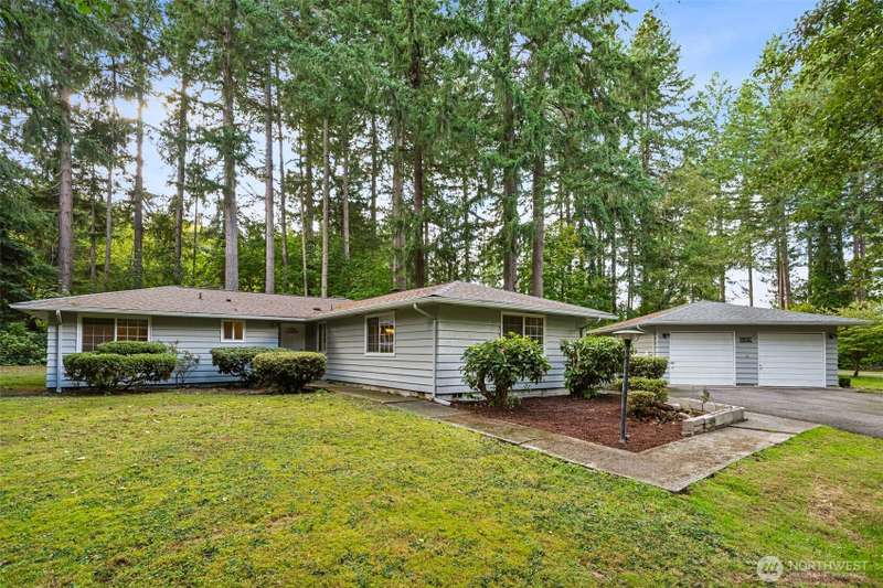 Charming 3BR, 1-story cottage on just over an acre in a desirable and growing Lacey community! Hardwood floors, 2 spacious living areas & a cozy wood-burning fireplace bring warmth & character. Enjoy a park-like setting with fenced yard and mature trees, patio & privacy on a private dead-end street. A huge detached 2-car garage offers endless potential—use for parking, storage, or convert to extra living space. Zoned moderate density, this property is perfect for owner-occupancy, income potential, or future development. Property has been well maintained with newer roof, exterior paint and attractive landscaping. A rare find with endless opportunities! AMAZING!