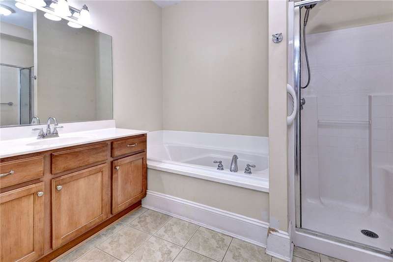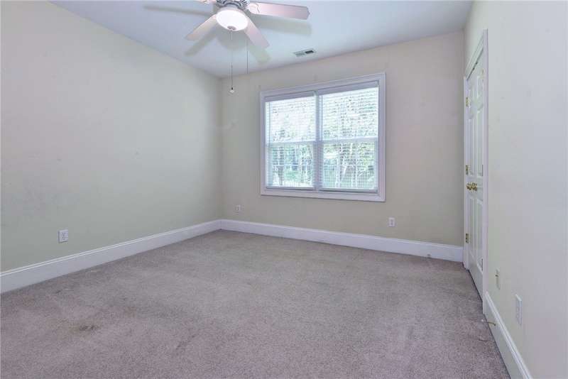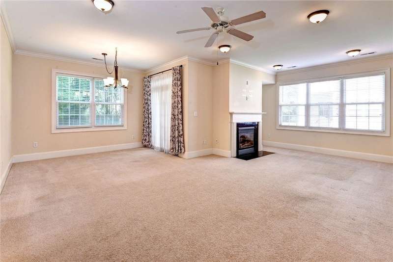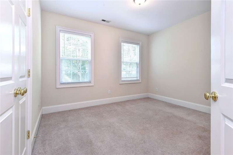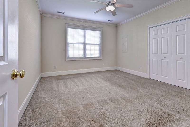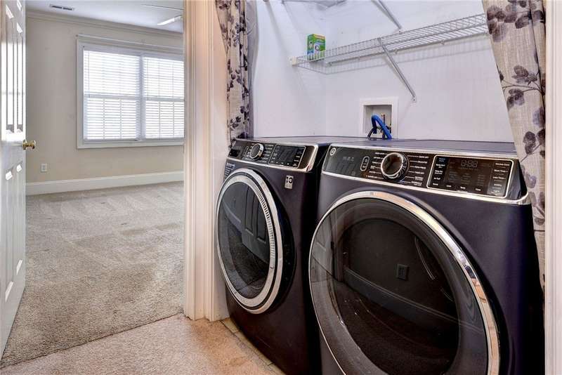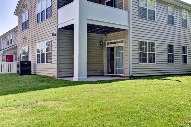 This beautifully maintained, first-floor, 3 bedroom, 2 bath condo offers comfort and convenience all on one level. The welcoming, covered entrance leads to a versatile split floor plan with the primary suite privately tucked away from the other bedrooms. The updated kitchen shines with granite countertops, GE Cafe induction range (2023), Samsung microwave (2020), Whirlpool dishwasher (2020), roll-out lower cabinets, tile backsplash, under-cabinet lighting, and a touch faucet (2024). The open dining and great room make entertaining easy, while thoughtful updates like newer HVAC (2023), pendant lighting, Delta shower heads (2024), Kohler commodes (2024), added bath storage and front-loading GE Profile washer and dryer in Sapphire Blue (2023), enhance everyday living. Peacefully located between interior stairwells for added privacy and energy efficiency, this home also includes two assigned parking spaces plus visitor parking. Warm, functional, and move-in ready, it's the perfect place to call home.