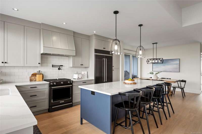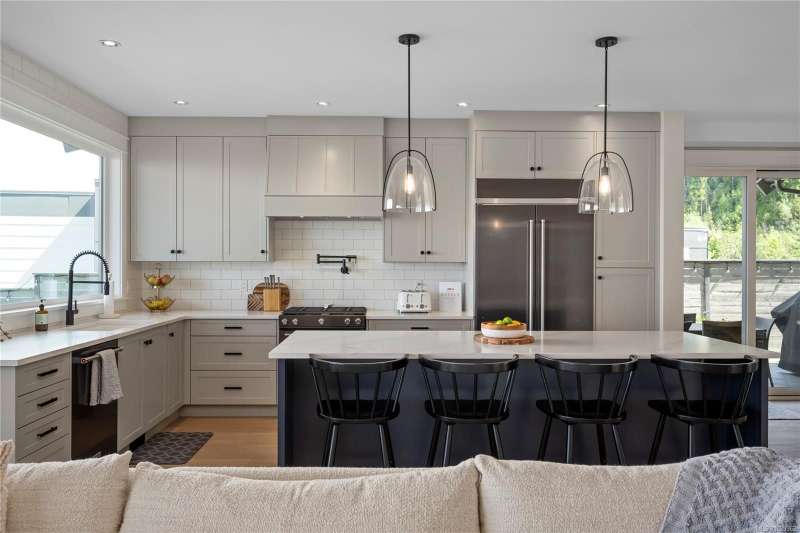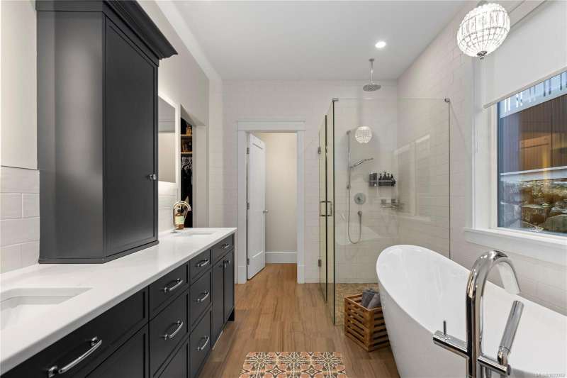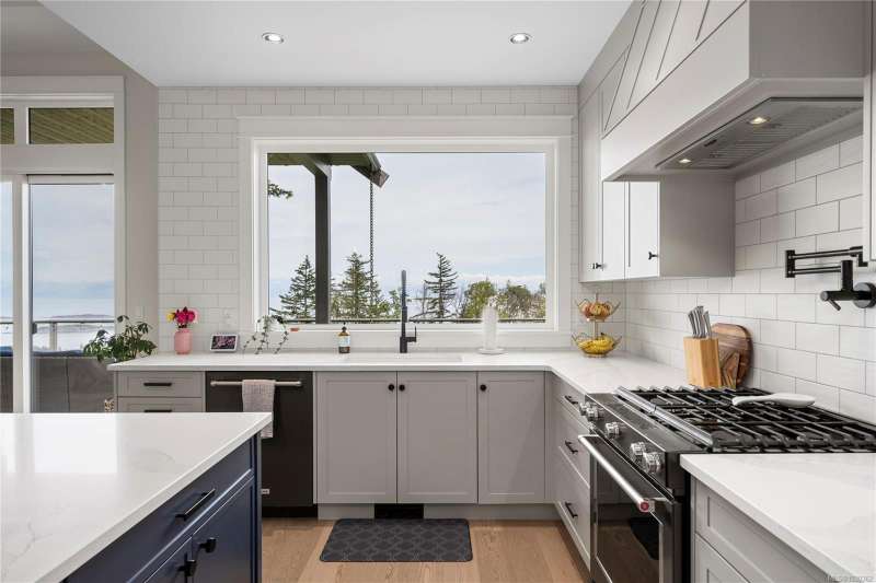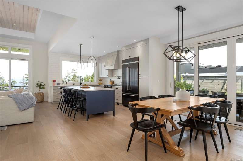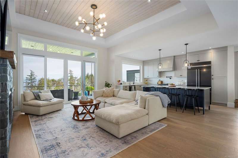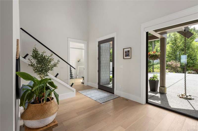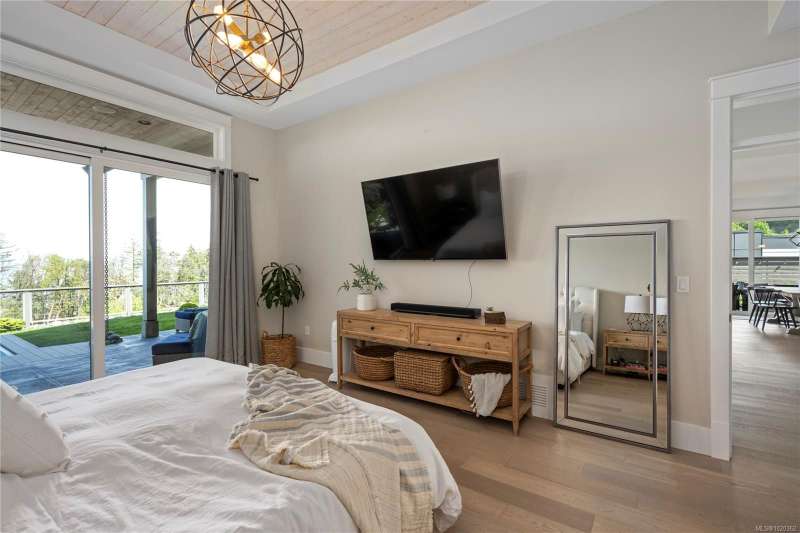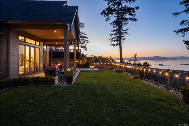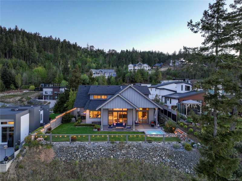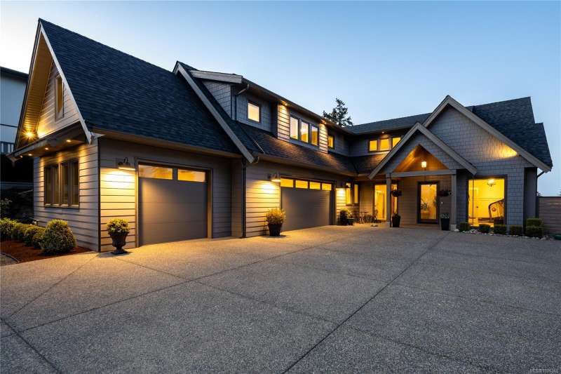 Lantzville Foothills luxury home featuring serene ocean, mountain & city views. This modern craftsman 5 BD, 4 BA home has oversized windows on the main that add natural light & showcase the ocean, mountain & city views. Bright, open dining & kitchen w/ large quartz island & eating bar, & a convenient butler's pantry. Enjoy the scenery from your living room while cozying up to the floor-to-ceiling rock fireplace. Main level primary BD w/ 5-PC ensuite, large closet & walk-out patio access. Outside enjoy picturesque views of the Winchelsea Islands, coast mountains, North Nanaimo, Lower Mainland & planes landing at YVR. Lounge by the NG fireplace or in the heated dunk pool. Upstairs has 3 spacious BD, 5-PC BA, flex area & access to the 1 BD, 1 BA suite w/ its own garage & heat pump. 0.42 acre level lot with front & rear yards, methodical landscaping w/ blooms to enjoy from spring to fall. Fully irrigated lot w/ Rachio, L2 EV Ready, NG furnace & HWOD, 3 car garage w/ storage room & crawl.