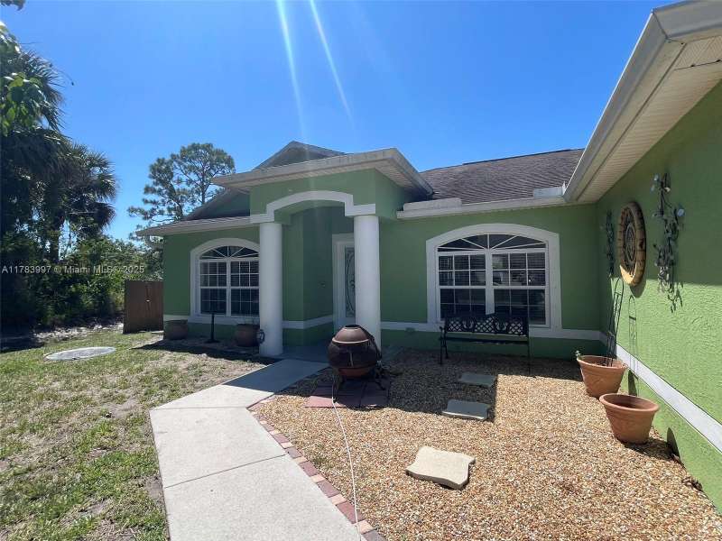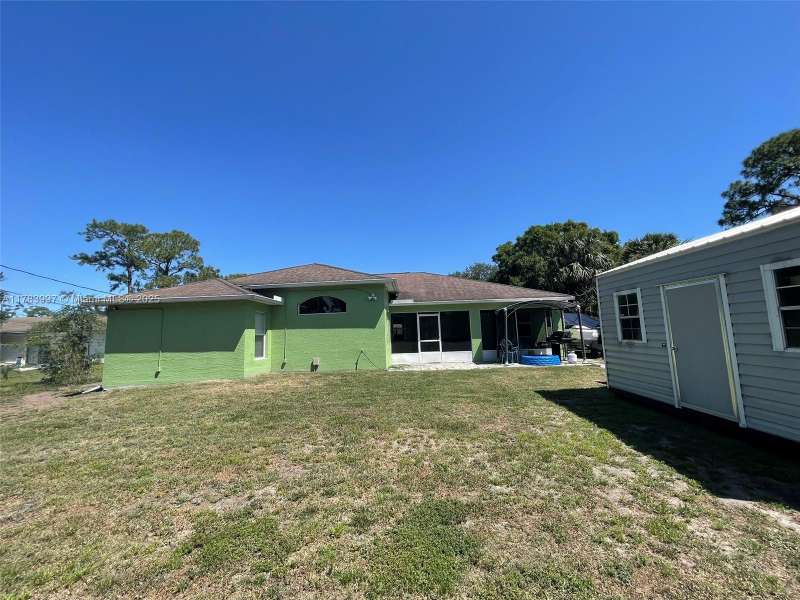WOULD YOU LIKE PEACE AND QUIET AND TONS OF SPACE TO CALL YOUR OWN? THEN THIS HOME IS FOR YOU !!! THIS LOVELY FOUR BEDROOM, TWO FULL BATH HOME SITS ON ¼ ACRE WITH NO NEIGHBOR ON ONE SIDE!! OPEN AND SPACIOUS LIVING AREA, LOTS OF NATURAL LIGHT IN THE KITCHEN WITH PLENTY OF COUNTER SPACE AND CABINETS, PANTRY, OPENS TO FAMILY ROOM – 3 WAY SPLIT FOR BEDROOMS WITH PRIMARY SUITE IN ITS OWN WING – DUAL SINKS, SOAKING TUB AND WALK IN SHOWER, HUGE WALK IN CLOSET. TWO MORE BEDROOMS SHARE A BATHROOM IN ANOTHER WING, AND FOURTH BEDROOM BY ITSELF. SCREENED PATIO LEADS TO EXPANSIVE FULLY FENCED BACKYARD WITH LARGE SHED. DOUBLE GATE ENTRY ON BOTH SIDES ALLOWS FOR STORAGE OF BOATS, KAYAKS. MANGO TREE READY TO BLOOM WITH FRUIT! NO HOA SO YOU CAN DO WHAT YOU WISH AND ENJOY YOUR SLICE OF PARADISE!