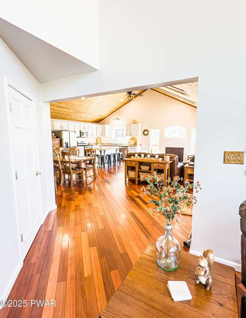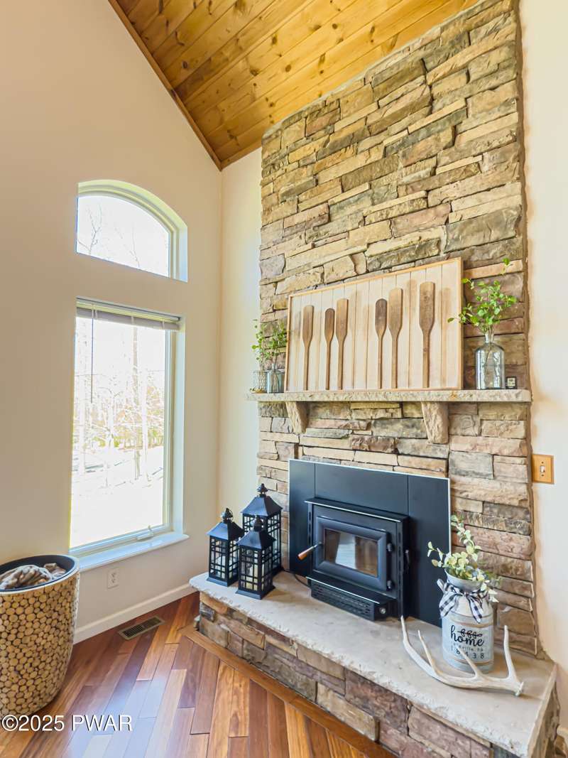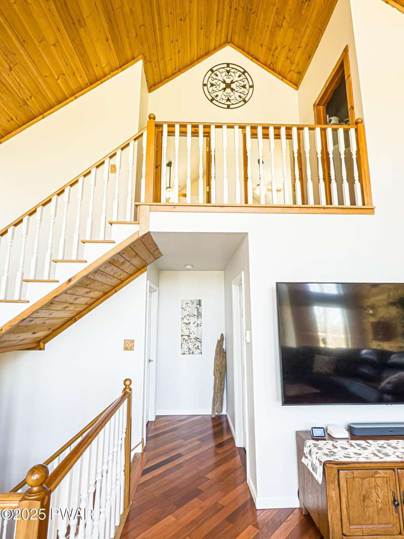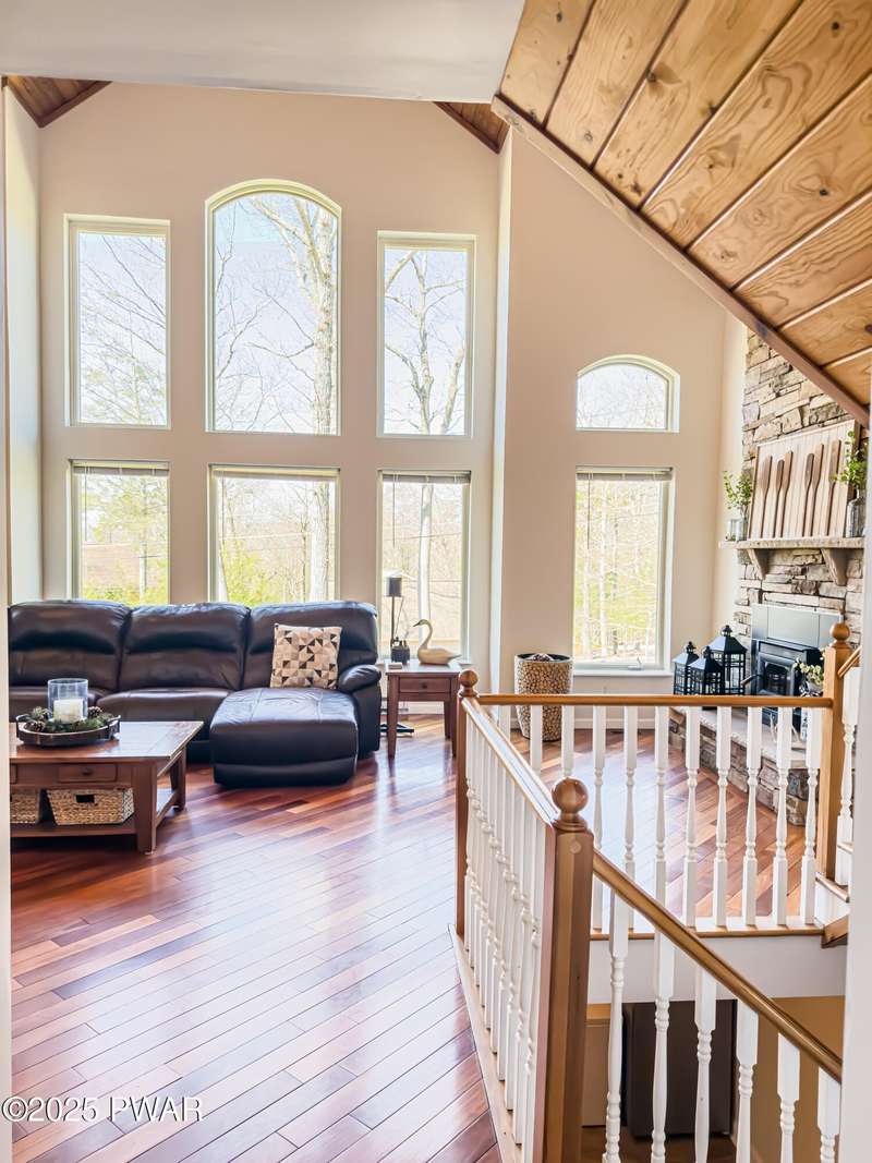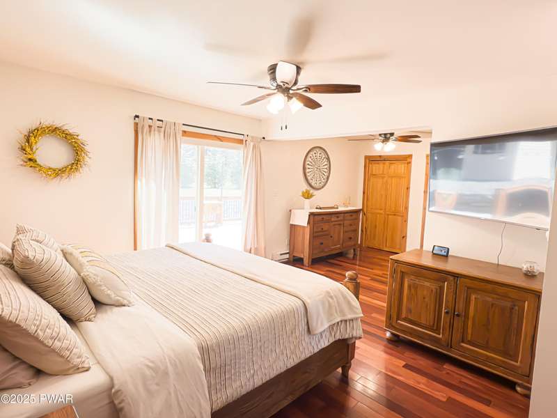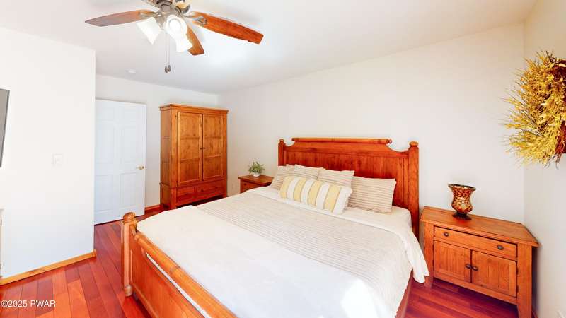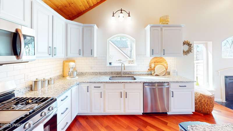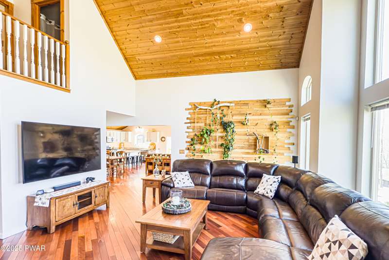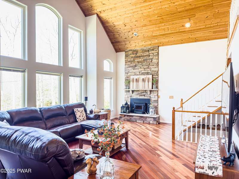 STUNNING LAKE WALLENPAUPACK ''LAKE LIFE'' DREAM HOME READY TO CHECK ALL YOUR BOXES! With a coveted DEEDED BOAT SLIP, this more than impressive lake house is perfectly located in one of this lake's MOST desired, exclusive neighborhood of Woodland Hills, featuring its pristine private beach & all lakeside amenities. This home is a SUPER STUNNER from the moment you pull up... Thoughtfully designed & meticulously maintained, every feature you could possibly desire has been incorporated throughout this very special & spacious retreat! 4200+ SQ.FT. of living space w/ 4-5 BEDROOMS, 4 baths, soaring vaulted ceilings, floor to ceiling windows to further enhance the already light & bright ambiance of the open floor plan, Brazilian cherry HDWD floors throughout, beautifully inviting eat-in kitchen w/ PLENTY of space for family & friends w/ extra large dining area, kitchen island w/ storage, PLUS cozy sitting/living rm w/ shared fireplace. Breathtaking great room to accommodate any gathering or event w/ floor to ceiling stone REAL WOOD fireplace (ready to be easily converted if desired). Multiple lower level living, sleeping, & entertainment areas featuring a GORGEOUS & spacious family rm, all newly redone w/ beautiful custom T&G throughout, & custom barn door storage areas, lower level bath w/ shower, & walk out access. Outside features incl. beyond ample parking & storage w/ a large, gently sloped private driveway & HUGE oversized 4 car, 2 story garage w/ 26X40 2nd floor open area that's level to the deck area for easy access & ready to be finished into whatever addt'l space you wish. Corner lot on a quiet cul-de-sac road w/ lush yet low maintenance all new landscaping, newly upgraded wrap-around decking w/ wrought iron rail system, extended entertaining space on the brand new stone patio w/ firepit & surrounded by natural stone boulders w/ views to the addt'l storage shed which can be used to enjoy fireside movies & sports outdoors!