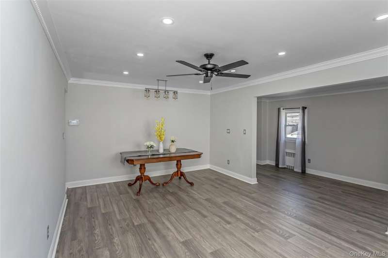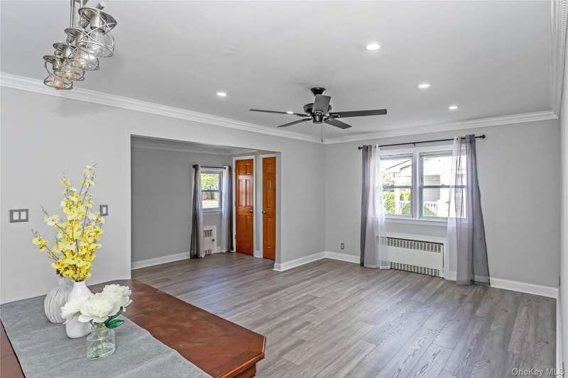 Located in a well-maintained multi-family home, this renovated first-floor apartment offers generous space and natural light throughout. The unit features two comfortable bedrooms, a welcoming foyer, a versatile mudroom or sitting area, an open-concept living and dining area, eat-in-kitchen, and a brand-new bathroom. Recent upgrades include new flooring, a freshly paved driveway, and a private backyard with a lovely outdoor patio. The full basement, accessible through a separate entrance, is partially finished and includes a full bathroom, a laundry room, and ample storage space-perfect for recreation or work, Tenants are responsible for gas and electricity. Small pets may be considered at the owner's discretion. Ideally located just blocks from the Mineola LIRR station, providing a quick commute to Penn Station or Grand Central. Easy access to JFK and LaGuardia airports, NYU Langone (Winthrop) Hospital, Adelphi and Hofstra Universities, Roosevelt Field Mall, the Gallery at Westbury Plaza, and a wide variety of dining options. Don't miss this opportunity to make this conveniently located home yours!