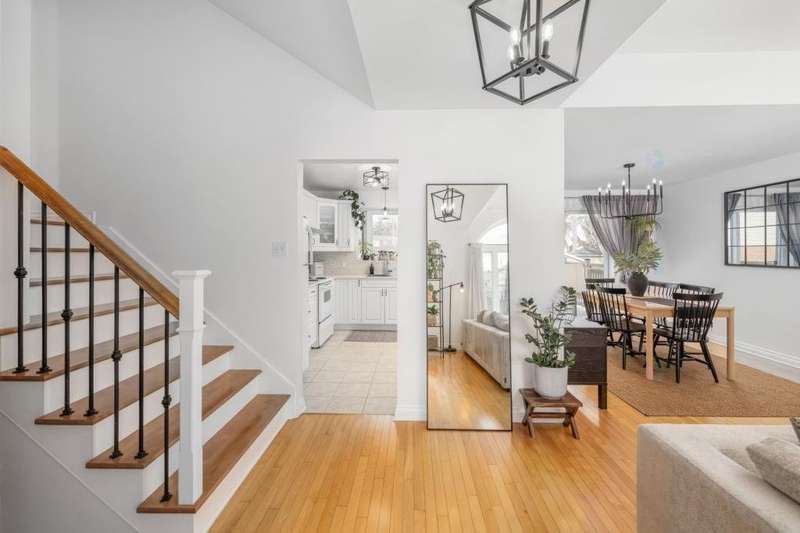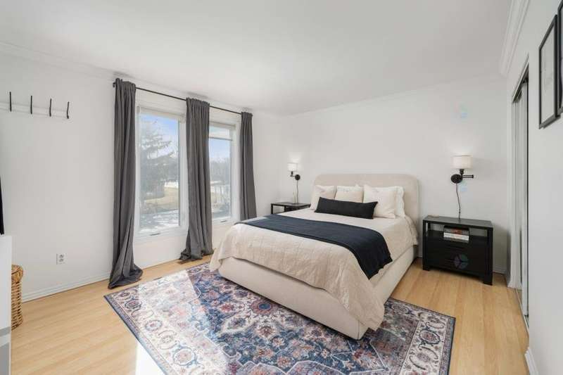 A handsome, extensively renovated (circa $175,000) five-bedroom executive residence set on a sizeable, tree-lined corner lot in the sought-after neighborhood of Timberlea. Surrounded by walking and biking trails, in proximity to several parks, and within walking distance of the REM, this home offers stylish interiors, open-plan living and dining spaces, wood flooring on the main level and basement, and a thoughtfully landscaped, fenced backyard with a new deck and cabanon.