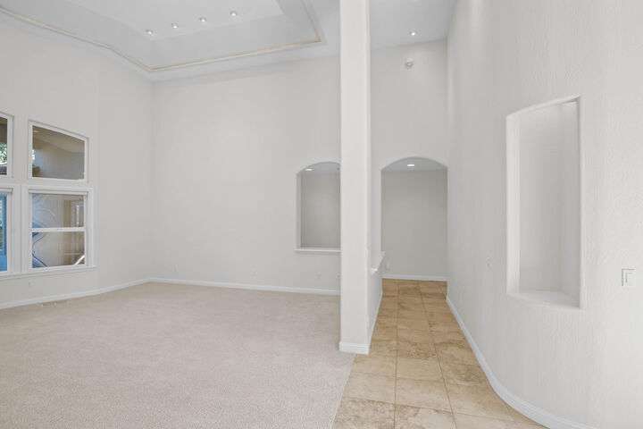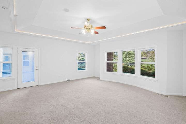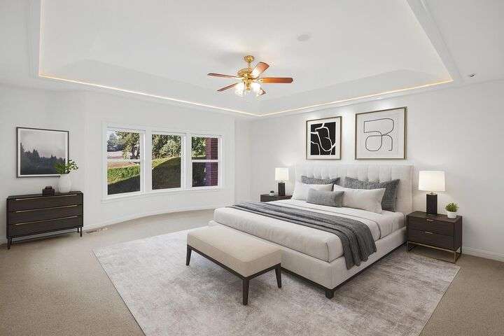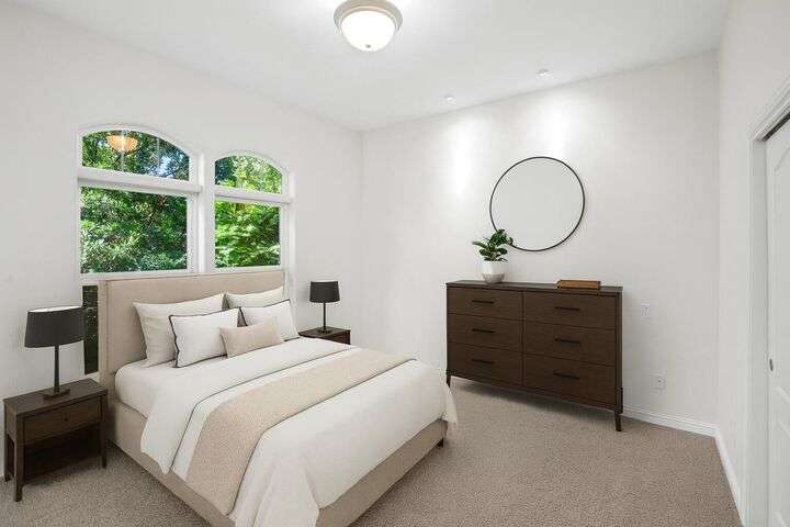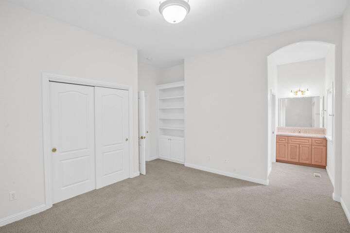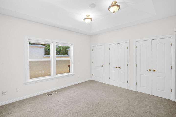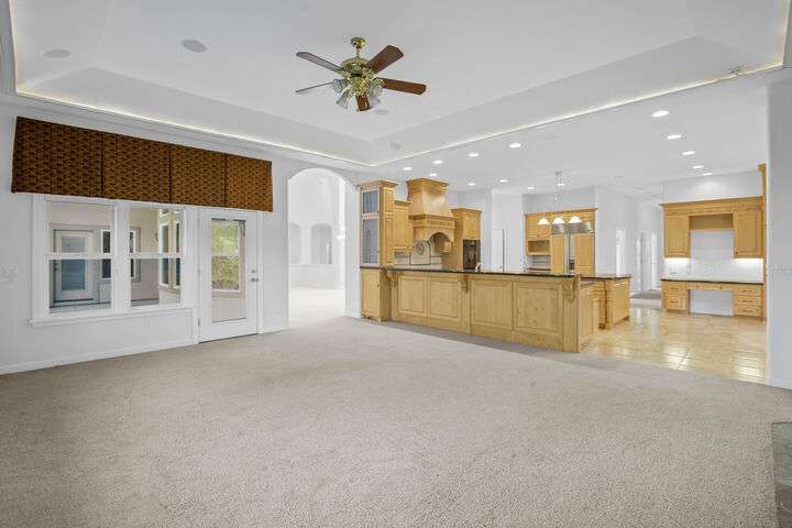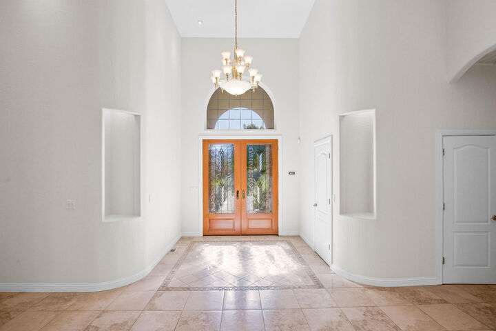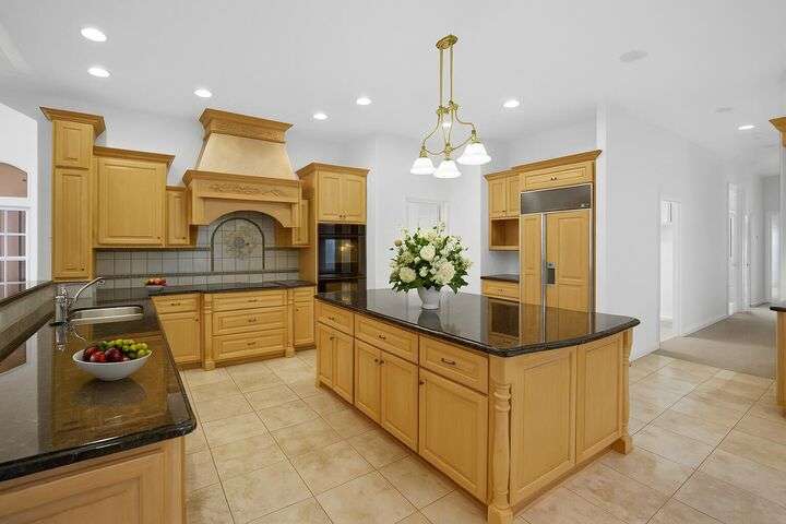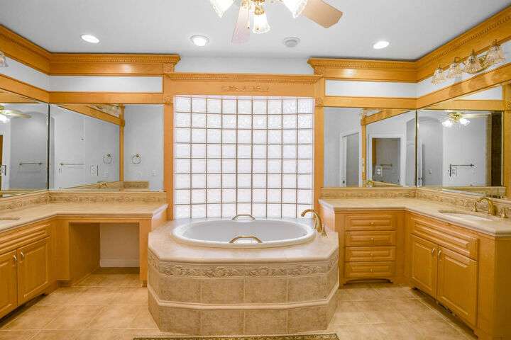 Tucked behind the gates of the prestigious Island Pointe community, a one-of-a-kind opportunity awaits—this custom-built masterpiece has had only one owner. Perched on the 12th tee of Rogue Valley Country Club, the 4,118 sqft single-level home was designed for both comfort and grandeur. Step inside to be impressed with soaring ceilings, a dramatic wall of windows, cozy gas fireplace, and built-in TV—an entertainer's dream. The heart of the home, a chef's kitchen, is equipped with granite counters, double ovens, a warming drawer, and thoughtful pull-out cabinetry. The luxurious main suite offers a spa-like escape with jetted tub, walk-in tile shower, dual vanities, and a grand closet. A second primary suite on the opposite wing creates ideal flexibility for multigenerational living. With 5 bedrooms, 4 bathrooms (3 with heated floors), a 4-car garage, remote patio awning, and more, this exquisite home offers luxury living with breathtaking golf course view.