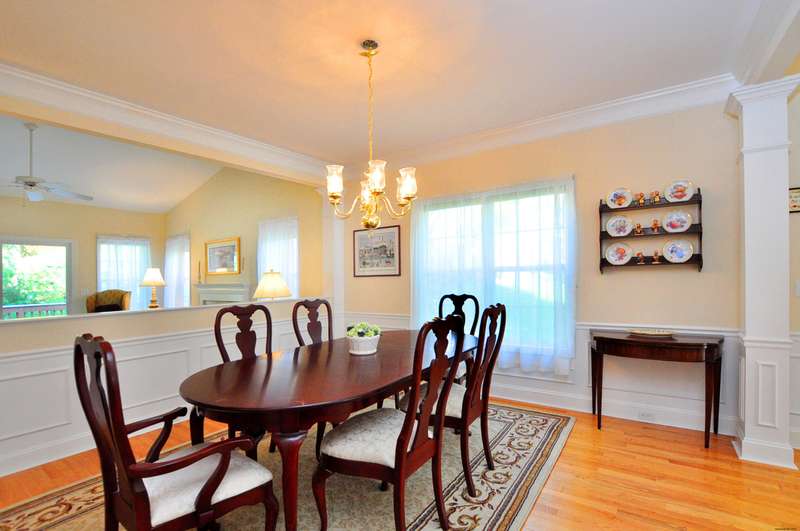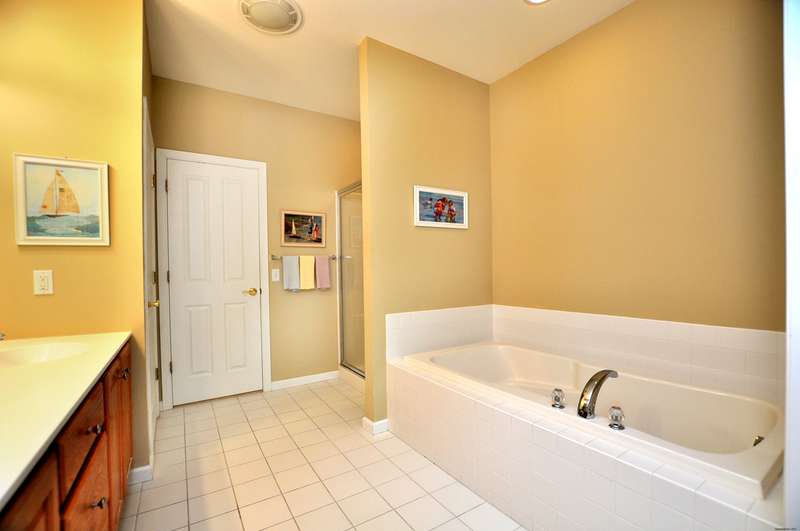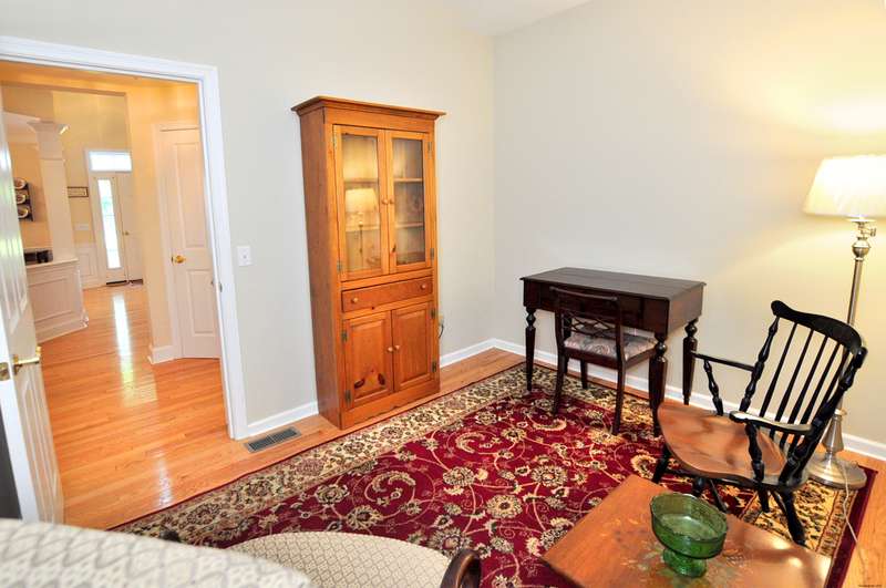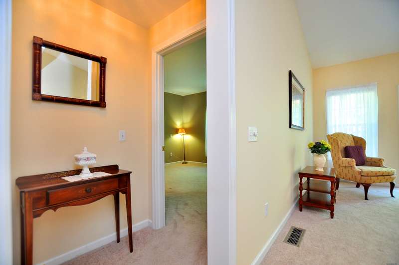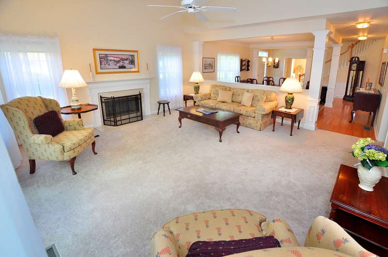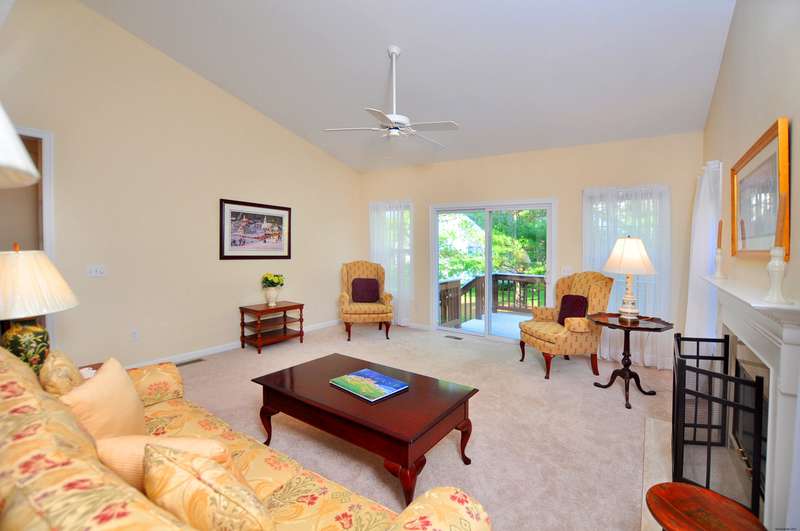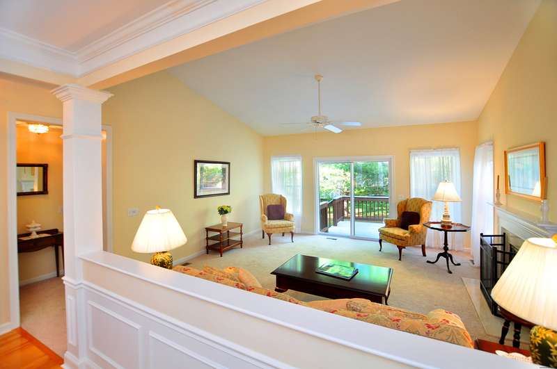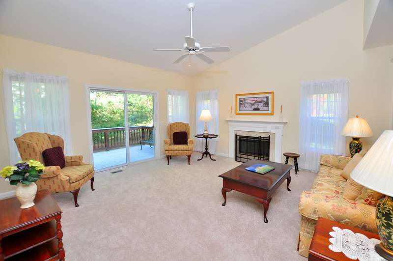 Embrace a more carefree & comfortable lifestyle, with great style, space & luxury, all just a minute from the town's wonderful Village Green. This, the largest style floor plan in a sought-after small community, features a beautifully open floor plan and full gracious main-level living. Highlights include big rooms, abundant windows & desired upgrades; High ceilings, crown moldings, wainscotting and columns. Sunny kitchen with dinette, tall oak cabinets, granite counters & pantry. Gracious formal DR with bay window and LR with FPL; open to private deck and stunning 2-story foyer accenting the open living areas. Lovely PBR suite and luxurious bath w/separate tub and shower, double vanity. A bonus to this particular design is a main level office/den! Easily accessible powder room, laundry and 2- car attached garages. The upper level is exceptional, with cozy loft TV/hobby room, beautiful guest BR and bath and huge study w/access to the Jack & Jill bath. These are wonderfully versatile ex
