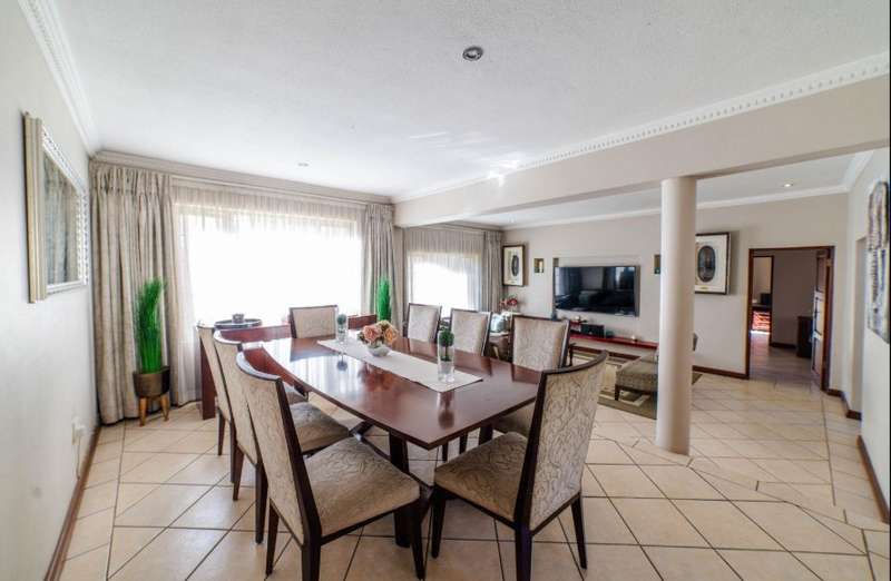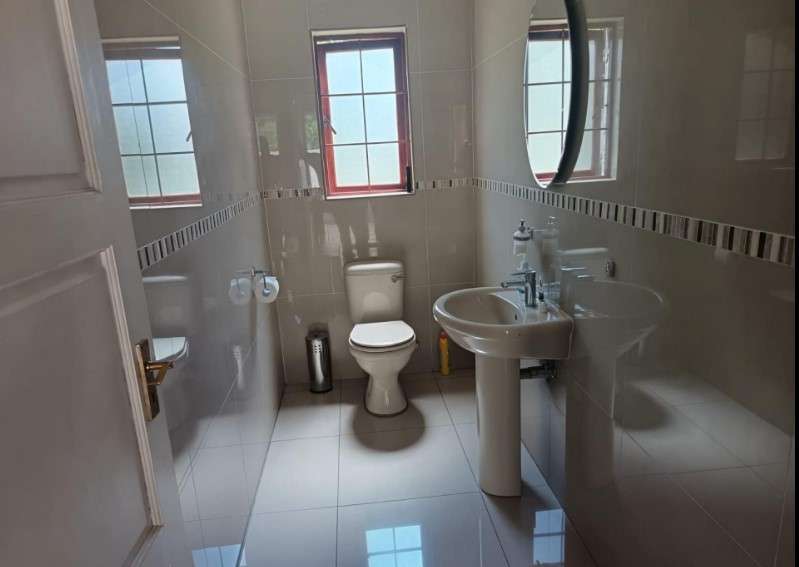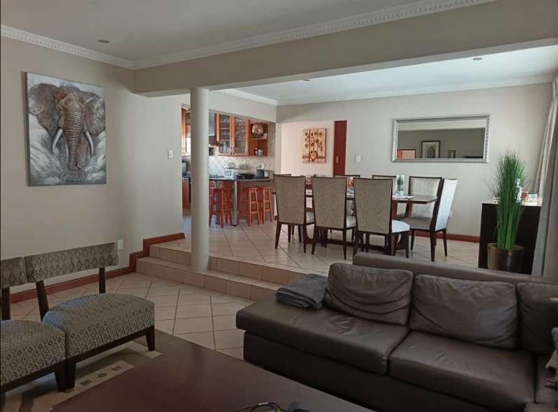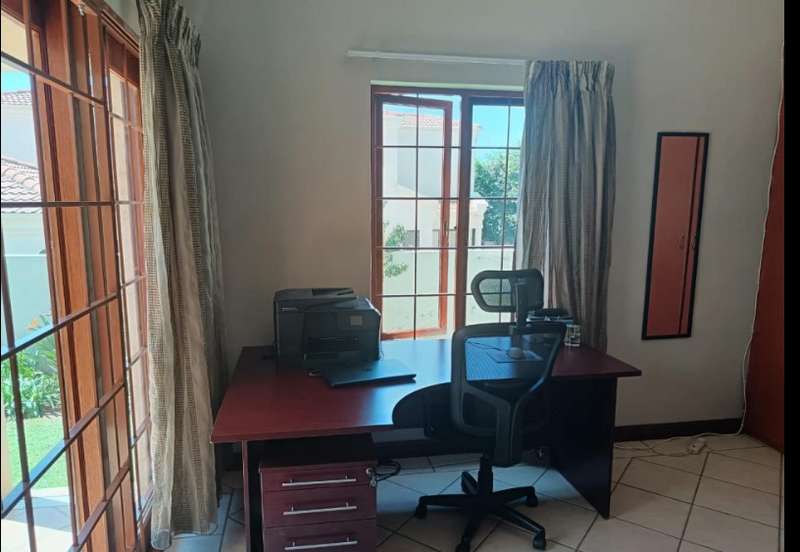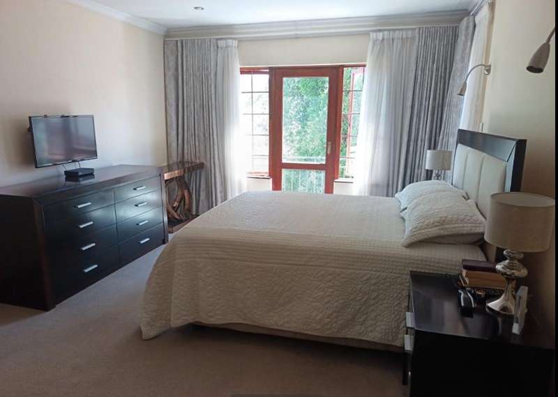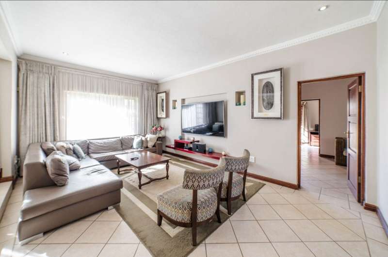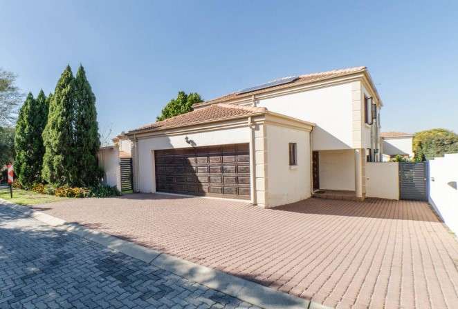 This stunning 4-bedroom, 3.5-bathroom home in the sought-after Gateside Manor Estate combines modern style, generous living space, and peace of mind. The ground floor features open-plan lounge and dining areas, a second lounge, a stylish kitchen with scullery, and a guest suite with en-suite and patio access. Upstairs, the main suite boasts a walk-in closet, balcony, and luxury en-suite, while two additional bedrooms share a full bathroom. Enjoy entertaining on the covered patio overlooking a wrap-around garden, with optional solar and inverter systems available. Set in a secure estate with 24-hour access control, and ideally located near Broadacres Shopping Centre, Fourways Mall, Life Fourways Hospital, and top schools. This home is designed with flexibility and lifestyle in mind – whether you’re entertaining, working from home, or enjoying quiet family time.