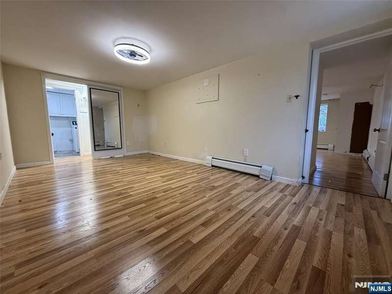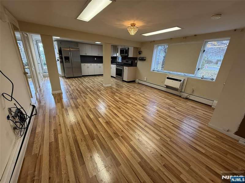 Ground floor unit in large 2-family home with off street parking for 2 small tandem cars. Entrance is in the rear. Large eat-in-kitchen open concept into living room. Updated stainless appliances; microwave, range oven & fridge. Living room has wall unit air conditioner. Nice sized bedroom with storage and access to private laundry in-unit, included. Tenant pays their own gas, electric and hot water, and responsible for their own snow removal. Washer & Dryer are included.