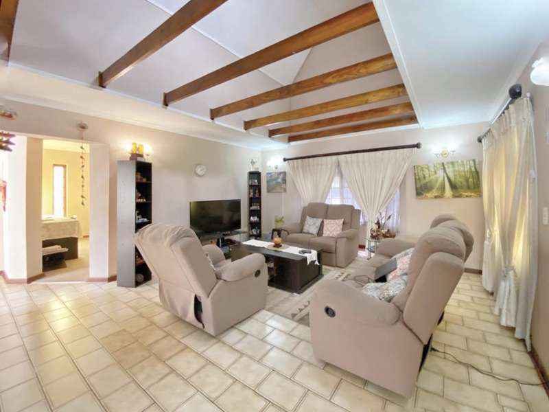 Abundant natural light and generous proportions characterise this modern family home. Set in a central location within a security-controlled complex, this family home offers an open plan floor layout with a neat interior for comfortable family living. One is welcomed through the open plan lounge leading onto the private dining area and onto the lightwood kitchen. The kitchen is complimented with good cupboard space, chrome finishes and space for 3 appliances. The private dining room is ideal for this intimate family dinners to create memories. The 3 well-sized bedrooms are warm and feature wooden windows framing the low maintenance surrounds. There are also 2 full bathrooms featuring light finishes. With double automated garaging, and the added benefit of being in a secure complex and a hybrid geyser, this home is ideal for those looking to enter this prestigious suburb!