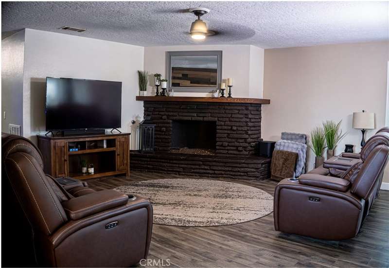 This charming, move-in-ready 4-bedroom, 2-bathroom home offers a comfortable lifestyle on a generous 28,950 sq ft lot. The interior spans 1595 sq ft and features a user-friendly galley kitchen with upgraded appliances and ample cabinetry. A dining area is conveniently located just off the kitchen, and a fireplace offers warmth on cold nights. Ceiling fans are installed in all rooms for added comfort.