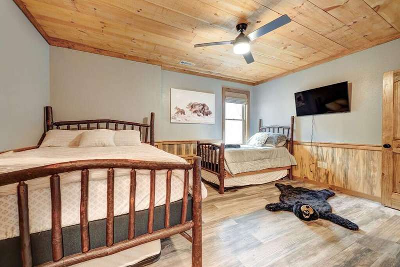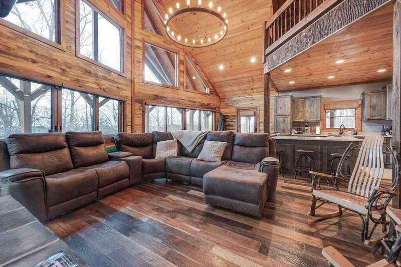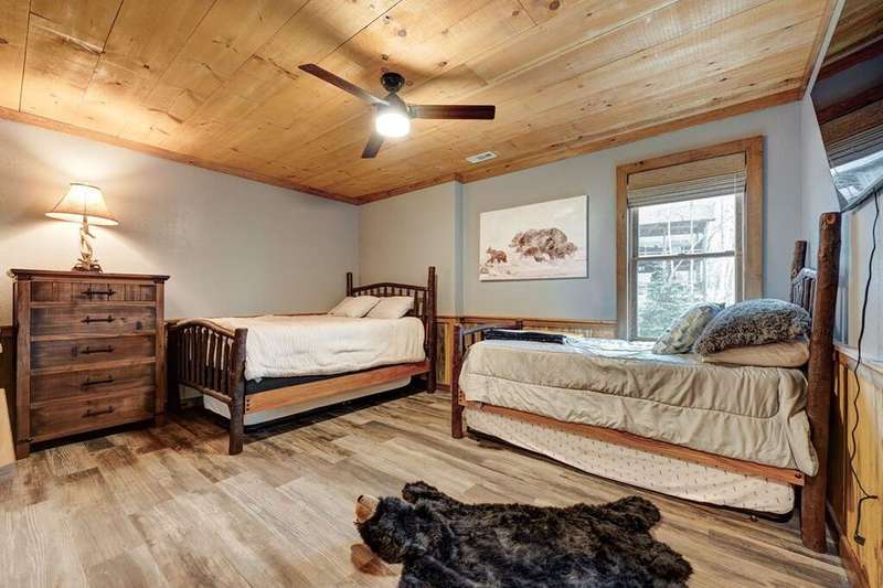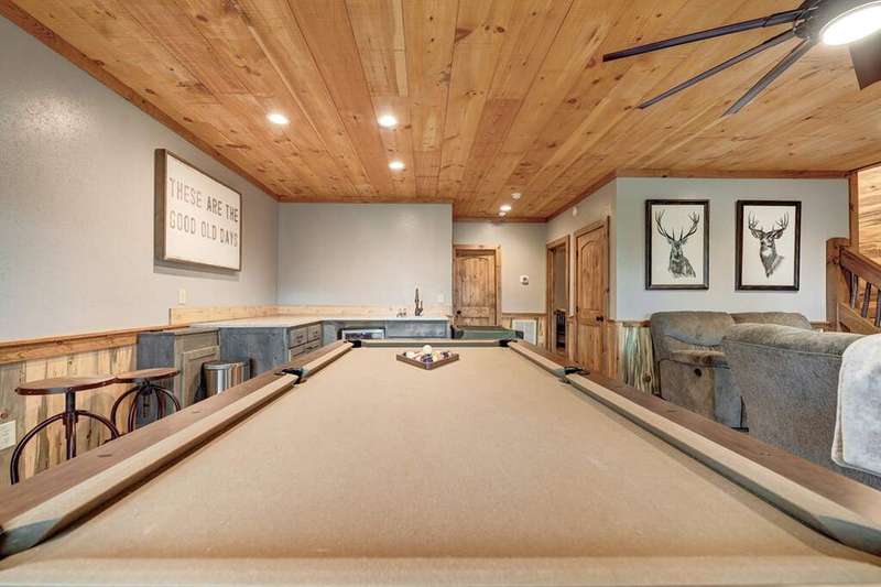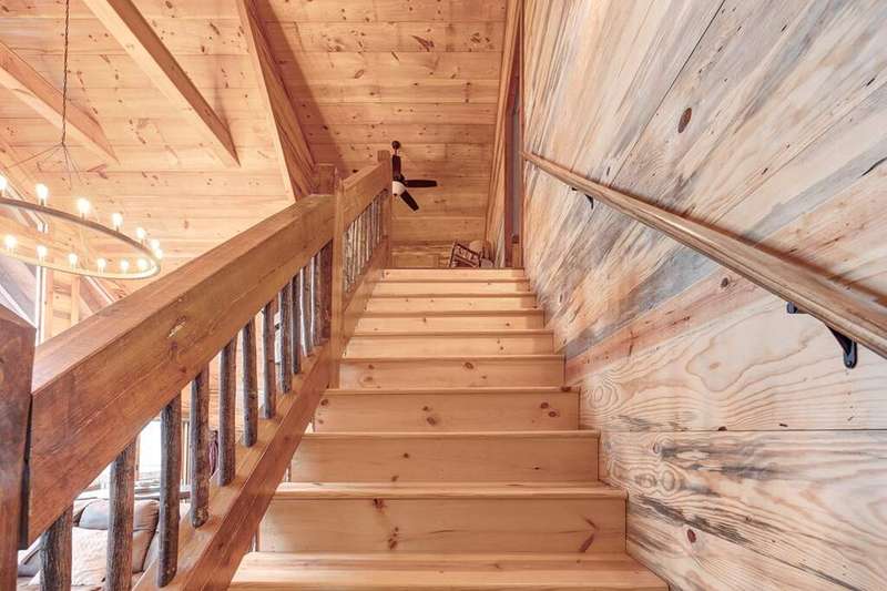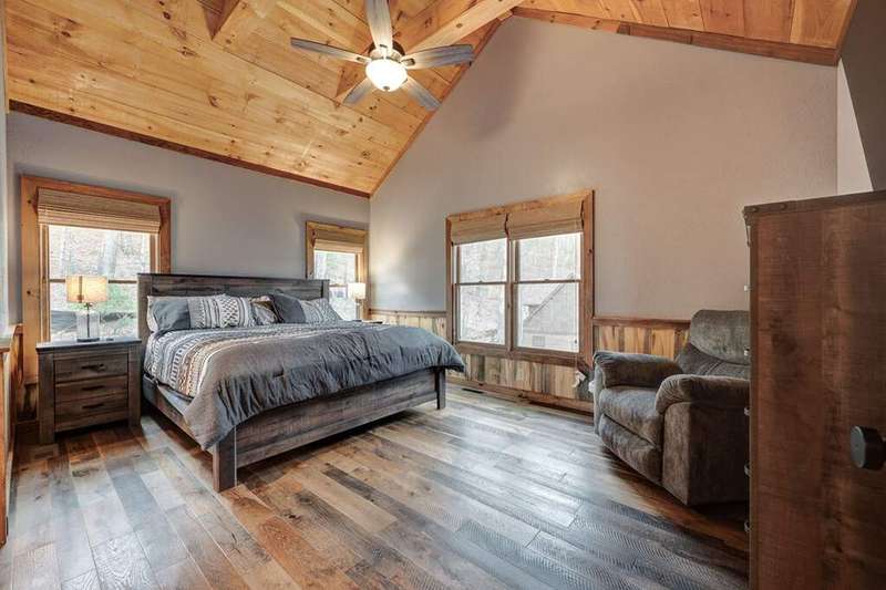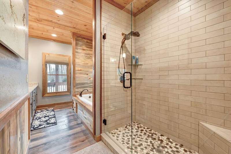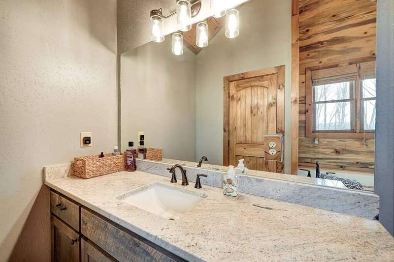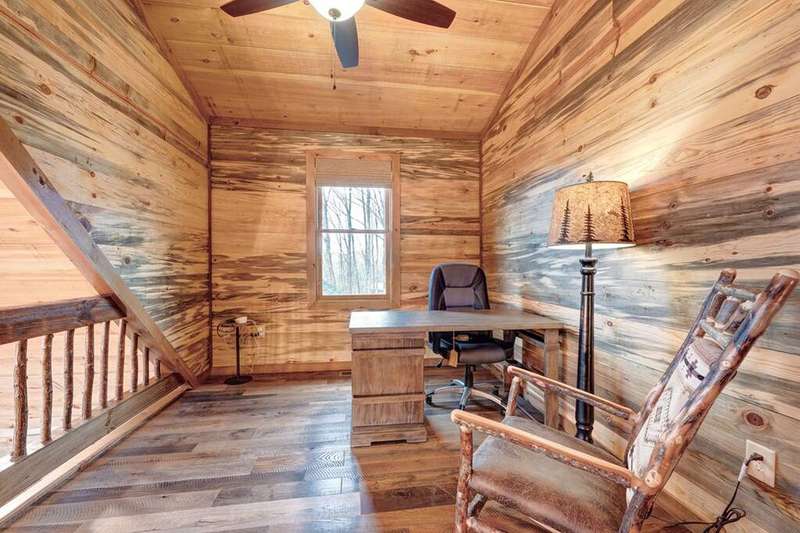 This stunning prow-front cabin features a window wall that brings the outdoors inside. The cabin offers a spacious Garage and multiple outdoor living areas, including a Party Porch with a wood-burning Fireplace, a Hot Tub porch, wraparound decks, and a generator. The direct access to Lake Blue Ridge is ideal for kayaking and paddle boarding. The great room boasts a majestic stone fireplace with a cedar mantel that seamlessly flows into the dining area: the kitchen has granite countertops, custom cabinetry, and stainless-steel appliances. The cabin showcases beautiful "Blue Buggy" tongue-and-groove (T&G) interior walls, bark accents, tiled showers, and granite countertops. The terrace level includes a family room featuring a wet bar, pool table, and rocked fireplace. Each level has a spacious bedroom with a full bath and an additional half bath on the main floor. The laundry is conveniently located on the main level, and ample storage space ensures you have room for all your gear and belongings. The cabin is situated in an established neighborhood with all-paved access, this cabin is just a short walk from the Necowa Cove community access. You can take advantage of the nearby Aska Trail System for hiking, mountain biking, and immersing yourself in nature while only ten minutes away from downtown Blue Ridge. Public boat launch and the Toccoa River are just minutes away. Fully furnished and offering seasonal views of the mountains and shimmering light off of the lake, this cabin is the perfect getaway. Short-term rentals are allowed.