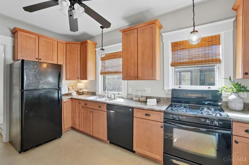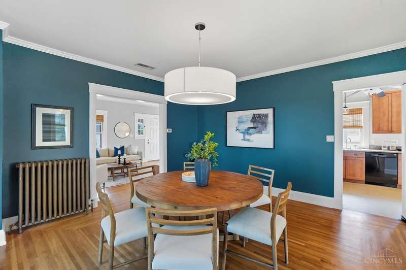 This 3 bed, 1.5 bath home blends the timeless character of Pleasant Ridge with thoughtful updates. Relax on the welcoming covered front porch, complete with brand new steps and sidewalk (2025) then step inside to enjoy hardwood floors, a chandelier lit dining room, and a cozy sunroom that's equally perfect for orchids or Zoom calls. The kitchen focuses on maximizing storage, while boasting a newer fridge (2023, a handy 1/2 bath, and walkout to the backyard and garage complete with loft storage. Upstairs, three large bedrooms and a full bath with a mounted towel warmer await, PLUS there is an additional back staircase that provides a shortcut to the kitchen, ideal for midnight snacks without parading through the living room! The basement has been waterproofed and includes a transferable warranty, washer (2024)and dryer, and walkout access, perfectly primed for finishing into extra living space. Pedestrian friendly area! Close to several iconic dining options, schools, parks & highways!