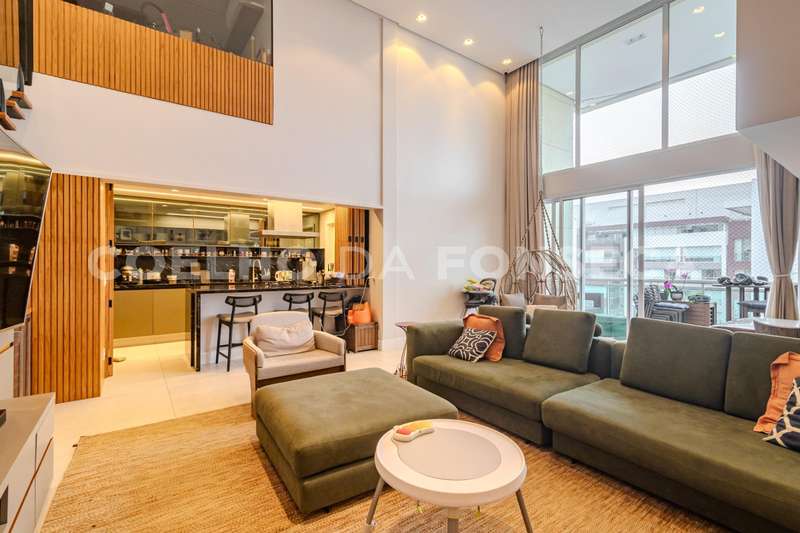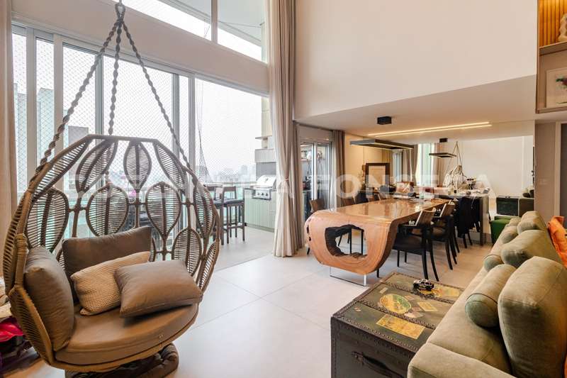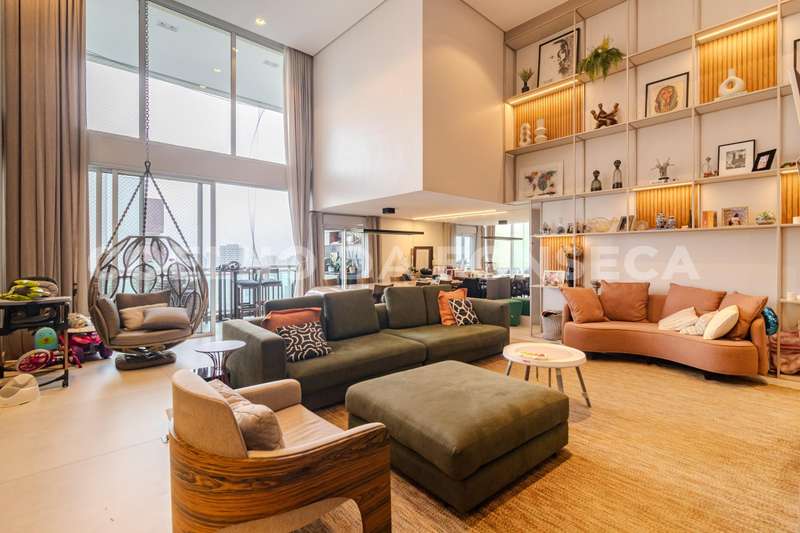 Apartamento no bairro Campo Belo com 232m² área privativa/útil, 4 dormitório(s), 4 suíte(s), 3 vaga(s), 4 banheiro(s), churrasqueira, escritório, terraço, depósito, duplex, ar condicionado, dep. de empregados, pé direito duplo.