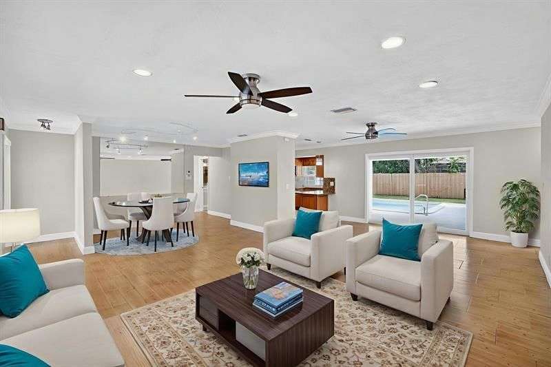 Come see this beautiful 4-bedroom, 2-bath home featuring a spacious circular driveway and excellent curb appeal. Inside, you’ll find a bright, open living area that flows seamlessly to the outdoor pool and patio—perfect for entertaining. The home offers three generously sized bedrooms, plus covered front and back porches for year-round enjoyment. The kitchen overlooks the pool, making it easy to stay connected with guests. Enjoy peace of mind with full hurricane insurance credits, including impact doors throughout and accordion shutters on all windows. Major upgrades include a 2018 roof, 2024 tankless water heater, and a 5-ton A/C system installed in March 2024. Located just 10–15 minutes from downtown and a short drive to the beach, with convenient access to all major highways.