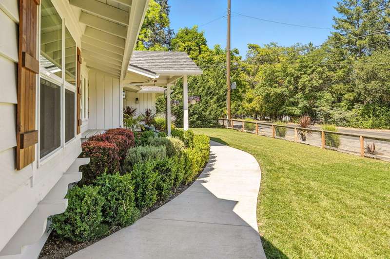 Welcome to the heart of Jacksonville, Oregon. This single-story 3-bedroom, 3-bath ranch, just steps from downtown shops, eateries, and the famed Britt Festivals, blends vintage charm with modern updates. Extensively renovated in 2019, the 1,993 SF home features a 2-car garage, wood-burning fireplace, den and living room, dining area, cozy kitchen nook, coffee bar, and a spacious primary suite with double-door entry and private patio access. Enjoy beautifully landscaped yards with mature trees, great privacy, sprinkler irrigation for easy care, all in a setting perfect for summer fun or cozy winter living. A must-see!