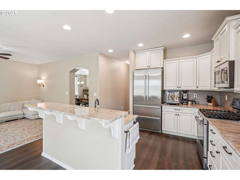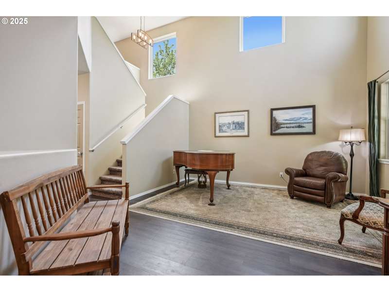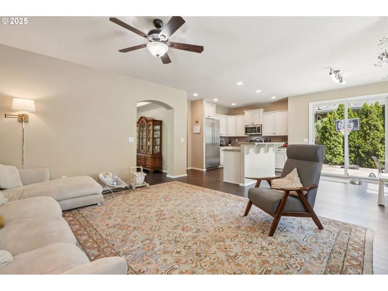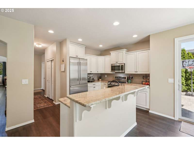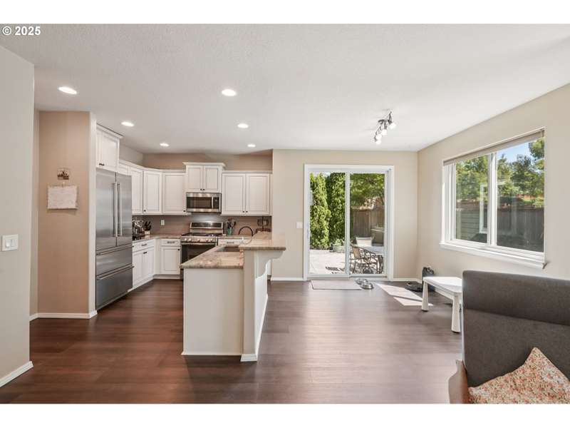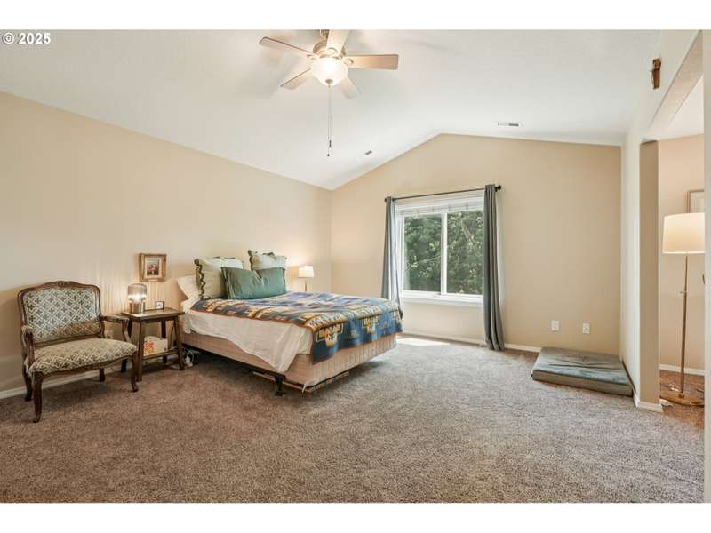 Exceptional combination of a nearly 3000 square foot home on a large lot with 4 bedrooms including 1 on the main level with a full bathroom. Combine that with the location in Deer Creek at the end of a private drive, across from green space in front & park with pickleball sports court & playground, and paved paths. Great backyard with gorgeous newer stamped concrete patio and walkway. All new high end Anderson windows valued in the $50k range which help maintain temperatures and mitigate sound. Soaring ceilings, spacious kitchen w/granite counters & SS appliances. Laminate wood floors, formal dining/living, family room w/fireplace, main floor bedroom & full bath. Upper level primary suite with 2 rooms & spa like bathroom! Convenience to everything including desirable SkyRidge Middle School and Prune Hill Elementary. Easy to get to shopping and commuting and the airport for travels. Excellent location and home!