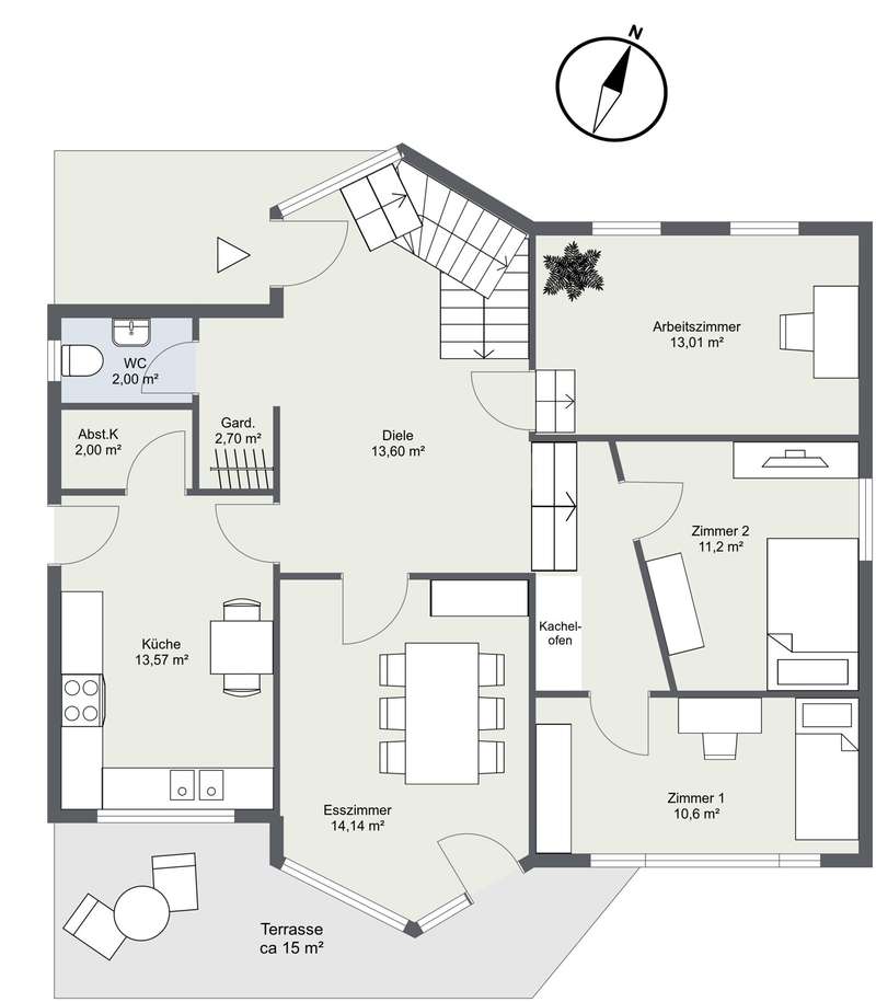 A spacious detached house built in 1983 is for sale. With a living space of approx. 200 m² and a spacious plot of approx. 1,068 m², it offers ideal conditions for families or a multi-generational concept. The well thought-out layout opens up a wide range of possible uses and impresses with its functional floor plan. The property has a total of eight rooms, including seven bedrooms that can be used flexibly - perfect for family, guests or as work areas. Three bathrooms and a separate guest WC offer pleasant comfort, even for several people or generations under one roof. On the first floor, a spacious hallway provides easy access to all rooms. Thanks to the wide window front, a pleasant incidence of light is created. A special feature of the house is a solid shelter integrated into the basement. Due to its structural characteristics, the room is ideal as a secure storage area. The impressive plot opens up numerous possibilities: ample space for gardening, leisure areas or additional outdoor areas for children and pets. It is also conceivable to divide the property into several residential units, making it attractive for large families as well as for several parties. The central location makes everyday life easier - shopping facilities, schools, nurseries and public transport are all within easy reach. This detached house combines generous living space, a versatile room layout and a large plot in an attractive location. Whether for a large family, several generations or communal living - there are numerous possibilities here. For further information or to arrange a viewing appointment, please do not hesitate to contact us. We look forward to hearing from you. The energy certificate was not yet available when the offer was made and will be submitted at the time of viewing.