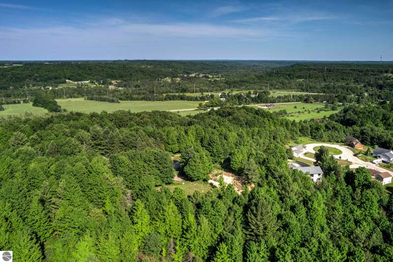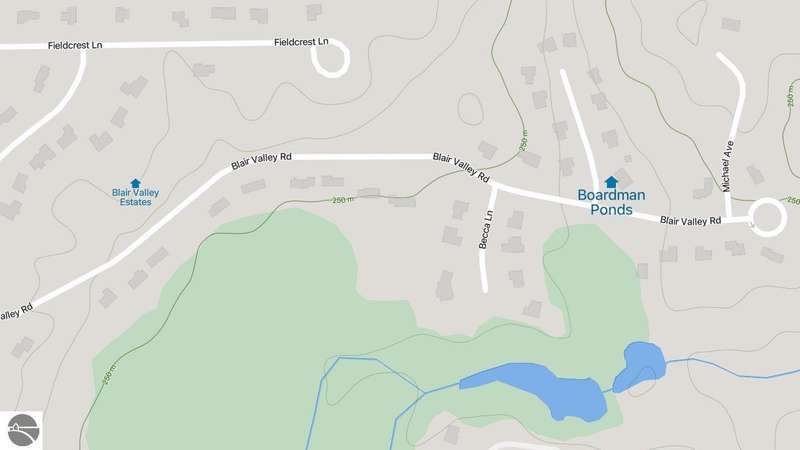 Looking for a one-of-a-kind hilltop building site with panoramic views of the Boardman River Valley? This spectacular build site in Boardman Ponds has just what you are looking for. Private setting with southwest exposure, countryside vistas. Very nice neighborhood, mostly built out. Infrastructure in. Privately maintained roads, Underground utilities. Natural Gas. Municipal water, private septic. May be great spot for solar power. Seller previously has done some clearing and leveling to prepare the site of your dream, custom home!