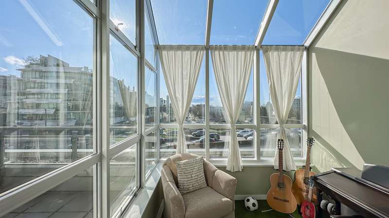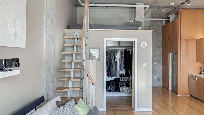 Welcome to Unit 304 at "Loft 495", a beautifully-designed 600 sqft, 1-bedroom loft that seamlessly blends modern elegance with versatile functionality. Featuring soaring 11 ft ceilings, this live/work loft offers a bright, open space perfect for creativity, relaxation, or productivity. The standout solarium is a multi-purpose gem, ready to be your home office, bedroom, reading nook, or indoor garden – the choice is yours! The newly updated bathroom adds a touch of sophistication, perfectly complementing the loft’s chic design. Step onto your private patio to enjoy stunning west-facing views and serene sunsets. With grocery & hardware stores, gourmet dining, and two Canada Line stations just steps away, this peaceful retreat offers unmatched convenience and the ultimate urban lifestyle.