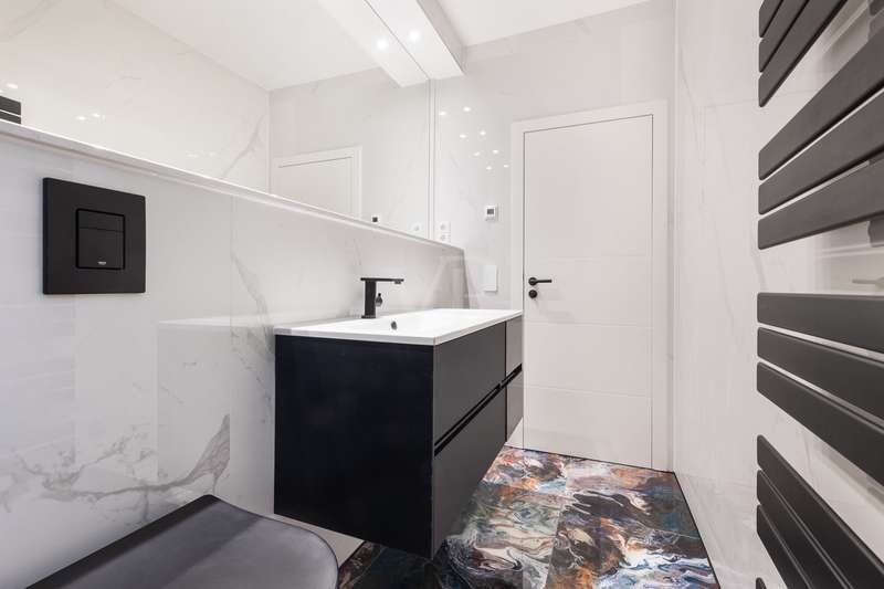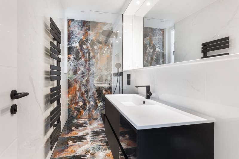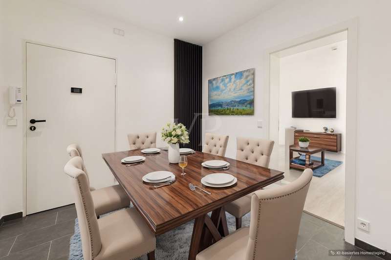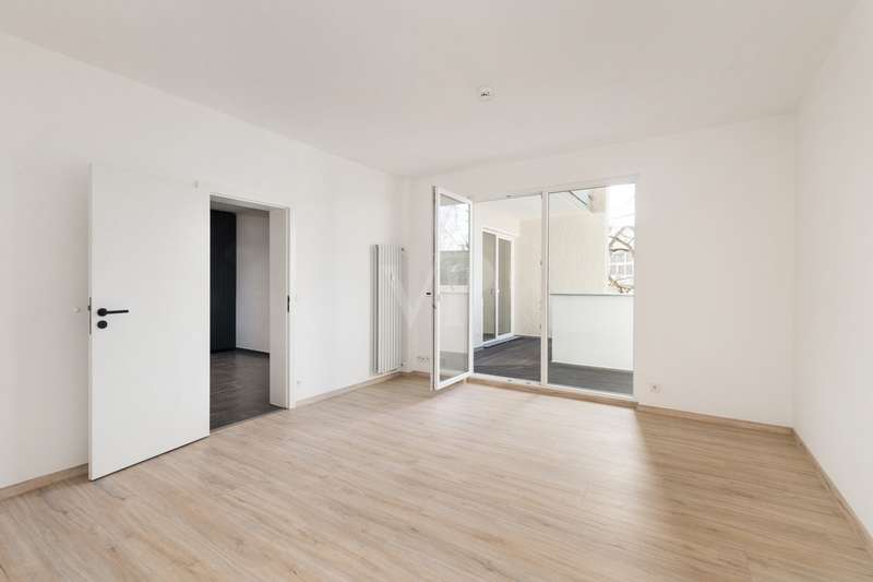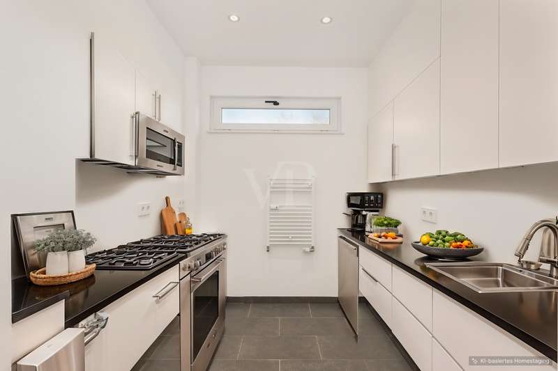 If you have sophisticated and pampered taste, but don't want to show it from the outside, then this is your perfect apartment. This quiet yet central residential complex is appreciated and cared for by owner-occupiers and tenants alike. Your new home and investment is located in the heart of the city, bordering the Grunewald and Charlottenburg districts. The perfect room layout allows you to let your imagination run wild. You will find yourself here as a couple or single with a lot of space OR you have a child who is studying in Berlin and rent the second room to a fellow student. The apartment is on the 3rd floor with elevator. For the very comfortable you also have a garbage chute in the stairwell, next to the apartment door. The garbage disappears in the basement, in the bins provided. The apartment was extensively renovated in 2024/2025 and can rightly be described as luxurious. The two almost equally sized rooms, each with its own balcony access, form the basis for this quarter to become an all-rounder. Bedroom and living room or even 2 shared rooms - anything is possible here. The cleverly integrated floor-to-ceiling balcony windows in both rooms and high windows in the kitchen ensure that this apartment retains its privacy. The spacious covered sun loggia has both an outdoor socket for electric barbecues and outdoor lighting. In addition, wood-look flooring has been laid on studs and LED lighting has been installed in the parapet area of the loggia, which radiates a romantic atmosphere in the evening. Enjoy the end of the day with a glass of wine or crémant at sunset or a weekend breakfast in the morning. The square hallway is even suitable as a dining area in front of the kitchen. Behind the elegant black wooden elements are niches and storage spaces. In addition, a large number of sockets have been installed throughout the apartment so that the interior design is not disturbed by annoying cables. The door and window handles as well as the bathroom look impress with their elegant black elements. The kitchen, with an upper window, leaves room to realize your own ideas. The electric instantaneous water heater for the hot water supply in this apartment is also located here. This means you are independent of the average consumption of the system. Naturally, a connection for a future water meter was considered as part of the renovation, but is not visually visible as is usually the case due to the visible wall water meters or a metal flap. Aesthetics and practical implementation went hand in hand here. This device is located in the bathroom, below the large washbasin with motion detectors. In addition to additional underfloor heating, the luxurious ground-level shower room has an automatic lighting system, a multifunctional rain shower, ladder radiator, transparent shower partition and and.... The black and white design should also be emphasized. Black elements - white wall surfaces and everything paired with a very lively floor covering in a natural stone look, which runs through to the wall area of the shower like an oriental carpet. In addition to the underfloor heating in the bathroom, there is also ladder heating for fluffy winter towels. We will be happy to send you a list and summary of all the work carried out as well as descriptions of the fixtures and fittings and sanitary highlights separately. An offer in which the location, the equipment and the price are really right.