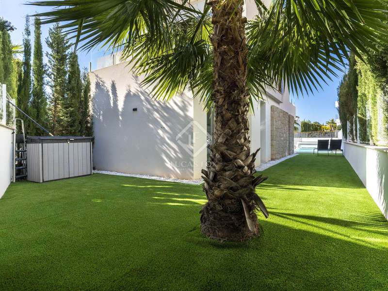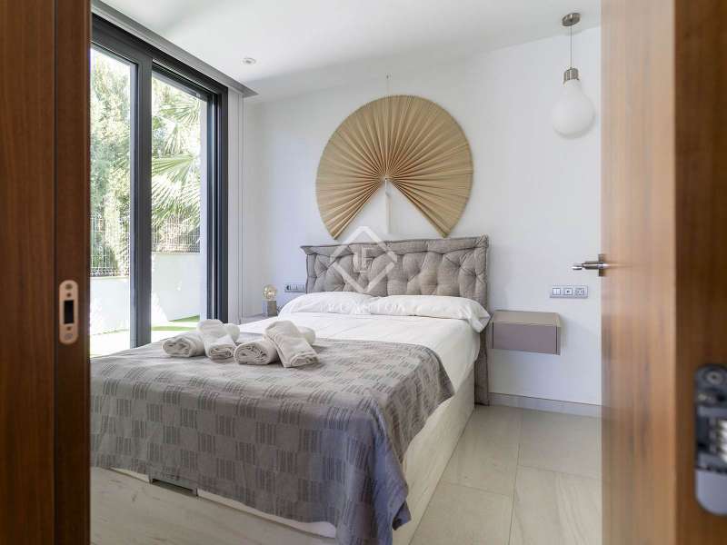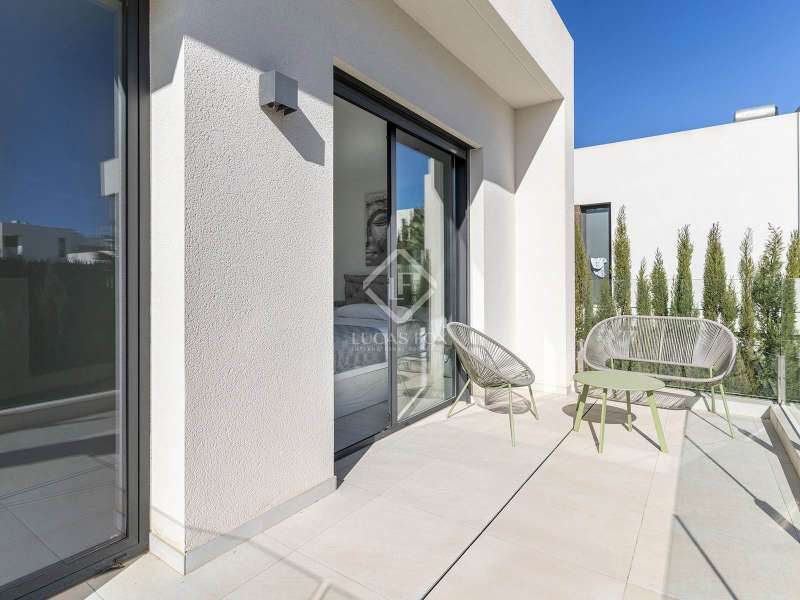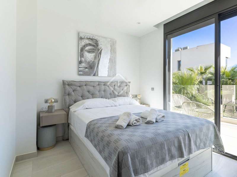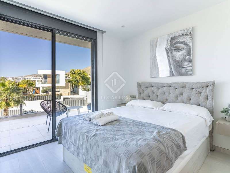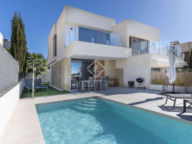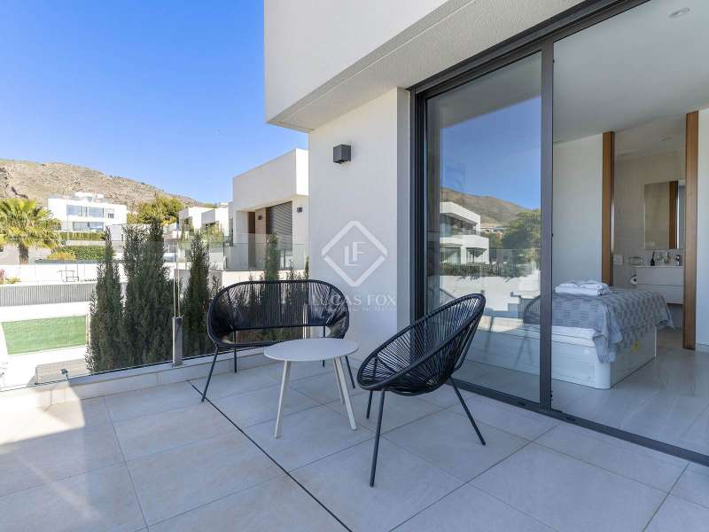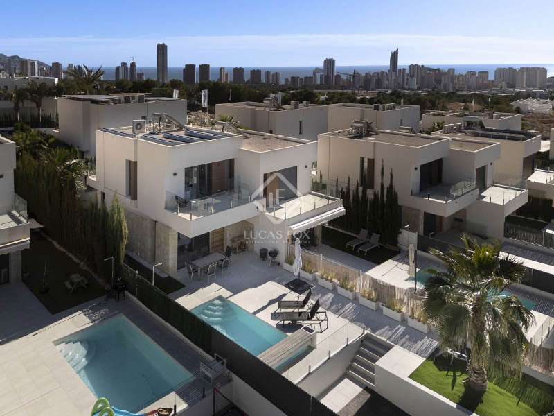 Nestled in the prestigious Sierra Cortina residential area of Finestrat, this stunning semi-detached, two-story smart home offers the perfect blend of modern luxury, comfort, and cutting-edge technology. Sierra Cortina is renowned for its tranquility, security, and breathtaking views of the Mediterranean Sea and Benidorm’s skyline. This exclusive neighborhood is surrounded by lush greenery and conveniently located near golf courses, shopping centers, fine dining, and beautiful beaches, making it an ideal place for both living and investment. The private courtyard is secured with an automatic rolling gate, ensuring both privacy and convenience. The plot features a designated parking space and a 6x3 meter (18 m²) swimming pool with indirect lighting and an automatic solar shutter for enhanced energy efficiency. The spacious terrace offers views to the sea, perfect for enjoying sunsets and outdoor relaxation. Inside, the ground floor boasts a bright and spacious living room, an open-plan kitchen, a small laundry room, a guest bedroom, and a bathroom. The upper floor comprises two good sized bedrooms, each with an en-suite bathroom and a private terrace. One of the bedrooms features spectacular sea views, making it an exceptional retreat. Equipped with a state-of-the-art photovoltaic system, the home benefits from centralized and indirect air conditioning, ensuring cool summers and warm winters. Hot water is supplied by eco-friendly solar energy, making the property both sustainable and cost-efficient. For ultimate convenience, the property features a smart home control system, allowing you to manage lighting, window shutters, and various other functions remotely from anywhere in the world. Whether at home or away, you can effortlessly control your property, ensuring security and efficiency. This property has a tourist license and offers excellent returns due to its privileged location and accessibilty. It is an exceptional home in the Alicante province, perfect for both permanent residence and holiday rentals, offering a seamless blend of luxury, technology, and breathtaking surroundings.