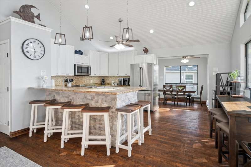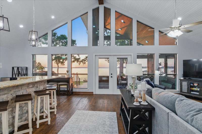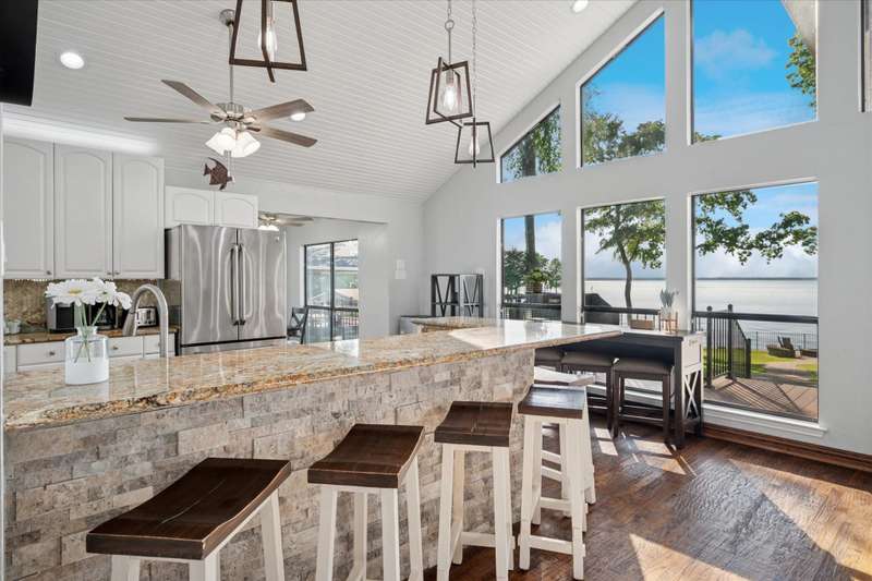 Lakefront Luxury Home with Dock, Guest Suite, and Proven Rental History.Welcome to your dream waterfront lake housewhere luxury, comfort, and peace of mind meet the beauty of lakefront living. This stunning property isnt just a home; its a lifestyle investment, thoughtfully updated to create the ultimate Cedar Creek Lake getaway. Whether you're searching for a primary residence, vacation home, or turn-key short-term rental, this home delivers on every level.Situated on 118' of platted shoreline, this property offers the best open water sunset views youll findan unforgettable backdrop for relaxing evenings and entertaining. The recently constructed private boat dock includes expanded Trex composite decking, an advanced lift system with updated cradleperfect for lounging or launching your boat. The reinforced seawall, secured with concrete anchors and footers, ensures long-term shoreline stability, while a modern sprinkler pump station keeps the refreshed landscaping vibrant.Inside, enjoy fresh interior paint, a stunning stone fireplace with custom mantle and hearth, and bright, open living spaces. The kitchen features granite countertops, stainless steel appliances, and bar seating, ideal for cooking and gathering. Modern lighting fixtures, ceiling fans, and smart TVs enhance the ambiance throughout.A full-size, high-efficiency washer and dryer set add a touch of luxury to daily living, housed in a separate laundry area for ultimate convenience. The private guest apartment includes an upgraded HVAC unitperfect for guests or extended stays. A 2022 architectural roof and Ring security camera system provide lasting comfort and peace of mind.With a 10-year VRBO rental history and excellent reviews, this home offers strong income potential as a vacation rental or Airbnb property.Experience unmatched charm, top-tier amenities, and lakeside living at its finest!