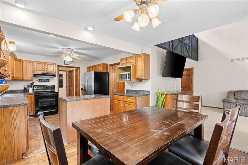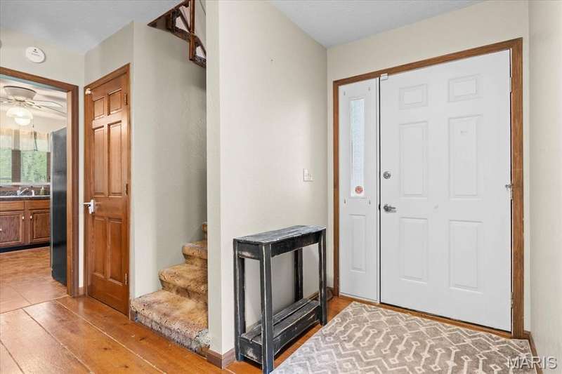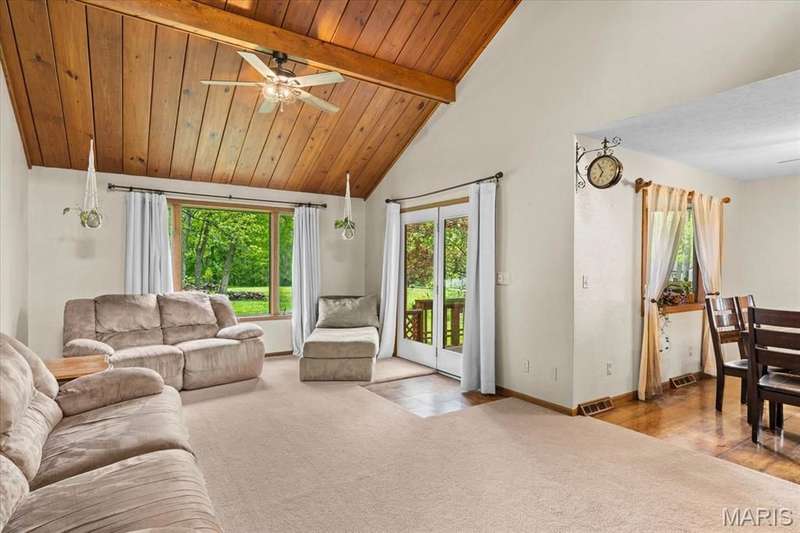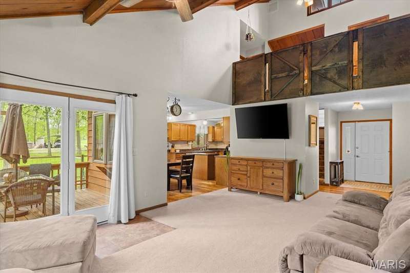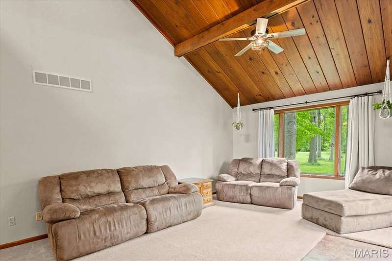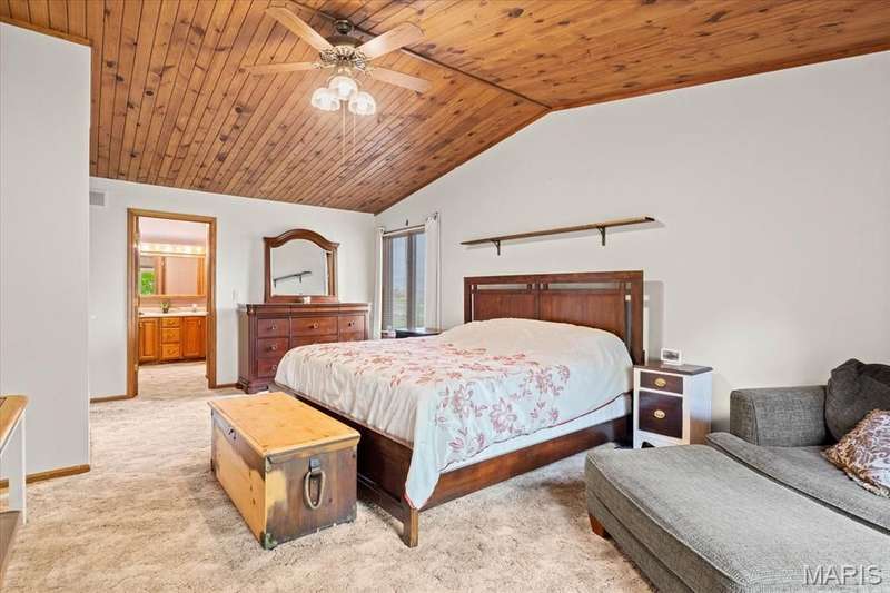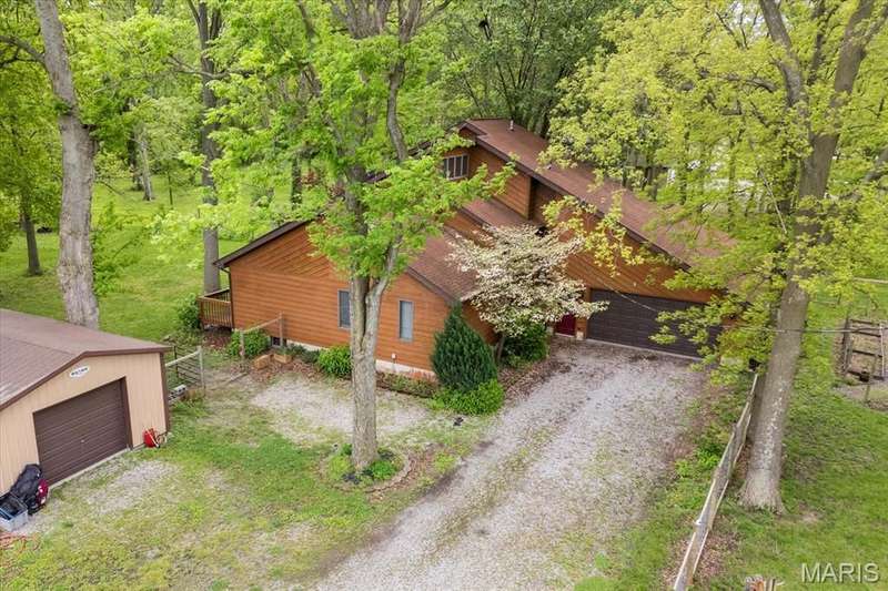 Here is your chance at +/-2.18 acres in the county with a custom 3 bed 3 bath home on a full basement. Sitting just 4 miles from the Dam East boat ramp at Carlyle lake makes this one a convenient location to get out on the water. Main floor has vaulted ceilings with unique layout which enhances the country living experience. Primary suite is located on the main floor as well as the laundry plus a 1/2 bath for guests and family. Upper level has the 2 other bedrooms, a full bath, & a bonus room that looks over to the living room. Downstairs is mostly finished and has a bar, a half walled area would make a great game room area,, a plus sized open area for entertaining, & an unfinished area for your extra treasures to be stored. There is a two car attached garage and a pole barn to park your toys. Front porch, primary bedroom deck, a deck off the living room, a deck out the laundry, & an area off the home that is set up for a hot tub area. Come see this one in person.