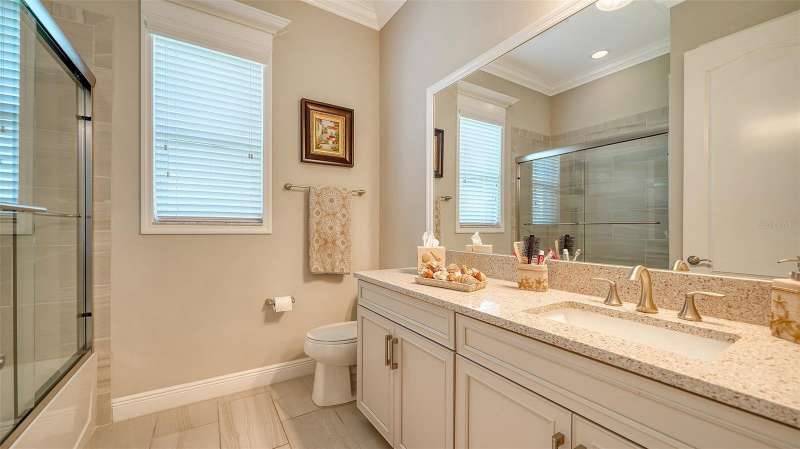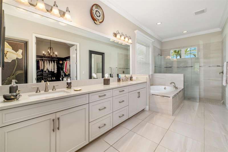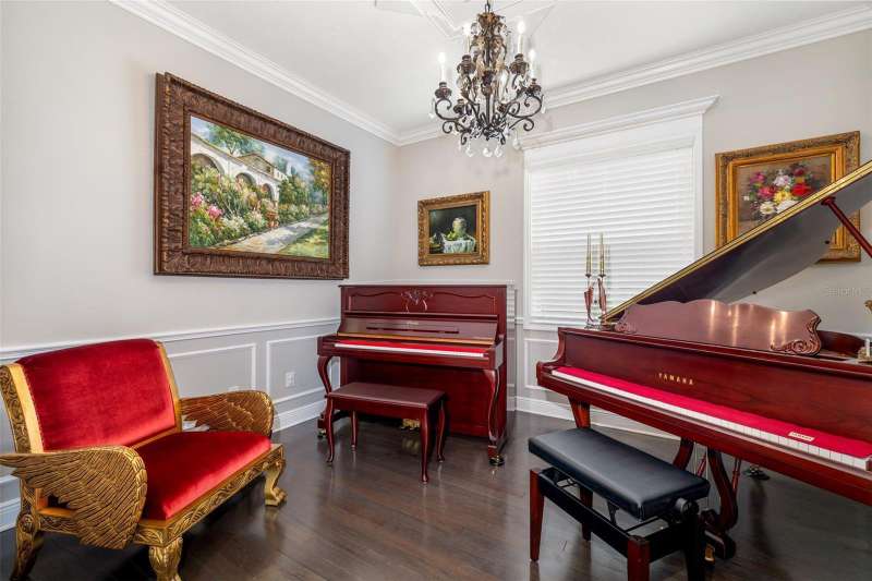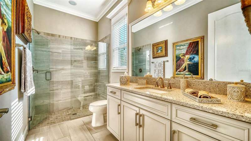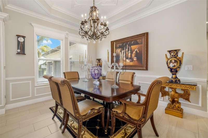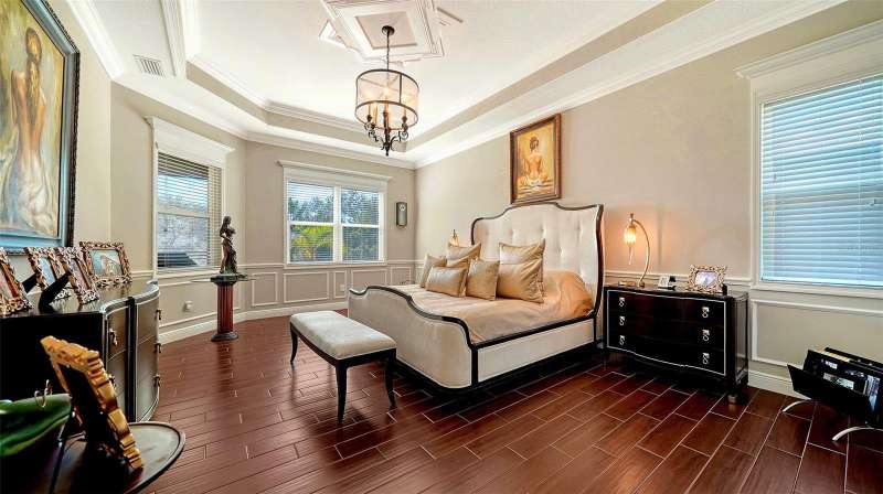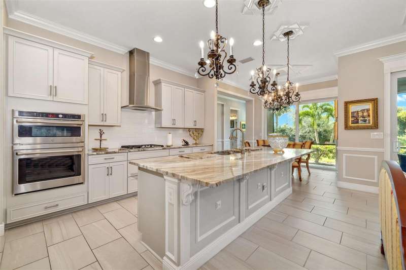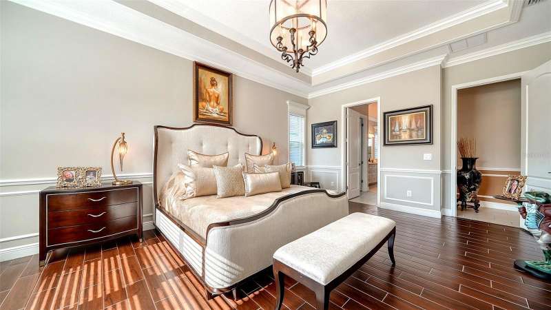Nestled behind the gates of Rivo Lakes, this stunning home exudes timeless elegance with its impressive Tuscan-inspired facade and exquisite stone accents. FRESHLY PAINTED LIVING AREA, BEAUTIFUL LIGHT NEUTRAL COLOR. The meticulously landscaped grounds are adorned with lush tropical foliage, setting the stage for a truly exceptional living experience. Step inside to find a spacious, open floor plan with soaring ceilings and custom millwork throughout. Gorgeous custom Italian inlays grace the floors, adding sophistication to the space. This home offers 4 spacious bedrooms, 4 luxurious bathrooms, a bonus room, den, formal dining room, and a game room—plenty of space for entertaining or family relaxation. The gourmet kitchen is a chef’s dream, featuring custom cabinetry, granite countertops, high-end stainless steel appliances, and a cozy café dining area. A massive granite center island with counter-height seating seamlessly connects to the expansive family room, creating an ideal flow for both casual and formal gatherings. Upstairs, you'll find a private retreat with a large bonus room, bedroom, and bathroom, offering both comfort and versatility. The master suite is a true sanctuary, located on its own wing of the home, complete with a spa-like 5-piece en-suite and a generously sized walk-in closet. Sliding doors lead to the lanai, where you can relax and enjoy tranquil views of the serene pond. Why wait for new construction when you can move right into this better-than-new, custom home today? Whether you're teeing off at a nearby golf course or enjoying cocktails with friends, this home is the perfect setting for every lifestyle. Priced to sell...welcome home!