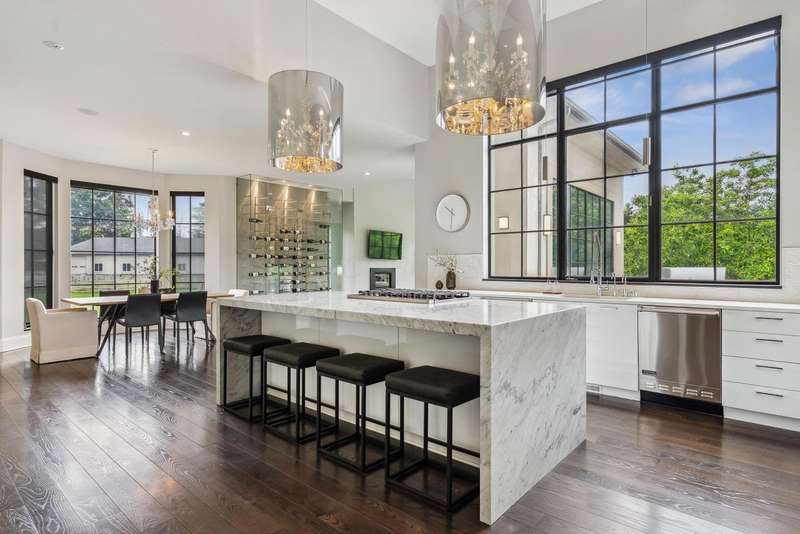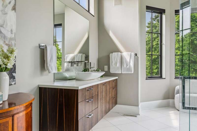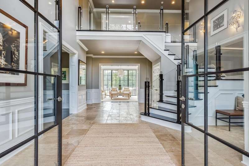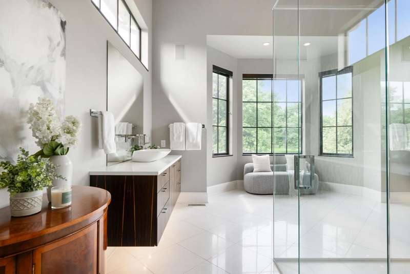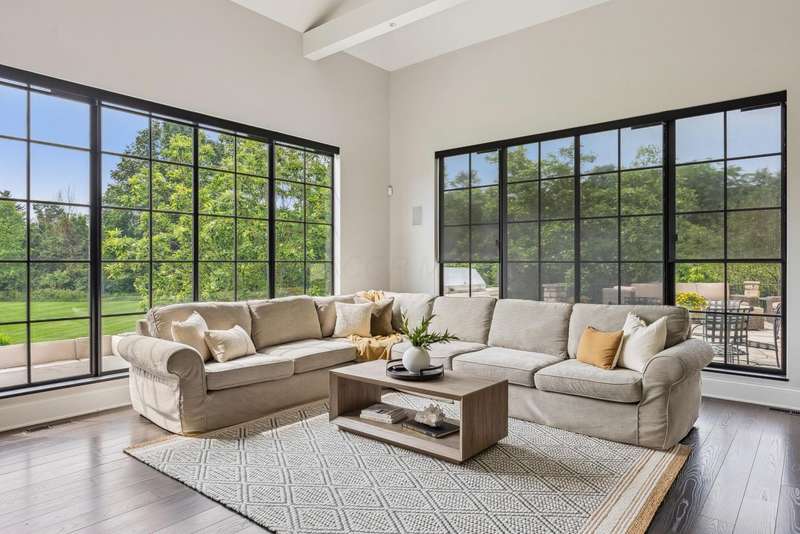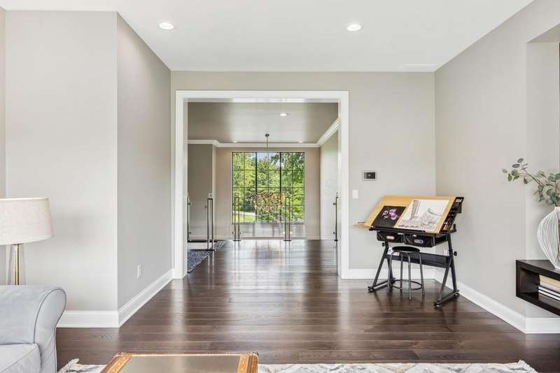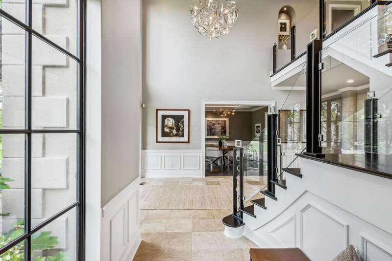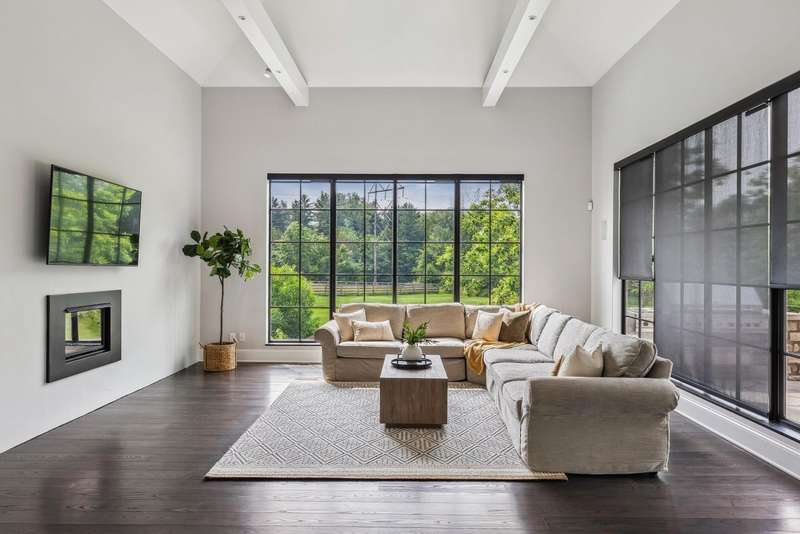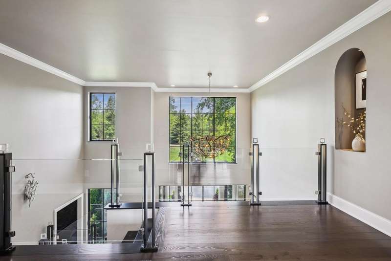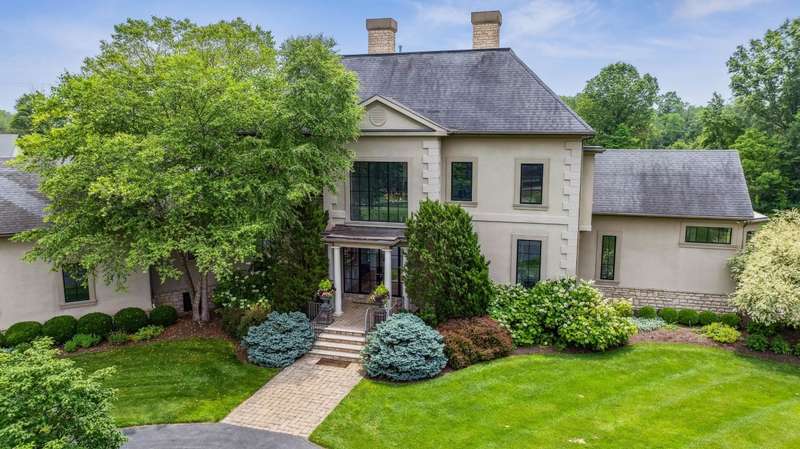 Experience luxurious living in a beautifully updated custom home on 6.1 pristine acres of peaceful countryside which includes a beautiful, stocked pond. With striking Hope's custom steel windows, smart home Control4 integration, and stunning Carlisle ash wood floors, every detail has been thoughtfully curated. Ceilings are exceptionally high and the floorplan is open and flooded with natural sunlight. A main-floor owner's suite offers sweeping views, spa-like bath, and a generous closet while the 2nd level offers 3 family bedroom suites-all large with excellent closets. Enjoy a fully finished lower level with fitness and media rooms plus a full guest suite. The kitchen is a work of Italian craftsmanship with marble, quartz, Viking appliances, a huge island and custom temperature-controlled glass encased wine display. This home was designed for entertaining in style including 3 outdoor spaces that include a large, screened room. Also included are 4 oversized garage spaces, the original 4 horse barn has been casually converted to a party space while maintaining the stalls, hay loft, tack room and wash bay offering exciting potential as a guest house or poolside retreat. And to cap it off, the 80 X 100 radiant heated arena with state-of-the-art footing is ready for your horses but could easily house a fabulous car collection! See A2A remarks.