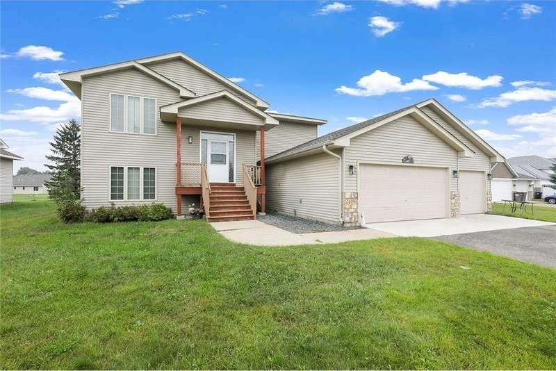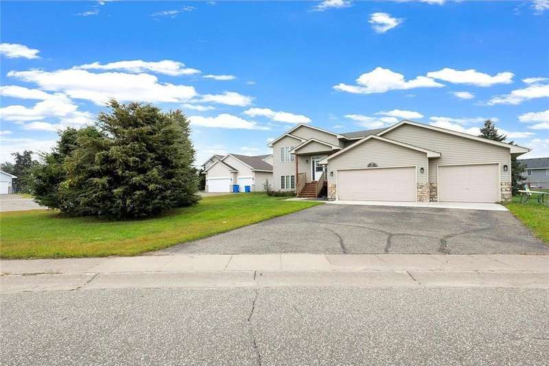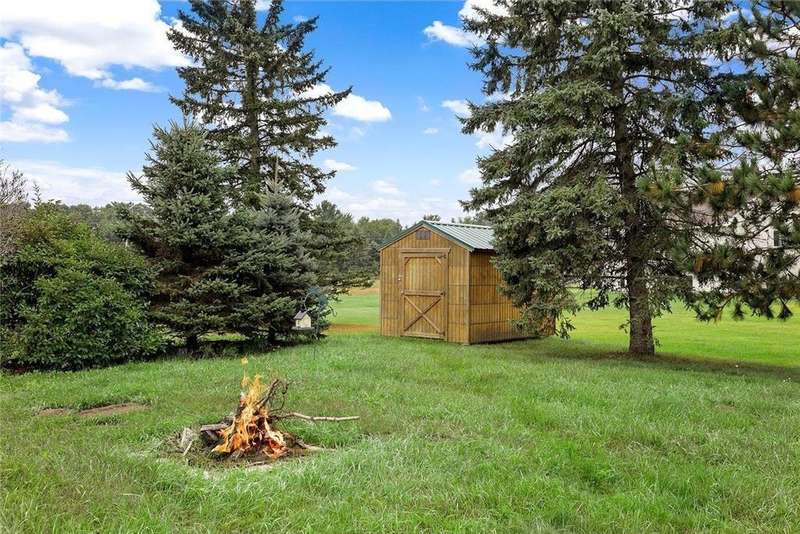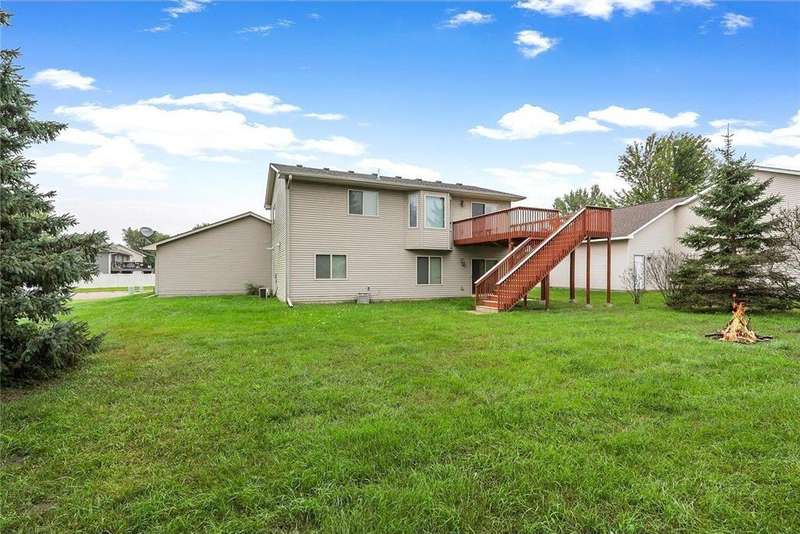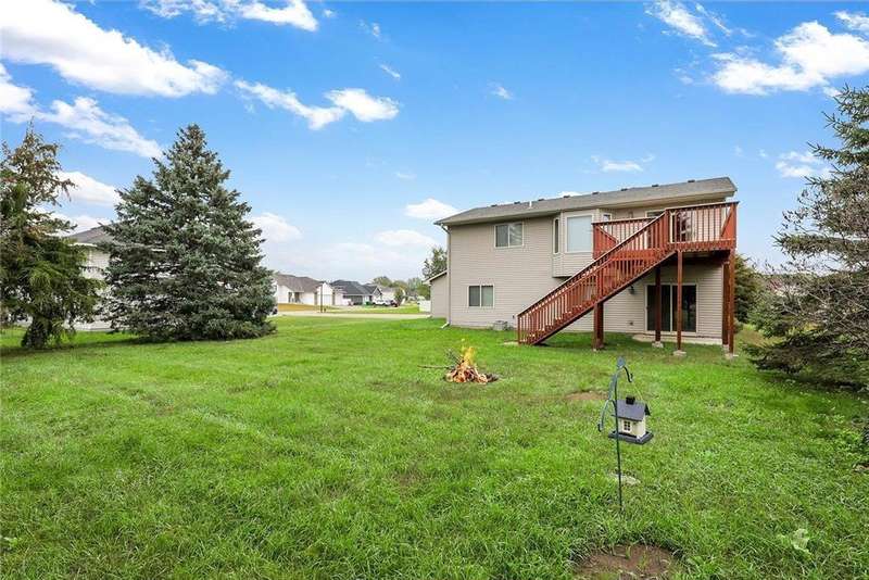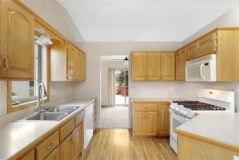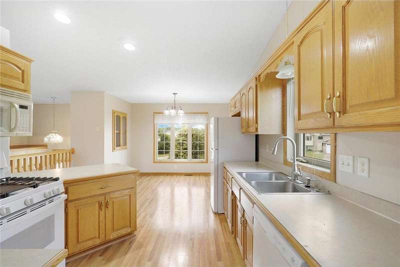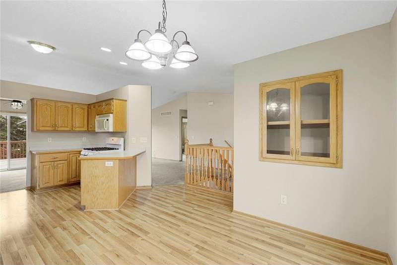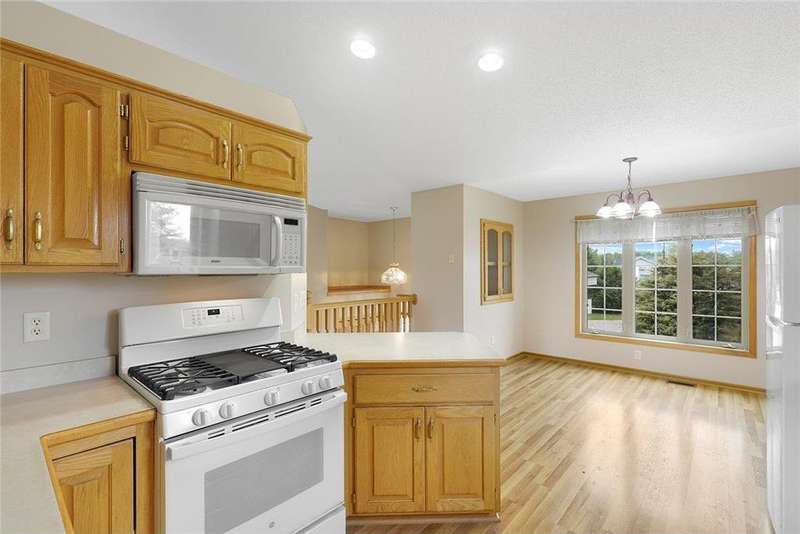 Situated in a quiet neighborhood, this home features versatile living spaces and a layout perfectly suited for both everyday living and entertaining. A large, welcoming foyer takes you into the main living space, where vaulted ceilings and a bay window create a bright and open atmosphere. The main level has been refreshed with updated paint and carpet, complementing the raised panel oak doors and upgraded woodwork found throughout the home. The kitchen features oak cabinetry, luxurious LVP flooring, and a built-in display cabinet in the dining area. With an eat-in kitchen, informal dining room, and breakfast nook, there are plenty of options for gathering and dining. From the dining room, step out onto the spacious deck—an ideal spot for entertaining or enjoying the view of the mature evergreen trees that line the back of the lot. Four bedrooms provide flexibility and space, with two located on the main level and two on the finished lower level. Three bedrooms offer walk-in closets, and the primary bedroom has convenient access to the main bath. The lower level expands the living space with a large family room featuring a striking stone-surround gas fireplace, a ¾ bath, and a walkout to the patio and generously sized backyard. Additional highlights include a backyard storage shed, perfect for garden tools, and an insulated three-car garage offering plenty of room for vehicles and storage. This home has been thoughtfully cared for and is move-in ready—simply settle in and enjoy.