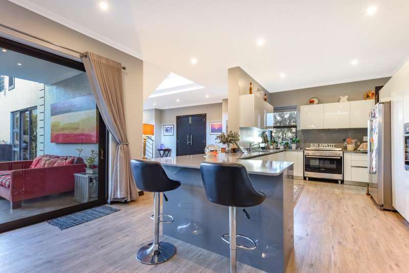 ONE FORREST ESTATE ~ Where Prestige Meets Privacy in this elite living estate. Ultra Exclusive, Impeccably Secure, Unapologetically Refined. A private, tree lined expansive sanctuary where luxury unfolds quietly and nature sets the tone. Wide avenues, serene greenbelts, and top notch security systems, create a lifestyle of peace, freedom, and absolute privacy. This contemporary double-storey home offers effortless, open plan living with an emphasis on light, space, and flow. Property features: 4 Bedrooms, all en suite 3 Bedrooms upstairs, 1 guest suite downstairs Spacious open-plan lounge, dining, and stunning kitchen Seamless indoor-outdoor flow to covered patio, large wooden deck and swimming pool and garden Double garage with direct access High ceilings, clean lines, premium finishes Staff Quarters Scullery and Laundry 3 Garages Storeroom and Gardeners WC Estate highlights: 24-hour security with biometric access Lush, established landscaping and walking paths Boutique collection of architect-designed homes Prime location close to top schools, Sandton CBD, and medical facilities A home for those who value elegance, privacy, and a deep connection to nature. ONE FORREST ESTATE is not just an address, it?ÇÖs a way of luxury and serenity.