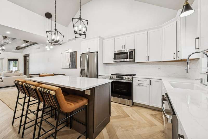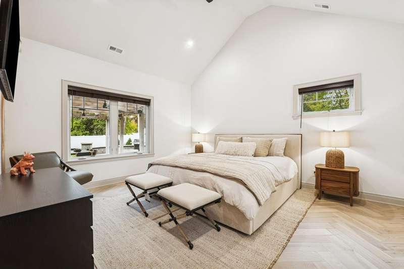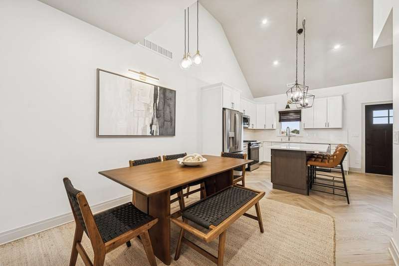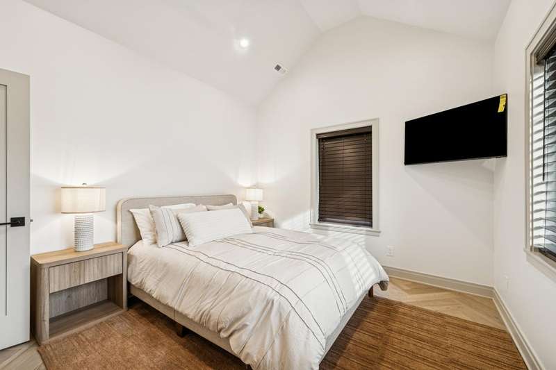 Fully Furnished, New Construction 3BR/2.5BA ranch styled home offering over 1,700 sq ft of luxurious single level living. Every detail in this home showcases superior craftsmanship, from the hand-cut white oak chevron flooring to the designer lighting and high-end fixtures. The open concept interior features spacious living rm with vaulted/beamed ceiling and stone FP. Entertain in the gourmet kitchen w/quartz countertops, ss appl and island that seats four. All bathrooms feature specialty tile, custom vanities and upscale hardware. Step outside to relax in professionally landscaped courtyard w/lush green space, built-in fire pit and large covered patio. The charming covered front porch, 2+ car attached garage and custom paved driveway completes this beautifully finished, turnkey home.