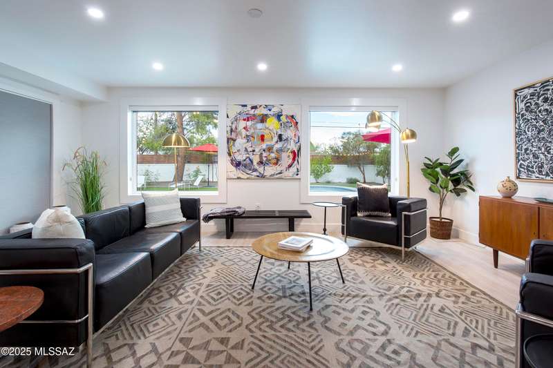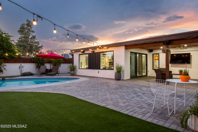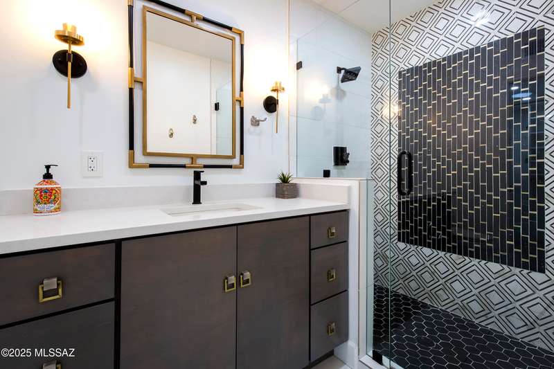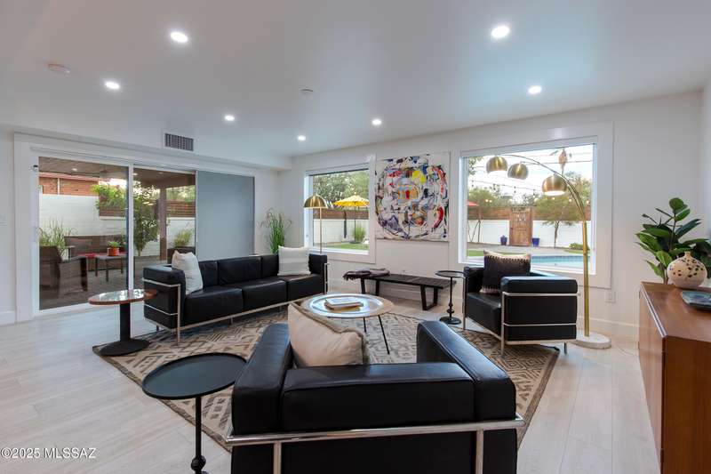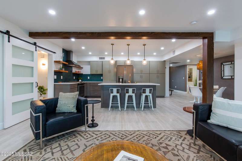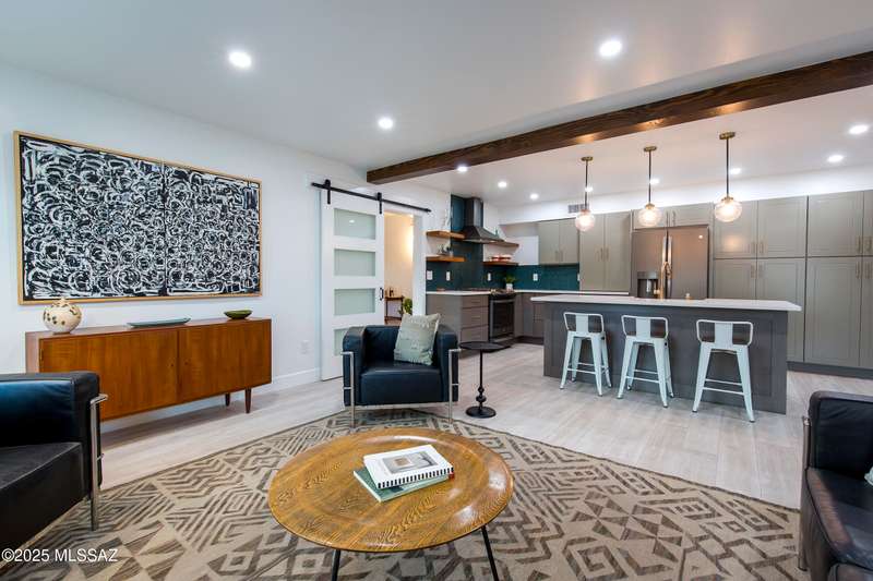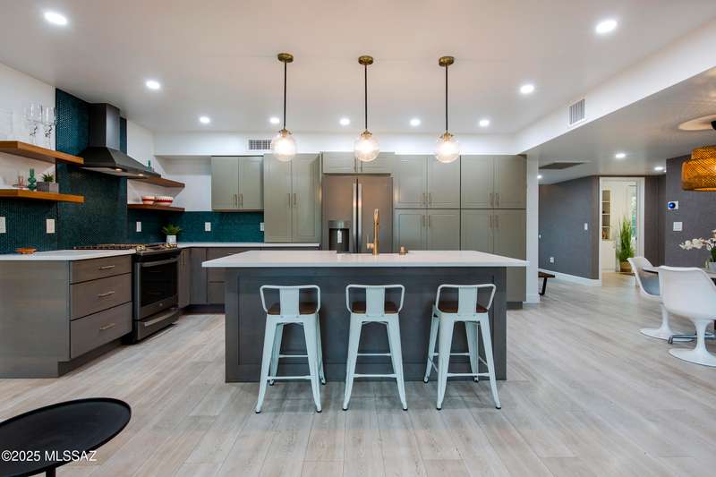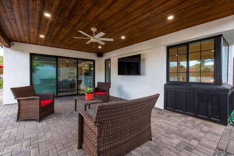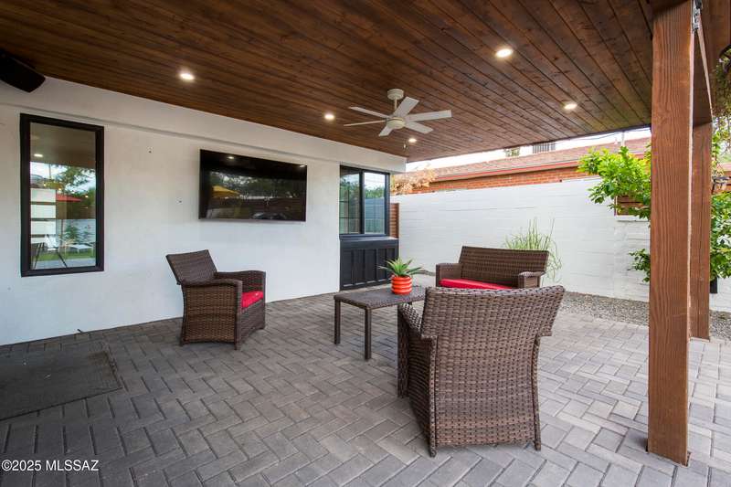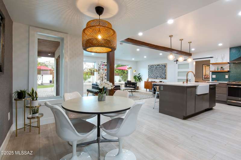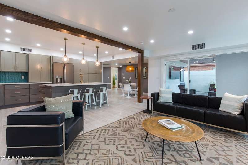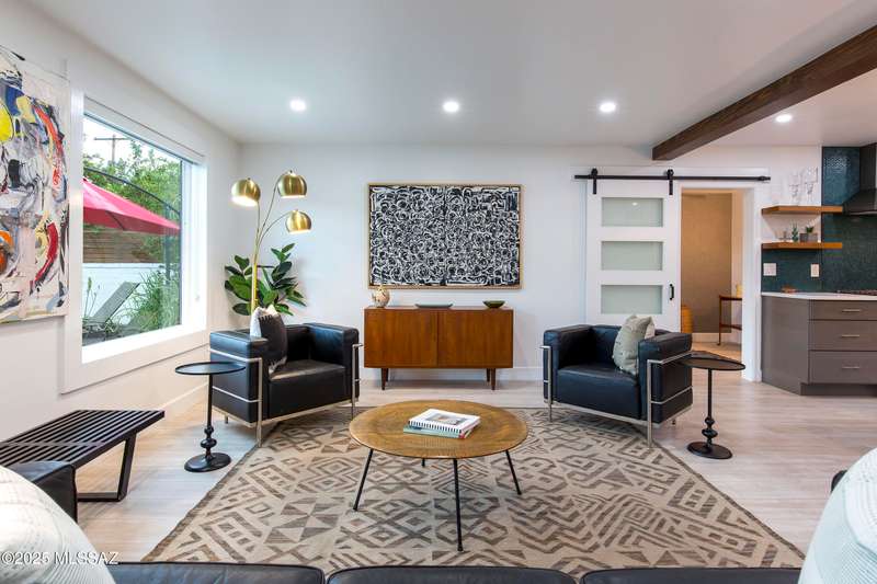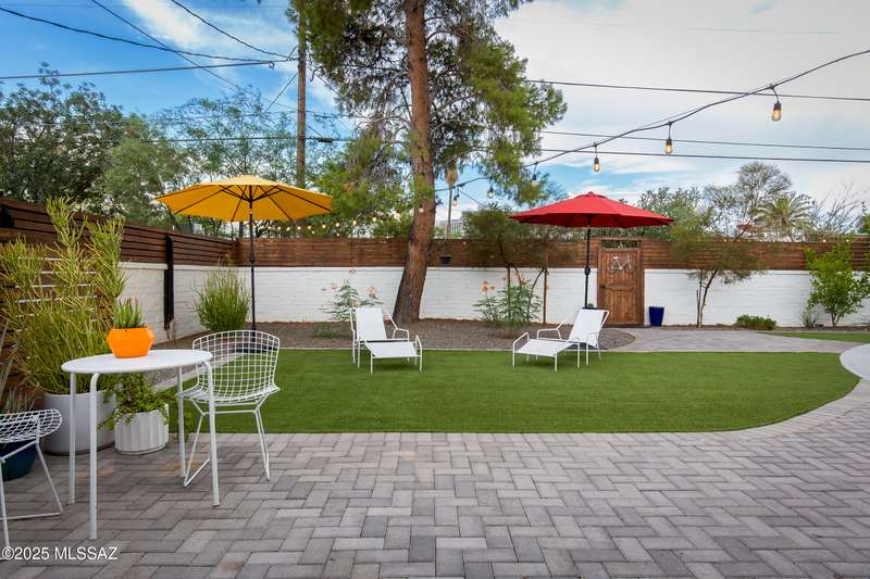 Stylish & Updated 3BR/2BA + Den with Designer Touches & Resort-Like YardThis tastefully renovated 3-bedroom, 2-bath home with a den combines smart upgrades with high-impact style. Inside, the open-concept layout centers around a stunning island kitchen with quartz countertops, GE Profile slate appliances, a farmhouse sink, and designer lighting. Brass fixtures, penny tile, and custom finishes throughout bring a boutique feel to everyday living.Renovated in 2021, major system updates include new dual-pane windows, PEX plumbing (including line to the street), 200-amp electric, tankless water heater, new HVAC, and a new roof.The backyard is a showstopper--artfully hardscaped with pavers and artificial turf, accented by mature vegetation and a full drip system. The