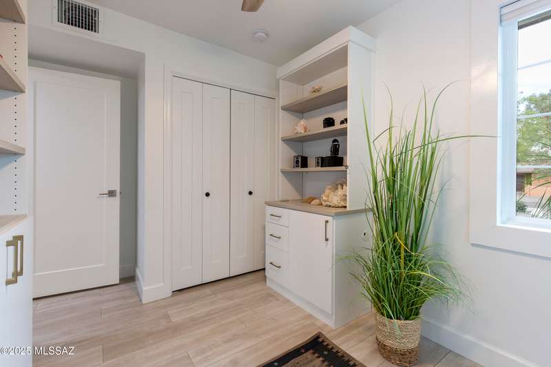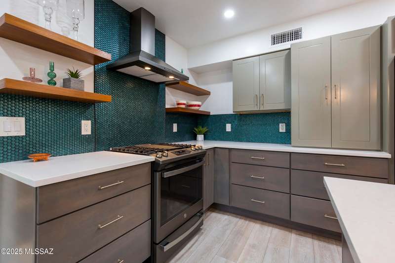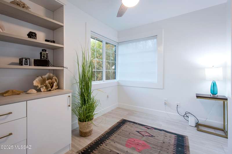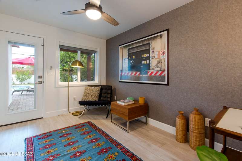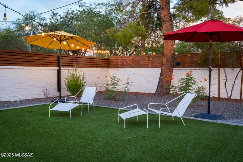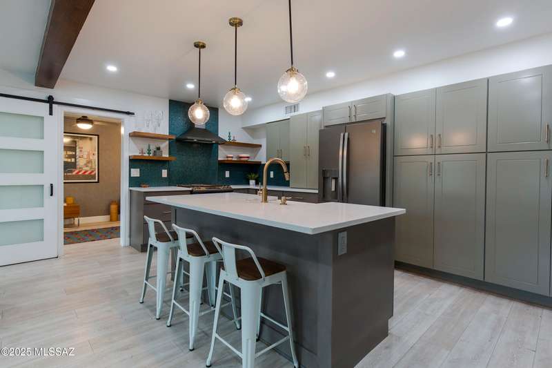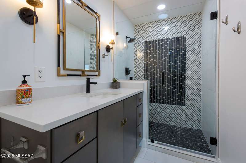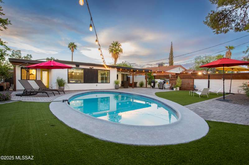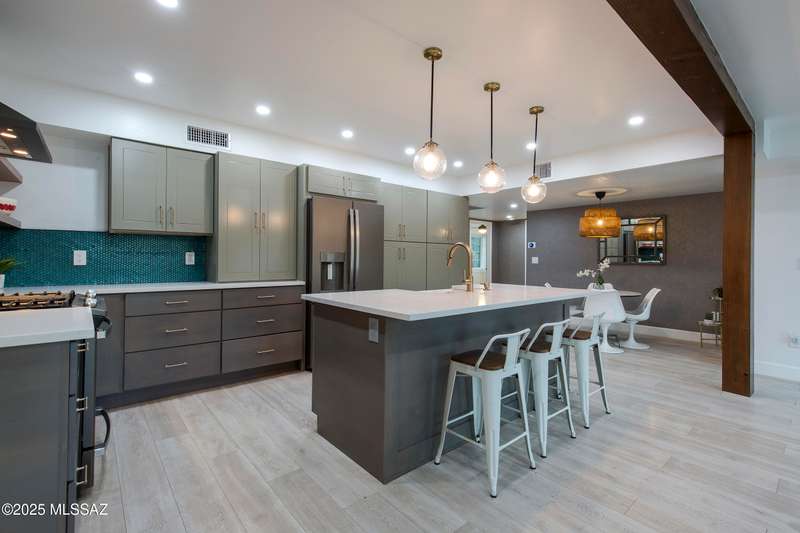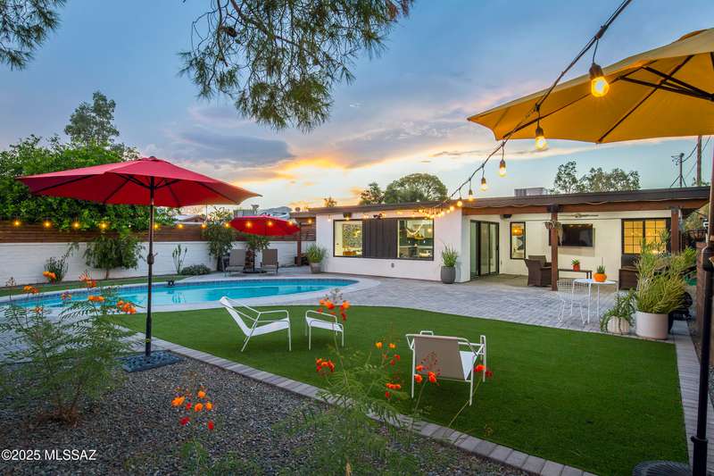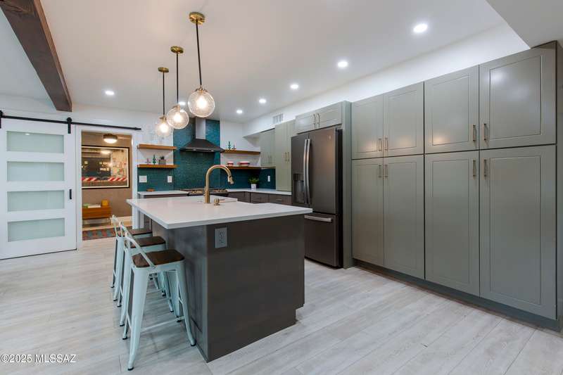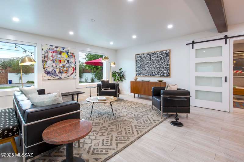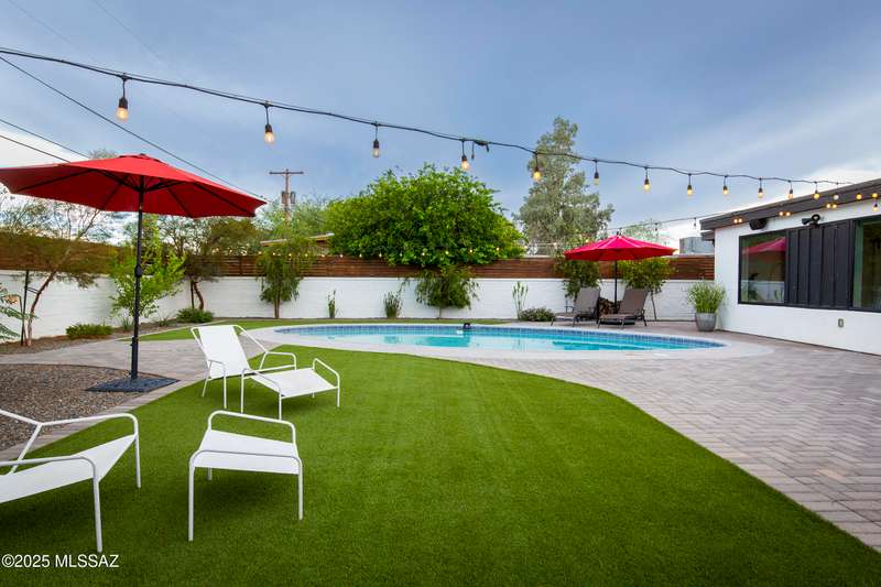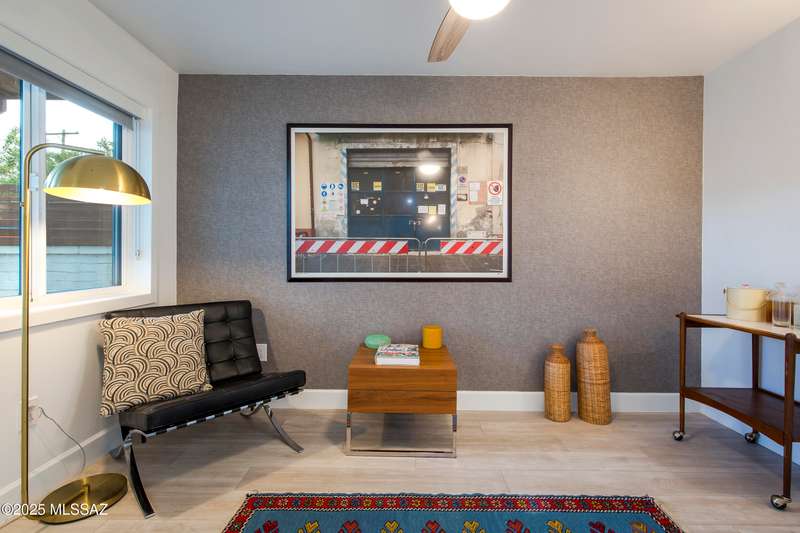 Stylish & Updated 3BR/2BA + Den with Designer Touches & Resort-Like YardThis tastefully renovated 3-bedroom, 2-bath home with a den combines smart upgrades with high-impact style. Inside, the open-concept layout centers around a stunning island kitchen with quartz countertops, GE Profile slate appliances, a farmhouse sink, and designer lighting. Brass fixtures, penny tile, and custom finishes throughout bring a boutique feel to everyday living.Renovated in 2021, major system updates include new dual-pane windows, PEX plumbing (including line to the street), 200-amp electric, tankless water heater, new HVAC, and a new roof.The backyard is a showstopper--artfully hardscaped with pavers and artificial turf, accented by mature vegetation and a full drip system. The