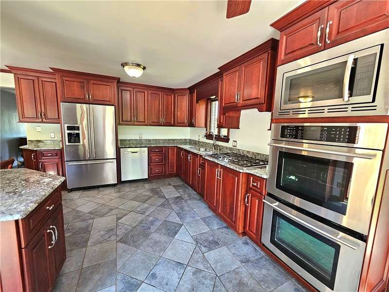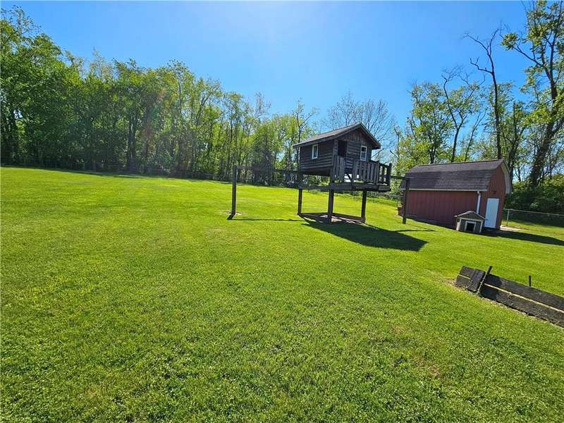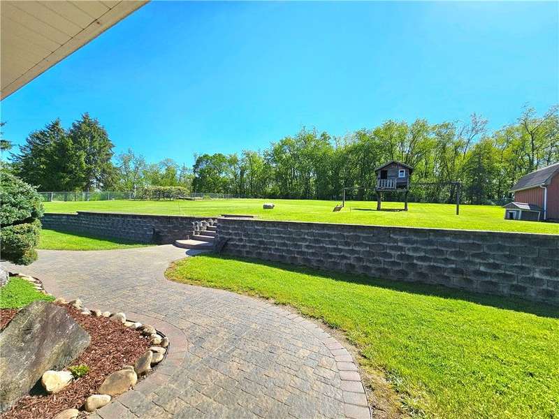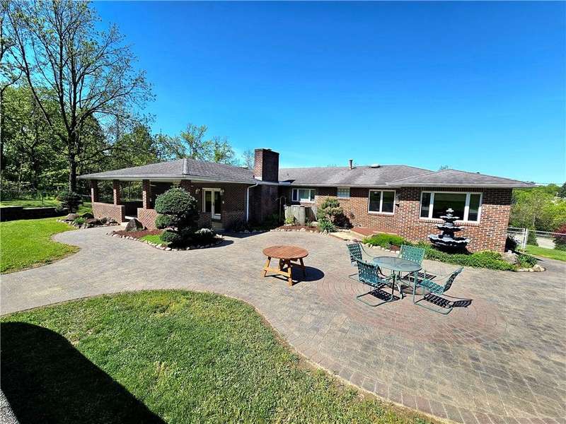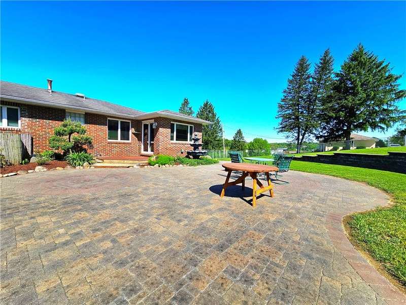 Dream home! Spacious 4 BR BRICK ranch w/3 full baths+office on 1.5 acres. Beautiful landscaping-pond w/waterfall & covered?BRICK porch w/storage under! Brick pathway, low maintenance landscaping?w/large fountain, stone patio & HUGE porch & FENCED yard-? acre.?XL shed, playhouse, space for XL garden --your own private retreat! INSIDE is even better! Main floor boasts-2400 sq ft living space! Hardwood?oak floors,?XL LR, fireplace & french doors to covered porch. DR w/bay window,?laundry, large MB, many closets+large en?suite w/jacuzzi tub, shower, linen?closet & 2 vanities+3 more BRs & office (5th BR). Updated kitchen w/stainless?stove top/double oven/microwave/dishwasher/refrigerator, GRANITE counters encased in beautiful CUSTOM?cherry cabinets. Also matching CUSTOM pantry/moveable island/coffee bar w/storage/table & chairs! HUGE windows face backyard. LL?has full bath & new flooring-1000+ sq ft for rec! Single car+COMMERCIAL garage-1200 sq ft-for cars or XL workshop! CONCRETE driveway!
