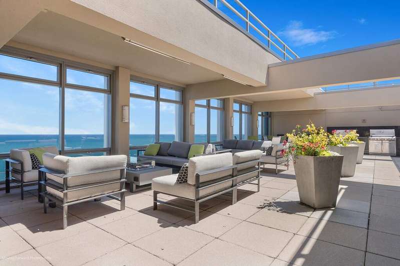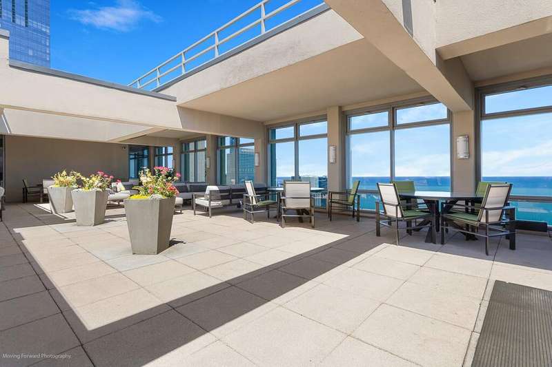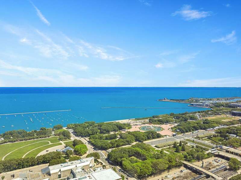 A Home in the Sky! This 1000 square foot condo is located on the 42nd floor of a luxurious building with sweeping views of Chicago! West and north views present a panorama of Chicago architecture, and is fabulous with nighttime vistas of lights and stars. This one bedroom, one bath unit has such a very spacious feel with its 10 foot ceilings and the floor to ceiling windows with the views of the city laid out beneath you. Wood floors through out, and the granite counter tops in the kitchen and marble top in the bathroom, bring a rich look to your new home. A meal bar at one of the kitchen entrances, provides a great spot for breakfast, or a convivial place for guests to gather and chat with hosts preparing refreshments. The primary bedroom boasts two closets with customized shelving and hanging space. Great natural light brightens all of the spaces including the bedroom with its cut away upper walls. Freshly painted, refrigerator new in 2024, new Kraus kitchen faucet, and marble newly polished add to the inviting atmosphere. The building, itself, has a host of amenities that gives living here a variety of options for entertaining and just relaxing: an exercise room; indoor pool with an outside deck for soaking up the sun & warmth during the summer; hot tub; a terrace with large grills, gardens, including an herb garden to enhance you culinary delights; heaters and fireplaces; an event space with stunning lake views; an immense outdoor covered deck; 24 hour door person security; on-site management; and even an indoor "dog walking" facility! Millennium Park, the Art Institute, Symphony Hall are across the street, and so much more is a very short walk away. Parking as available from other owners as a rental or purchase, or the public garage portion. All this and a very healthy HOA Reserve. Allow 24 hour advance notice for showings whenever possible, please.