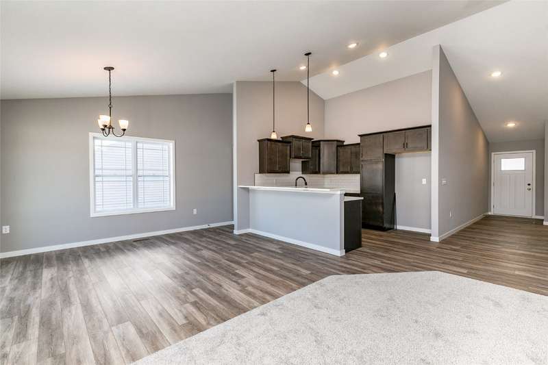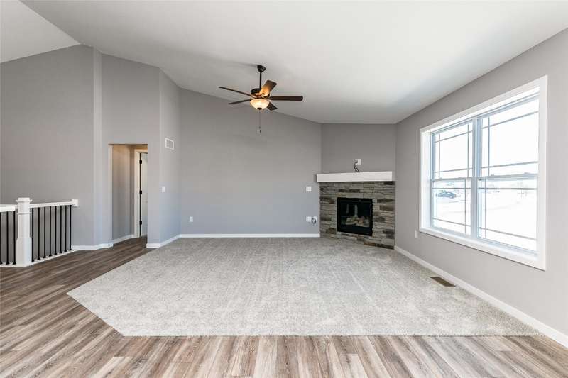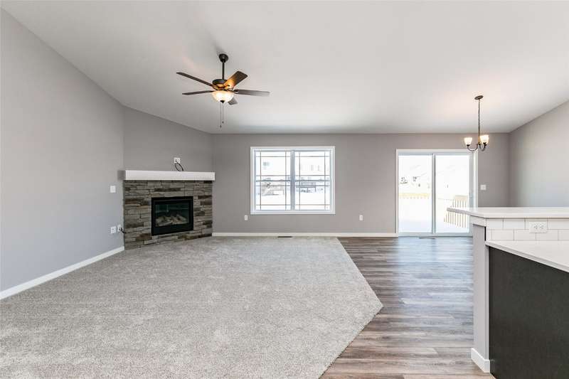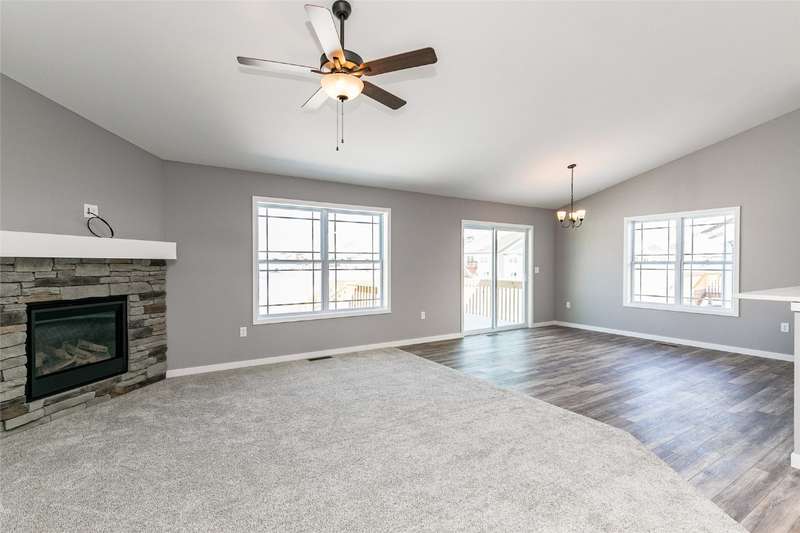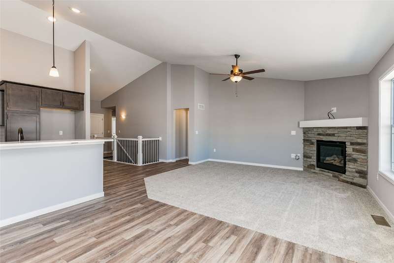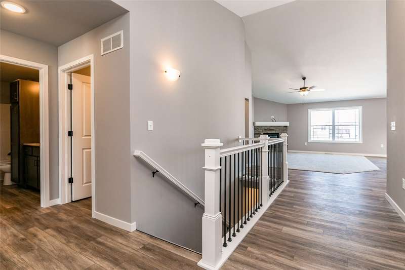 This is Abode Construction's Somerset plan featuring a split bedroom plan, with a primary bedroom suite that includes a bath with double vanity and a walk-in closet; 2 additional bedrooms; main floor laundry room; another full bathroom; and an open great room/kitchen/dining space. The kitchen offers an island with breakfast bar and a dining area that opens to the back deck. Additional featured selections for this home include 2-stall garage and gas fireplace with stone wall and floating mantle. This building has a passive radon system installed. The lower level could be finished to include a full bath, an additional bedroom, and spacious family room, while still leaving plenty of unfinished storage space. Majority of construction completed in 2023.