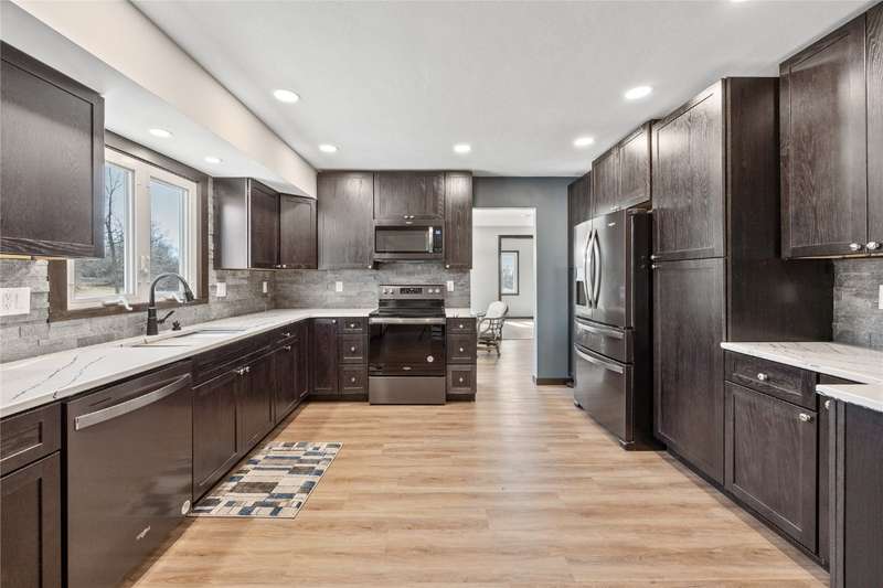 Welcome to your dream acreage—14.78 acres just 6 miles from Marion on hard surface roads! This property offers great hunting grounds, with a trail system, or the perfect spot for your dream home, barndominium, or shouse. It could even be developed, with the two parcels allowing for a private driveway. Fully renovated inside and out, the property features a brand-new kitchen with hard surface countertops, new appliances, a tile backsplash, under-cabinet lighting, and fresh flooring. The main living area boasts a double-sided limestone gas fireplace and updated hard surface floors. The primary bedroom includes an updated bathroom and walk-in closet, while the guest rooms feature an updated bath and two spacious bedrooms with large closets. Outside, updates include new roof, siding, gutters, downspouts, windows, landscaping, and a retaining wall. The property also includes a two-car attached garage and a two- car detached 24x26 garage. A geothermal system ensures low utility costs, and the new Grant Wood trail is now paved from Creekside Rd. to Marion. Some photos are virtually staged.