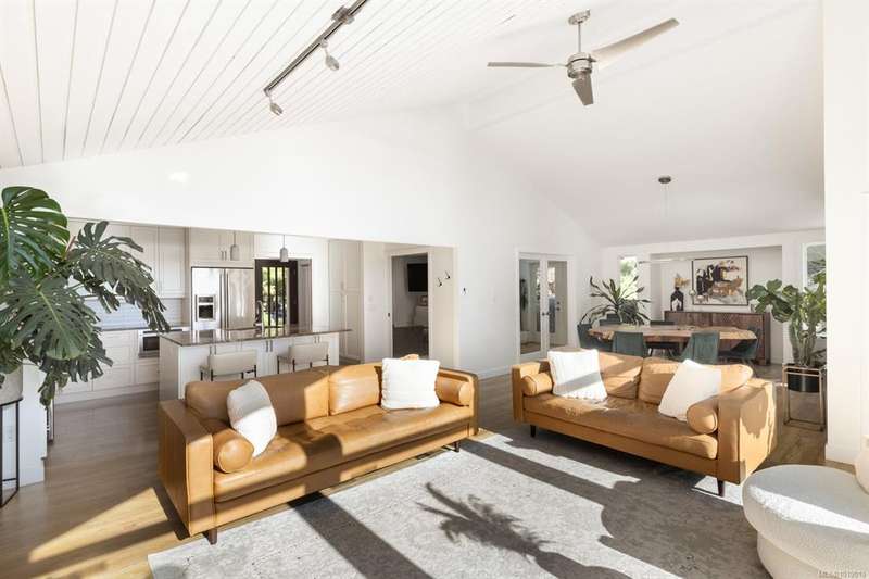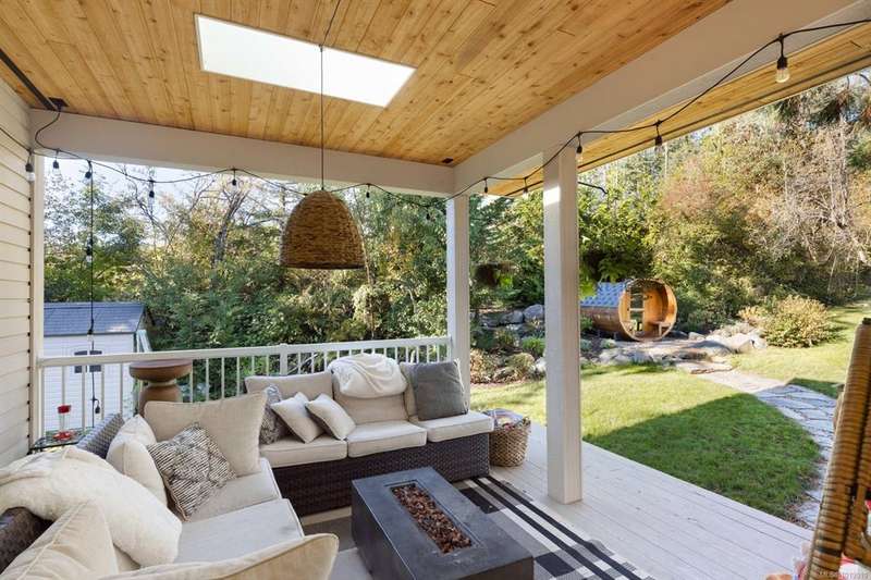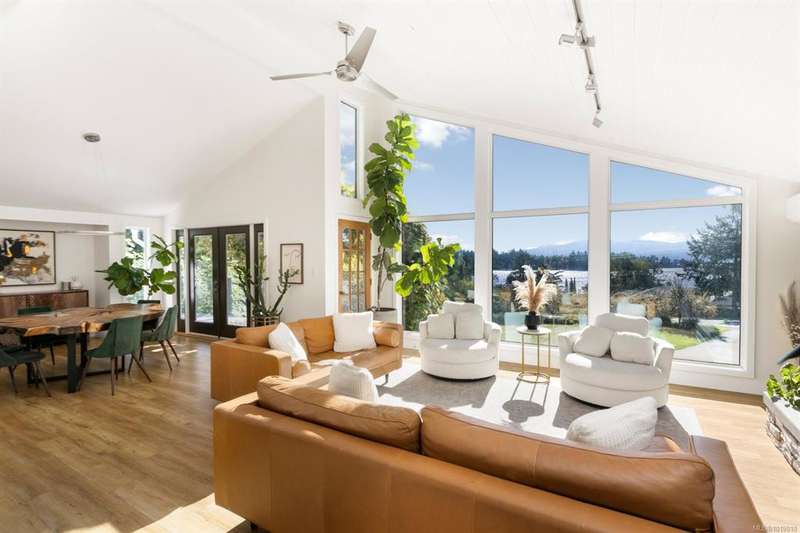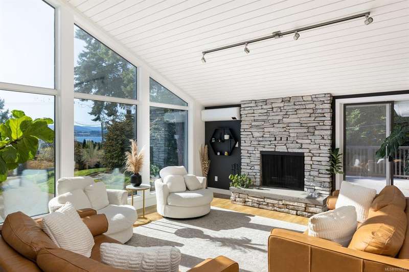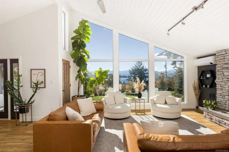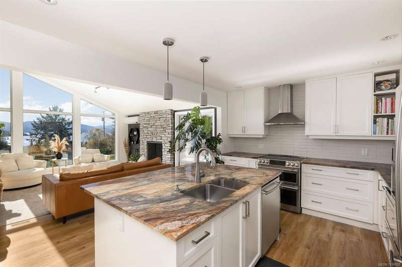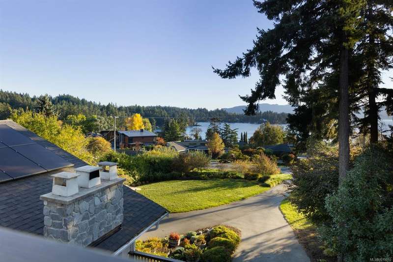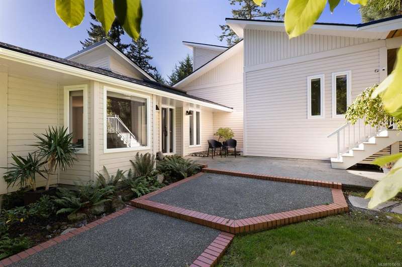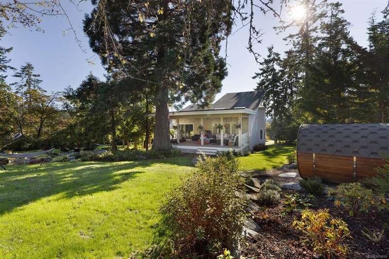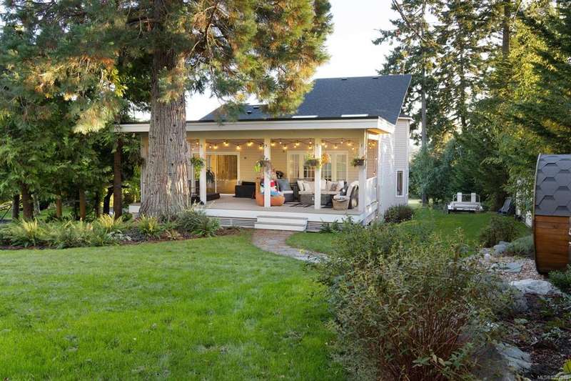 Stunning West Coast family home with breathtaking west-facing ocean views and an outdoor setting reminiscent of Butchart Gardens. Set on 1.05 acres in one of the Peninsula’s most desirable areas, this 4,266 sq ft 5 bed/3 bath residence was tastefully renovated by Lida Homes. The bright, open-concept main level features 13-ft vaulted ceilings, a gourmet kitchen with JennAir appliances and quartz counters, and French doors to an expansive sundeck with frameless glass railings. The yard is a true highlight—lush, meticulously landscaped gardens, ponds, and vibrant blooms that captivate every visitor. Outdoor living includes a new sauna, hot tub, and vegetable beds across a sun-soaked south-facing backyard. Solar power, a heat pump, and A/C ensure year-round efficiency. Steps to Deep Cove Winery, Chalet Restaurant, beaches, and trails.
