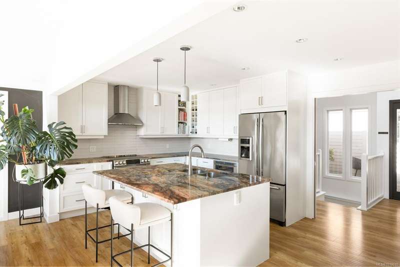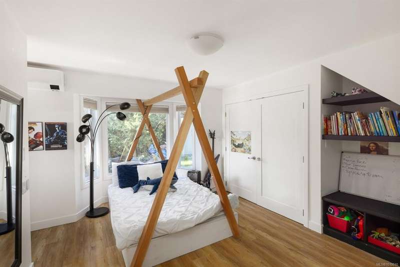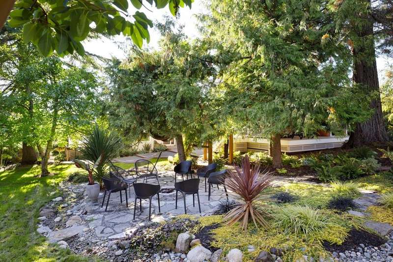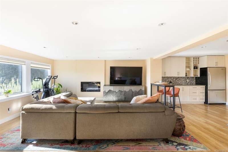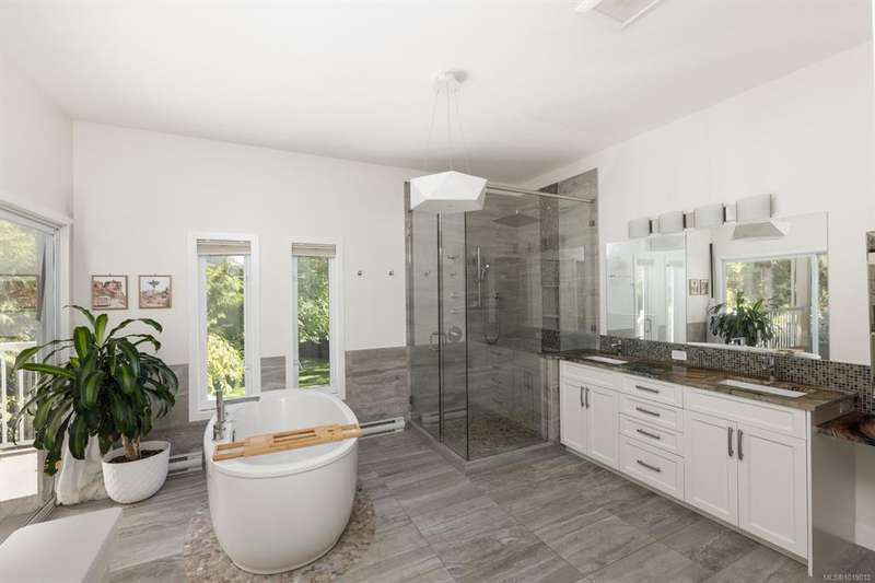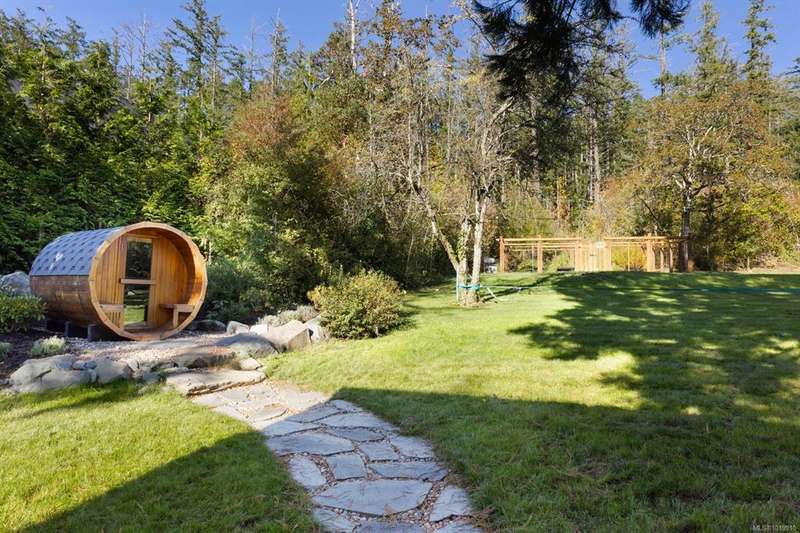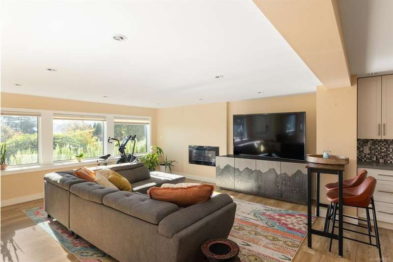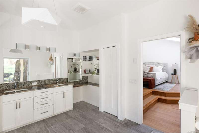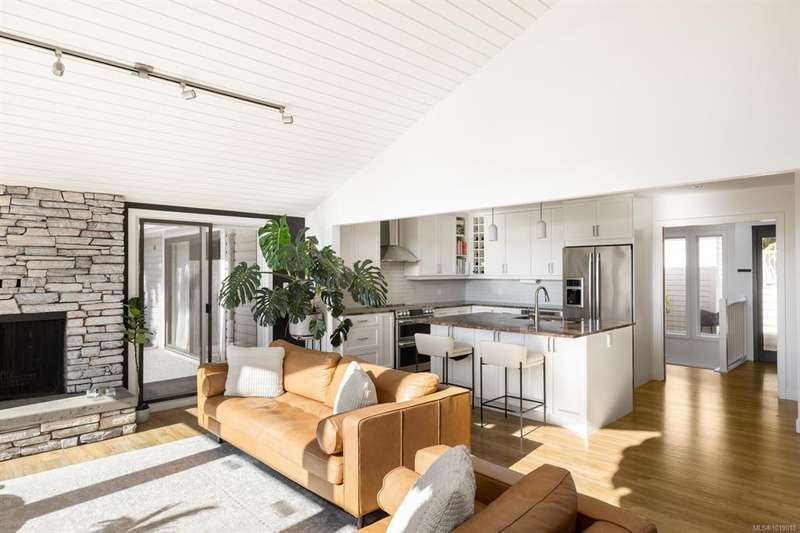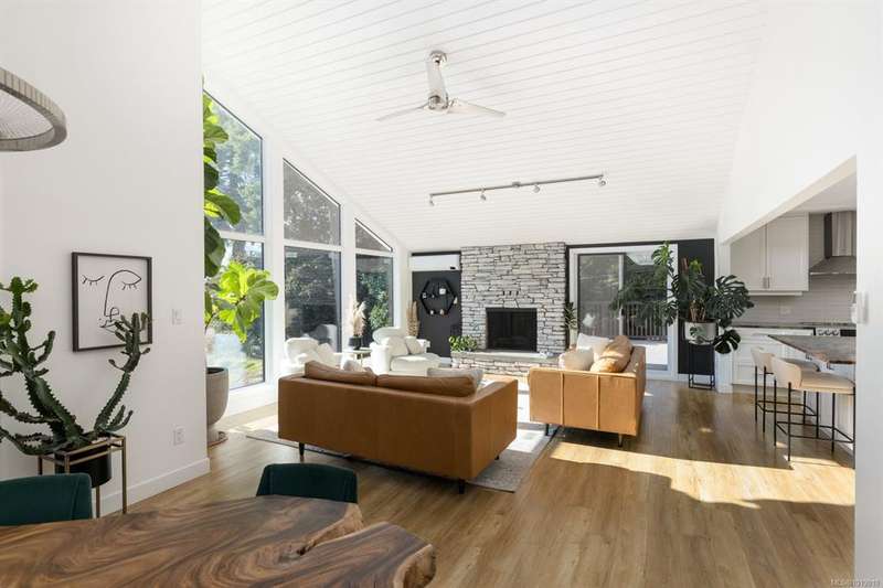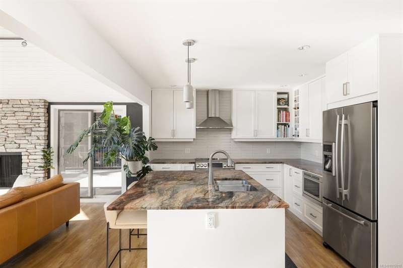 Stunning West Coast family home with breathtaking west-facing ocean views and an outdoor setting reminiscent of Butchart Gardens. Set on 1.05 acres in one of the Peninsula’s most desirable areas, this 4,266 sq ft 5 bed/3 bath residence was tastefully renovated by Lida Homes. The bright, open-concept main level features 13-ft vaulted ceilings, a gourmet kitchen with JennAir appliances and quartz counters, and French doors to an expansive sundeck with frameless glass railings. The yard is a true highlight—lush, meticulously landscaped gardens, ponds, and vibrant blooms that captivate every visitor. Outdoor living includes a new sauna, hot tub, and vegetable beds across a sun-soaked south-facing backyard. Solar power, a heat pump, and A/C ensure year-round efficiency. Steps to Deep Cove Winery, Chalet Restaurant, beaches, and trails.