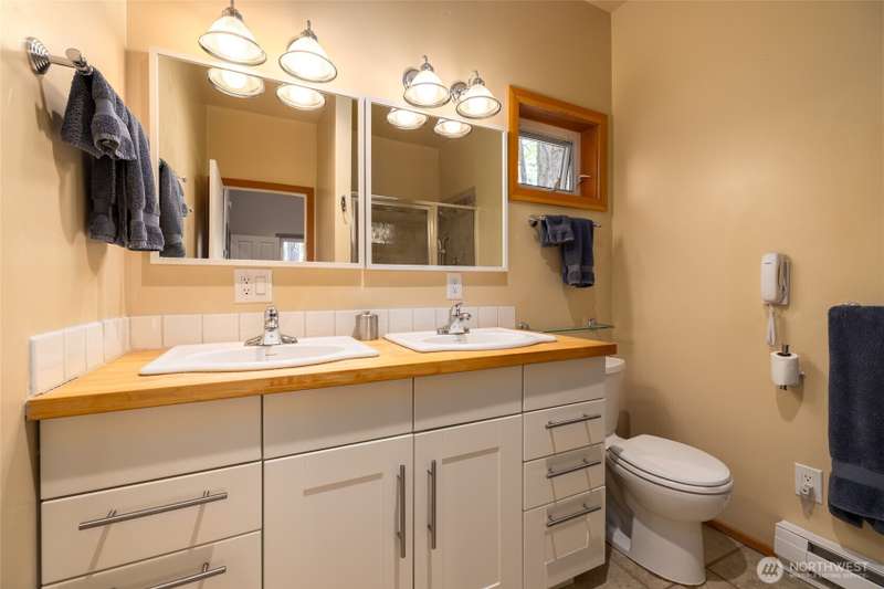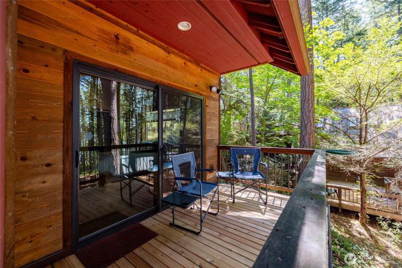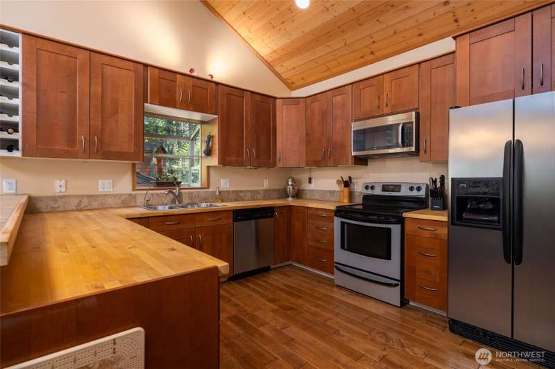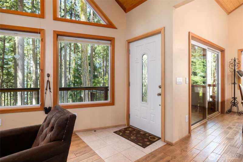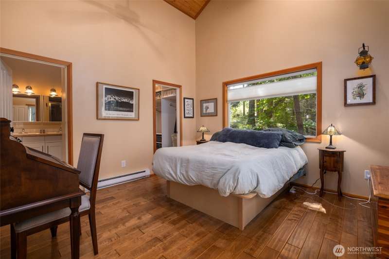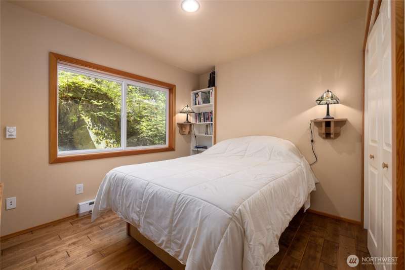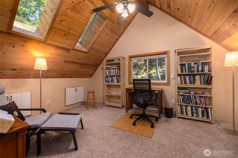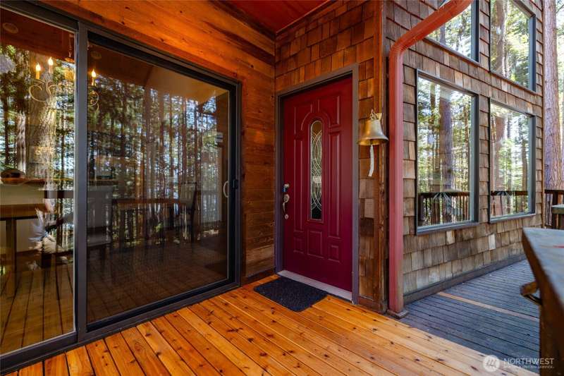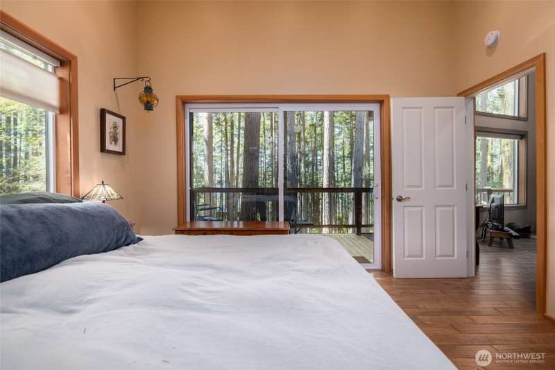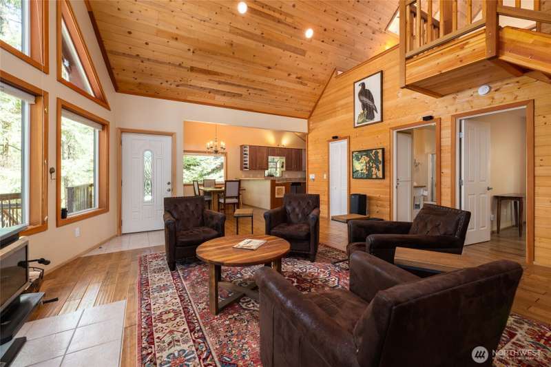 Move-in ready! Beautiful custom home, nestled on a quiet cul-de-sac at the south end of Center Island. Sparkling water views through the trees and an open floorplan that's ideal for entertaining and sharing with friends. The house has hardwood floors, a cathedral ceiling, central woodstove, ductless heat pump and large windows capturing the territorial views. Featuring two generous main floor bedrooms, a loft, 1 3/4 baths, and a kitchen with abundant cabinets and an amazing workspace. Separate cordwood building, once a writer's studio, could make a fun bunkhouse. This home is your perfect island getaway! Enjoy the perks of two community docks, a caretaker, a private airstrip, beach access, and even a golf cart! Turn-Key