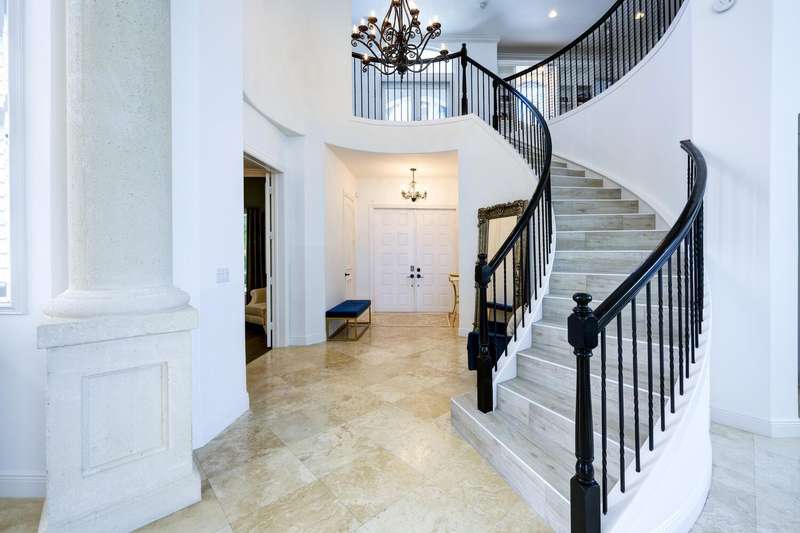 Live luxuriously on the 16th green of the Arnold Palmer Signature Course in the prestigious Frenchman's Reserve, a flagship Gold Community. This elegant 4-bedroom plus a den/office, 5.1-bath estate offers 4,465 sq ft of refined living space with dramatic 21-foot ceilings and abundant natural light throughout. Built by Toll Brothers, this home features a thoughtfully designed layout with a first-floor guest suite offering private terrace access, a spacious den/office, and a grand primary suite with dual bathrooms and sitting area. Upstairs, you'll find a versatile loft and two additional guest bedrooms; each with ensuite baths, creating the perfect setup for privacy and comfort. The second floor also offers an oversized loft area perfect for/ optional fifth bedroom.