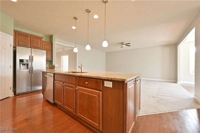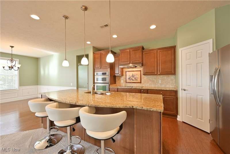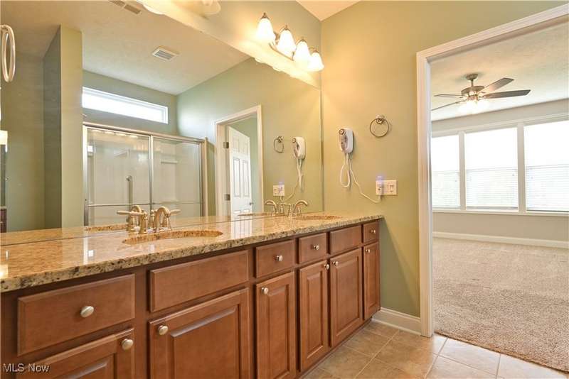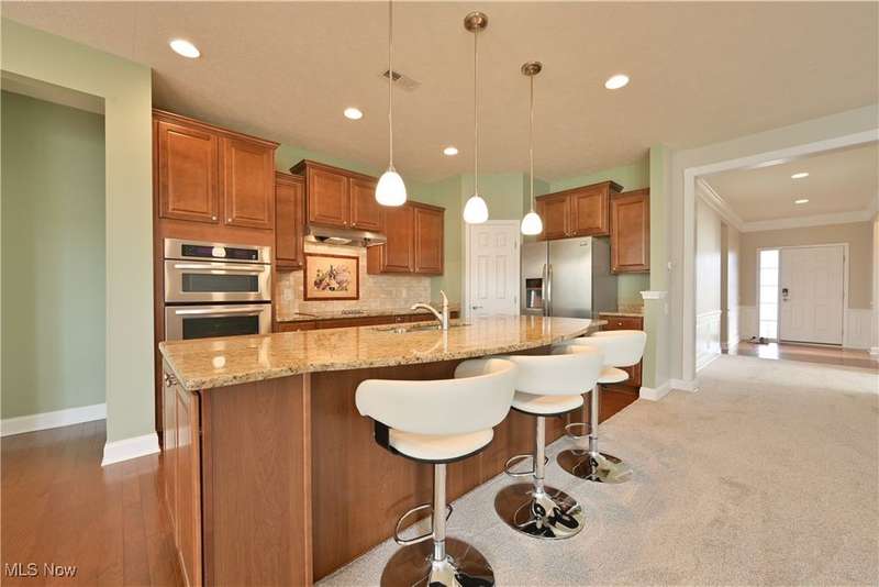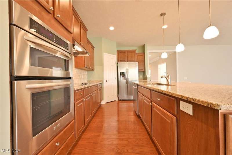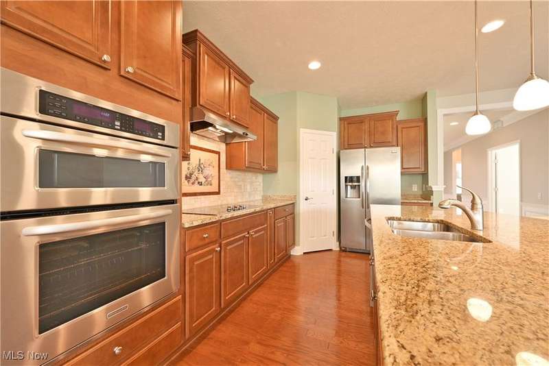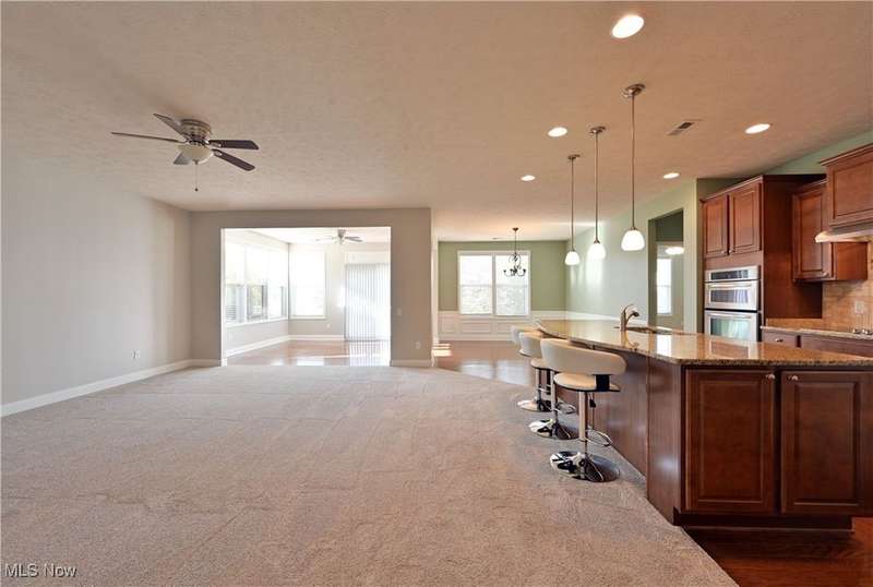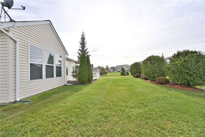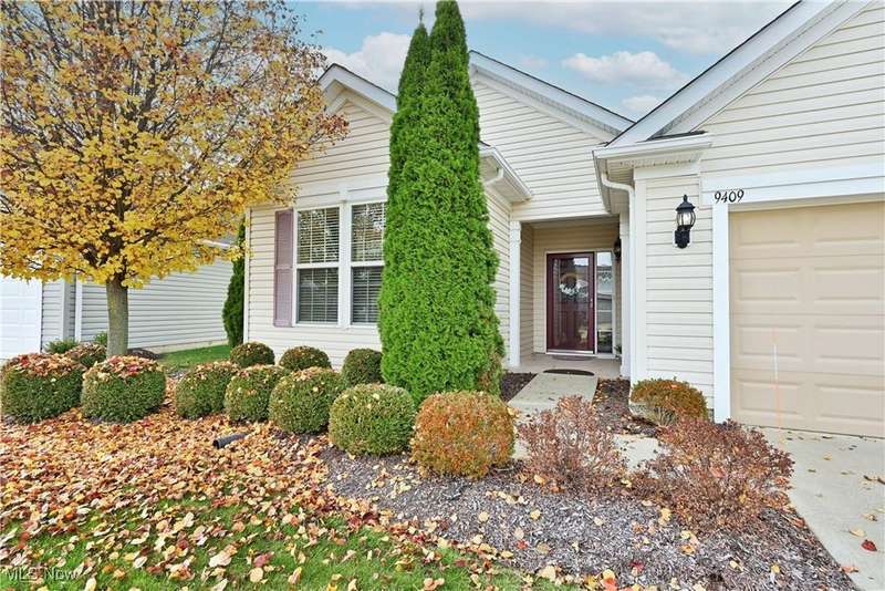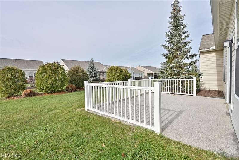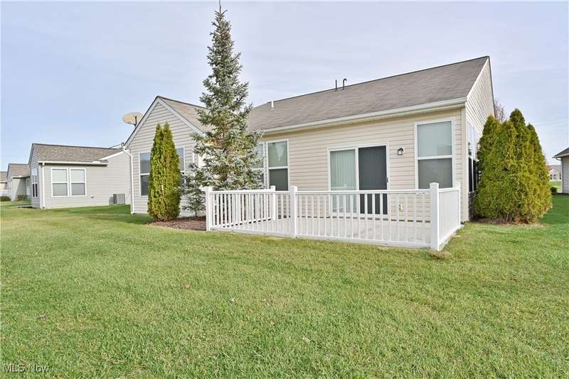 Calling all car collectors. Don't miss this rare opportunity for a three-car garage in Pioneer Ridge. This Dearborn Model has an open floor plan with a large great room, sunroom, dining room, two bedrooms, two full bathrooms, and an office. The gourmet kitchen features granite counters, a large center island that also serves as a breakfast bar, electric cook top, double ovens, tile backsplash, and a large pantry. Both baths have granite countertops, master bath has a nice walk-in shower and a large walk-in closet. Laundry room includes washer and dryer, utility sink, and cabinets for extra storage. Entire interior of the home is freshly painted. Relax on the large patio finished with Nature Stone overlooking lots of green space. Pioneer Ridge is NE Ohio's premier 55+ community featuring indoor and outdoor pools, exercise facility, Bocce Ball courts, Pickleball courts, and much more. Our full-time activities director plans many social and educational events to fill your day. Join the wine club, bourbon club, play one of our many card games, or just enjoy the camaraderie of your neighbors in our 14,000 square foot community center. Call today for your private showing.