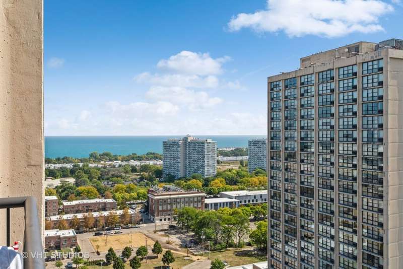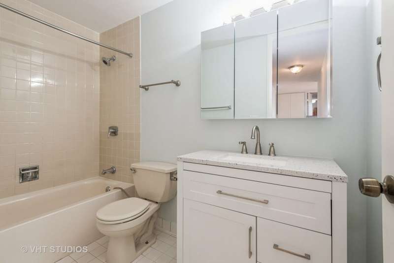 Great views from this spacious 2 bedroom 2 bath condo. Unit features: eat-in kitchen and 2 balconies, both with beautiful views, one balcony has views of the lake. You will be able to view the sunrise and sunset. Unit was remodeled 3 years ago. Guest bathroom has a new vanity, new mirror and new lights. The Stratford building is a hidden gem-- well run, great location, and amenities; which include, 24-hour door person, outdoor pool, fitness center, and garage parking. Close to downtown, public transportation, and all Chicago's major highways. This is an Estate Sale.