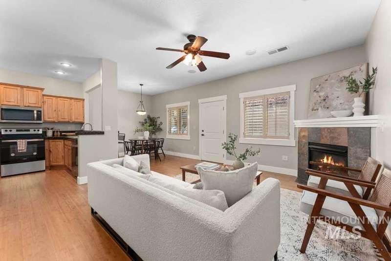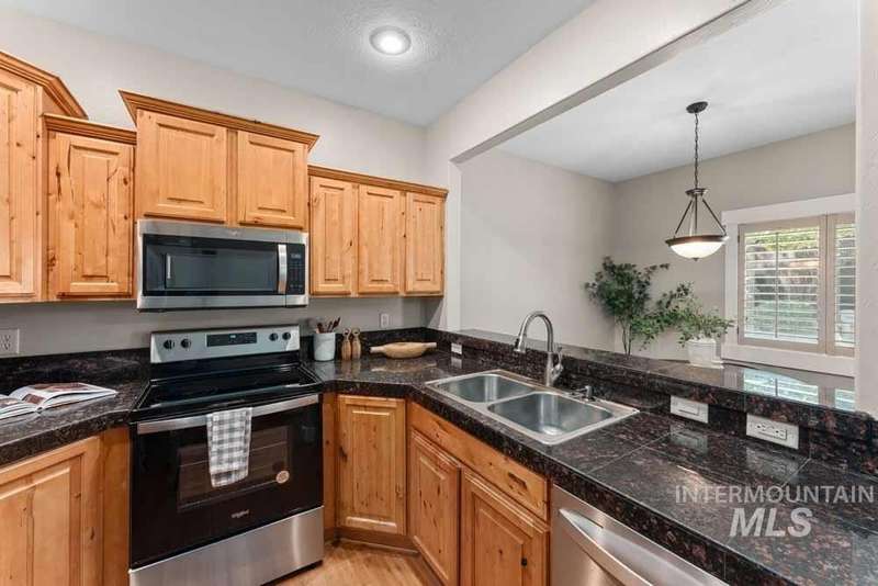 Enjoy a true lock-and-leave lifestyle in this fabulous Boise Bench location, just minutes from local parks, schools, golf courses, dining, and only a short drive to downtown Boise, BSU, and the Boise River. This move-in ready home features bamboo wood flooring, an open and inviting layout, plantation shutters, and a cozy fireplace. The kitchen is beautifully updated with granite countertops, brand-new stainless steel appliances, and a spacious walk-in pantry. The primary suite offers a generous walk-in closet and a private en suite with a dual-sink vanity. Two additional large bedrooms provide plenty of space for guests or a home office. With HOA covering exterior maintenance, sewer, and trash, you’ll enjoy low-maintenance living at its best. A two-car garage with alley access adds convenience. Experience the best of Bench living, modern comfort in a location close to everything!